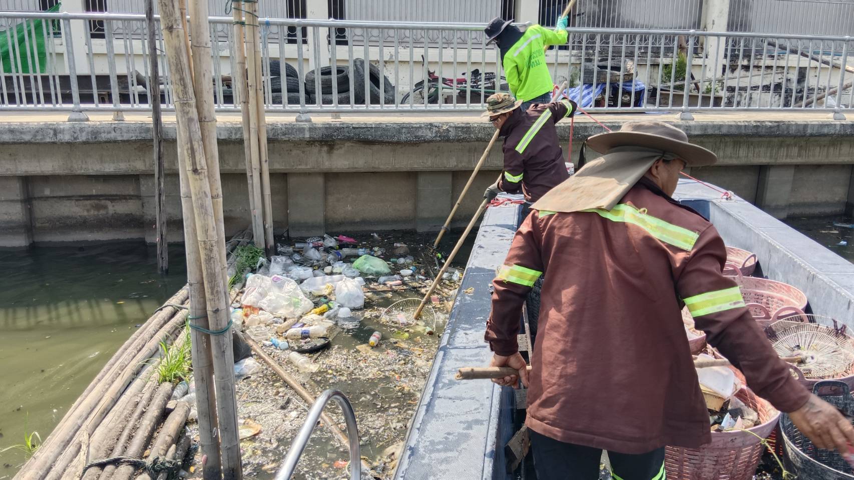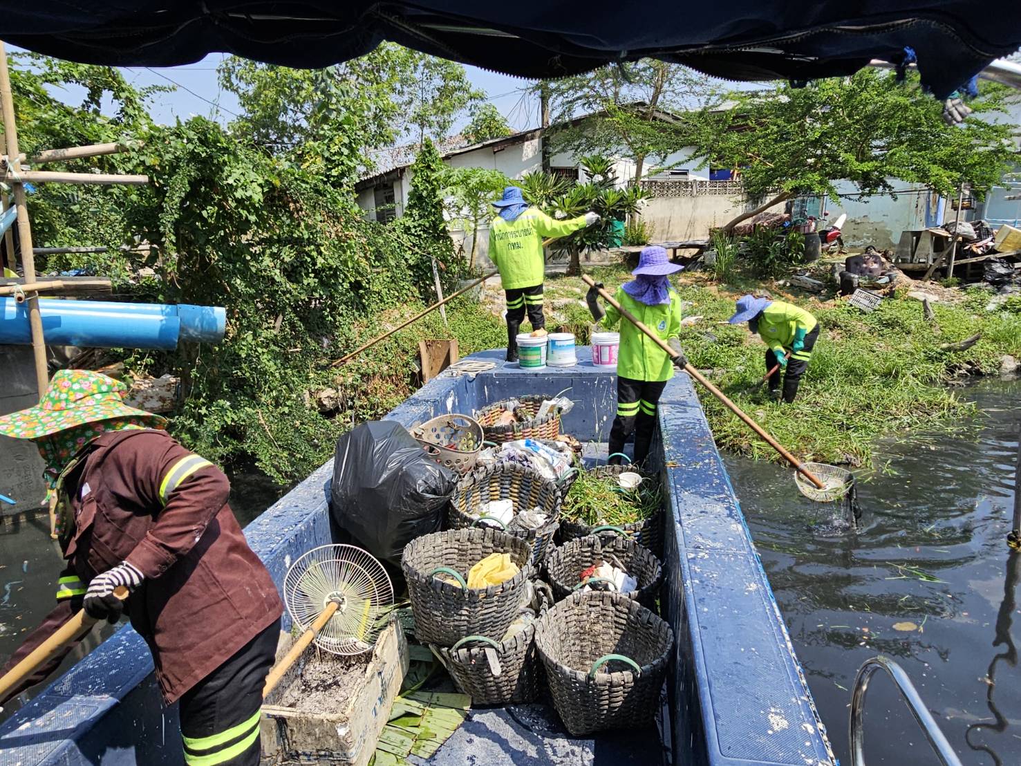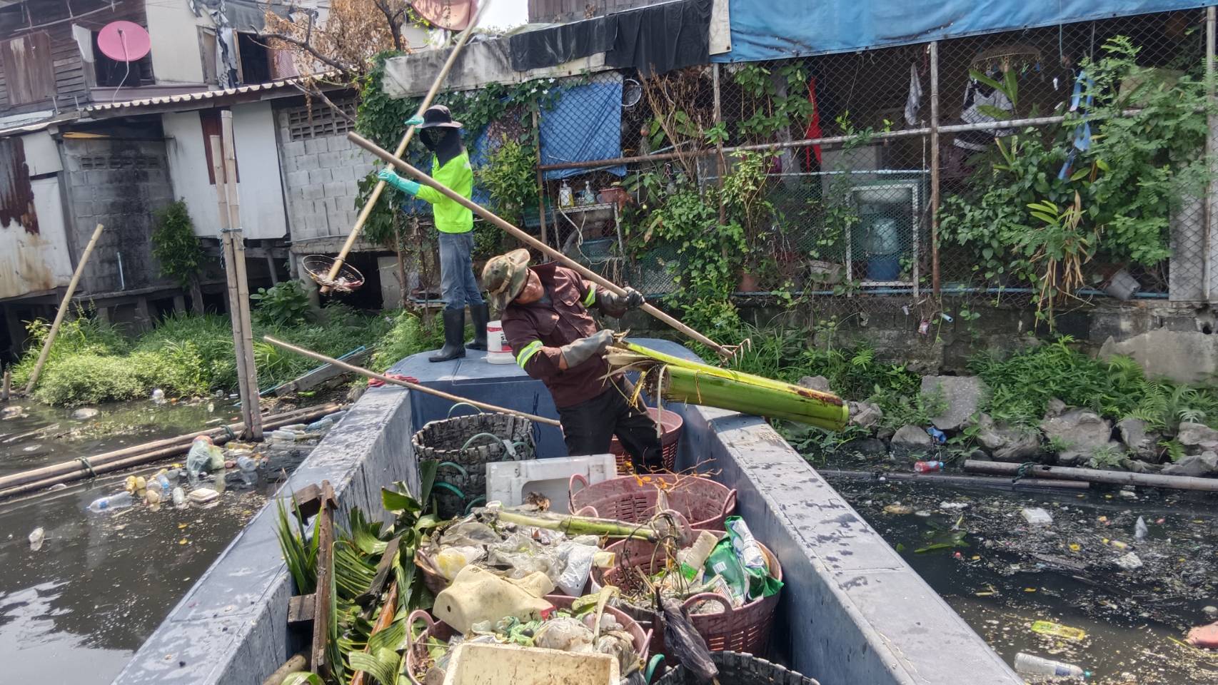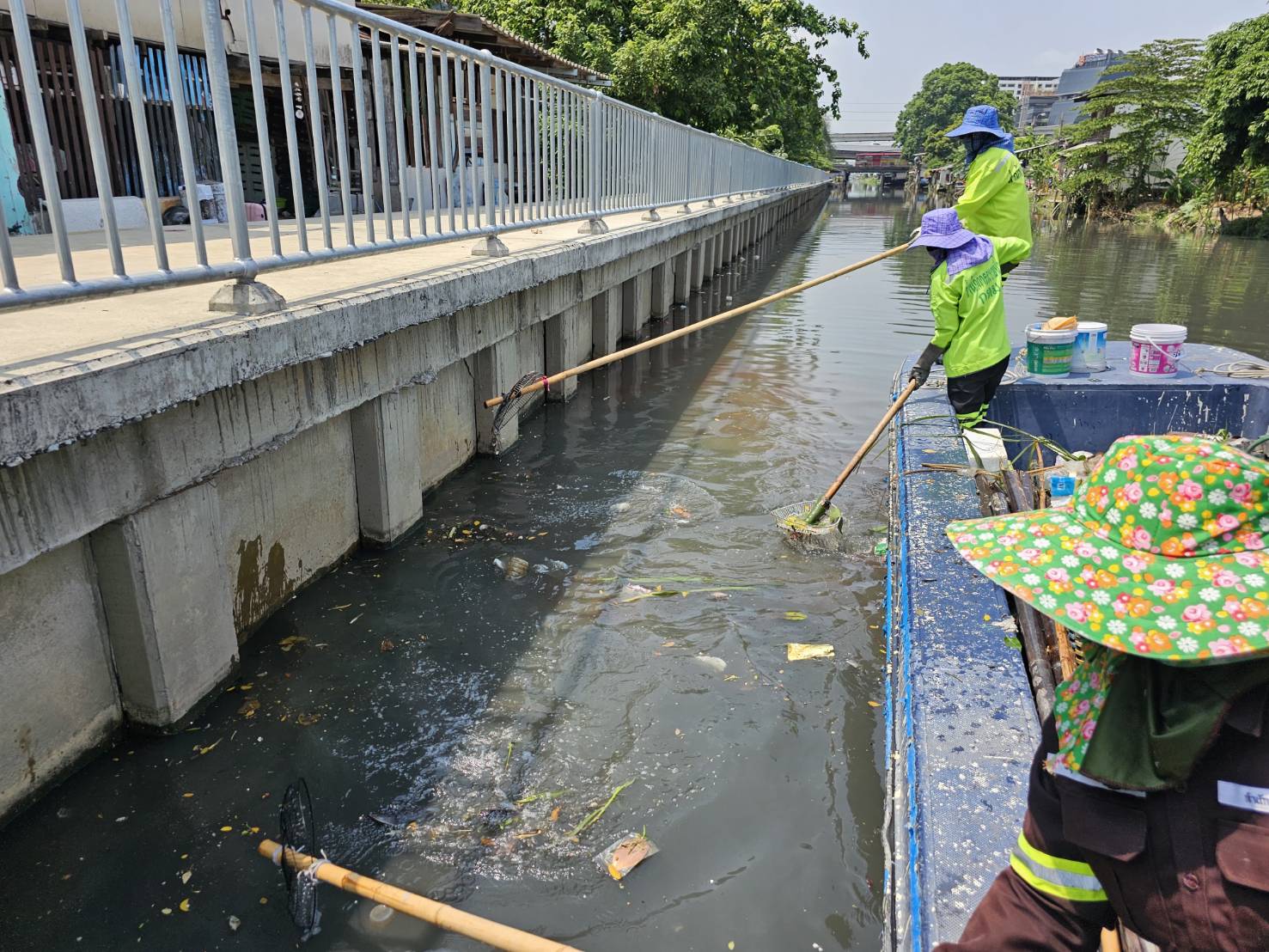 เจ้าหน้าที่ เก็บขยะและวัชพืชคลองเปรมประชากร พื้นที่เขตดอนเมืองและเขตหลักสี่