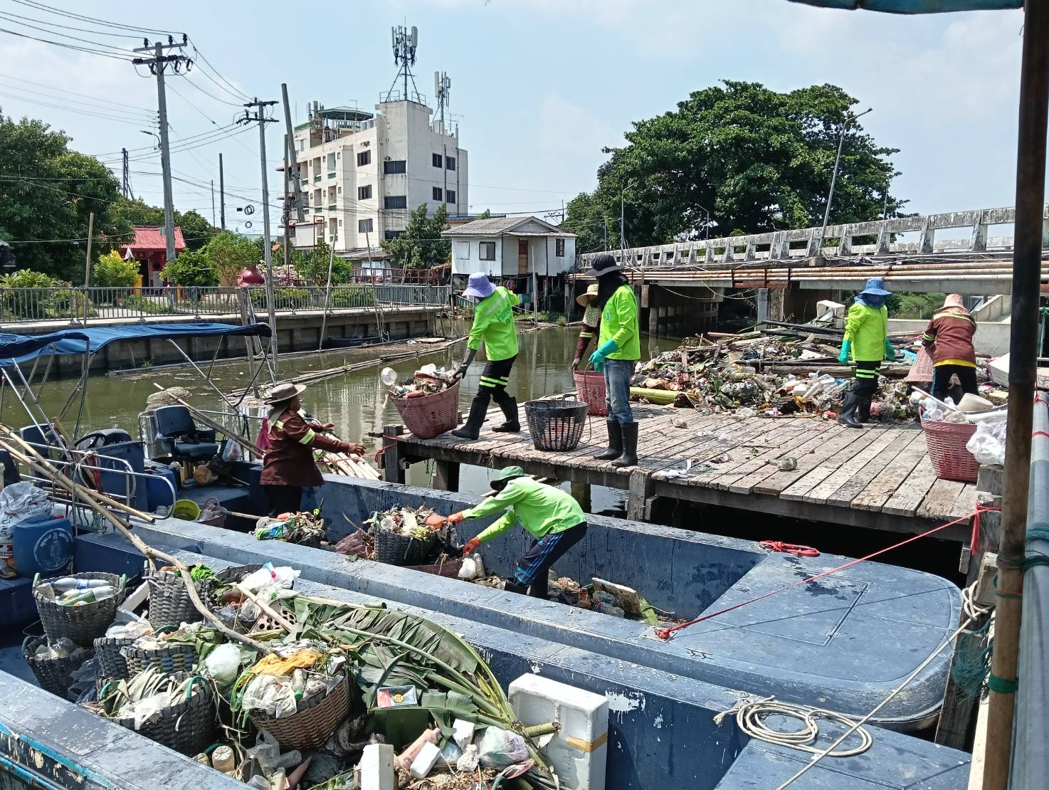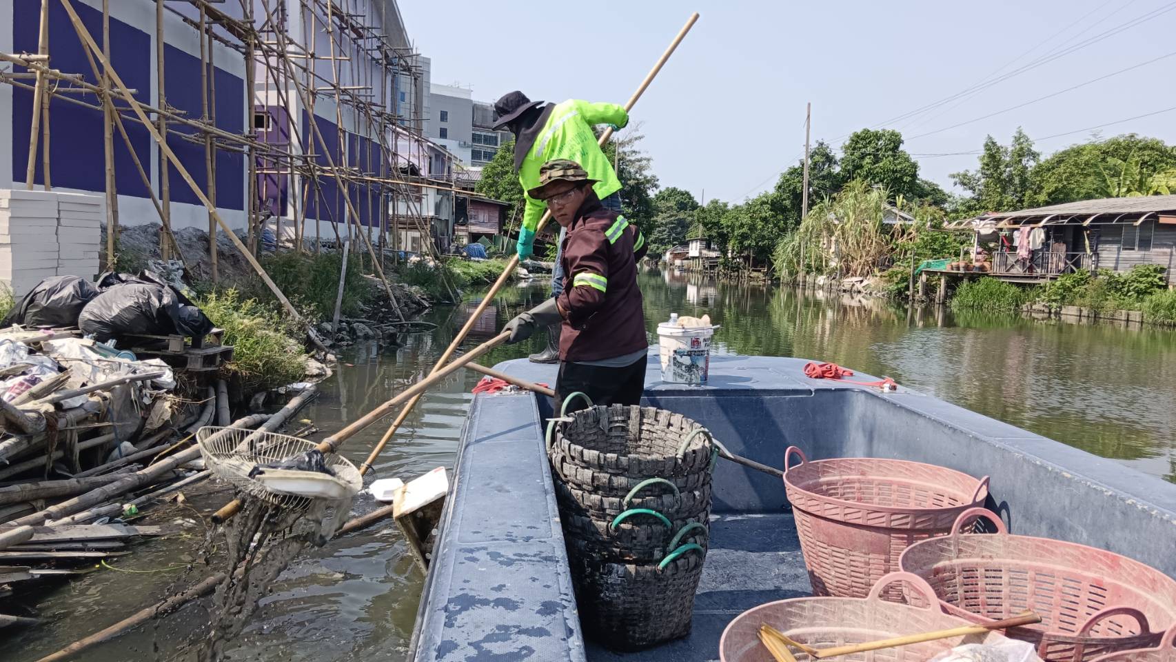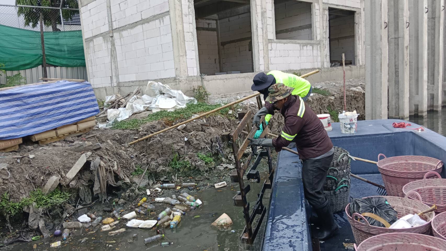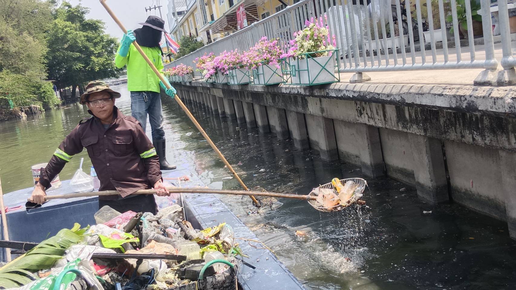 เจ้าหน้าที่ เก็บขยะและวัชพืชคลองเปรมประชากร พื้นที่เขตดอนเมืองและเขตหลักสี่