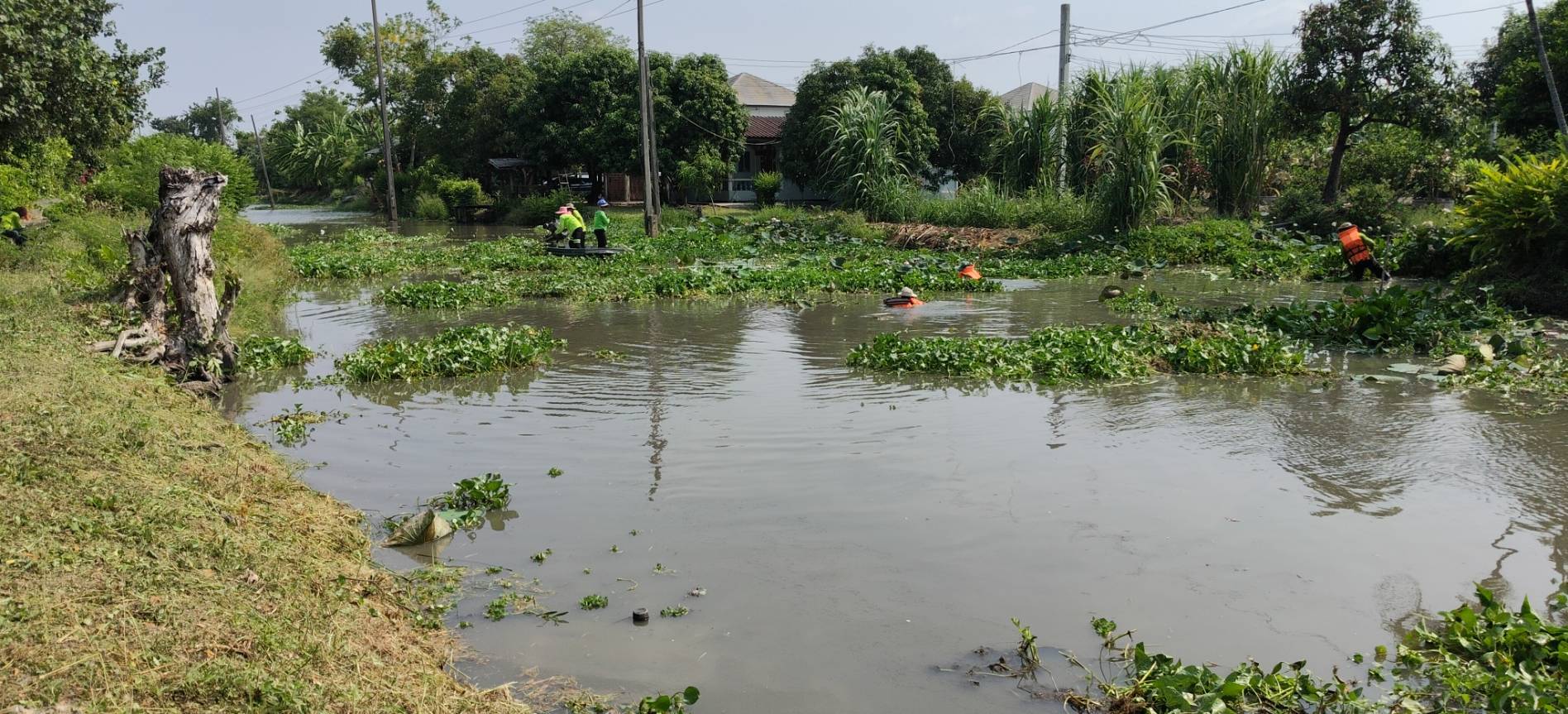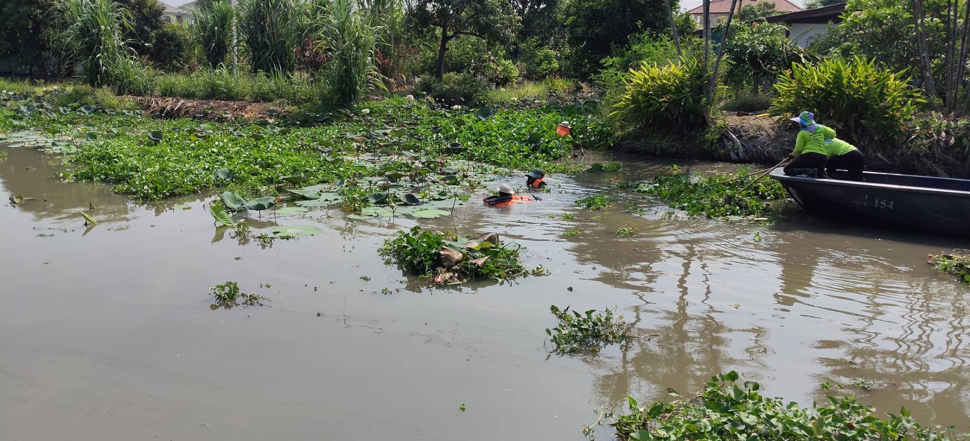 เจ้าหน้าที่ จัดเก็บขยะวัชพืชคลองสี่ประเวศ พื้นที่เขตลาดกระบัง