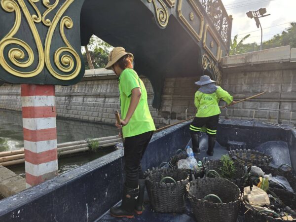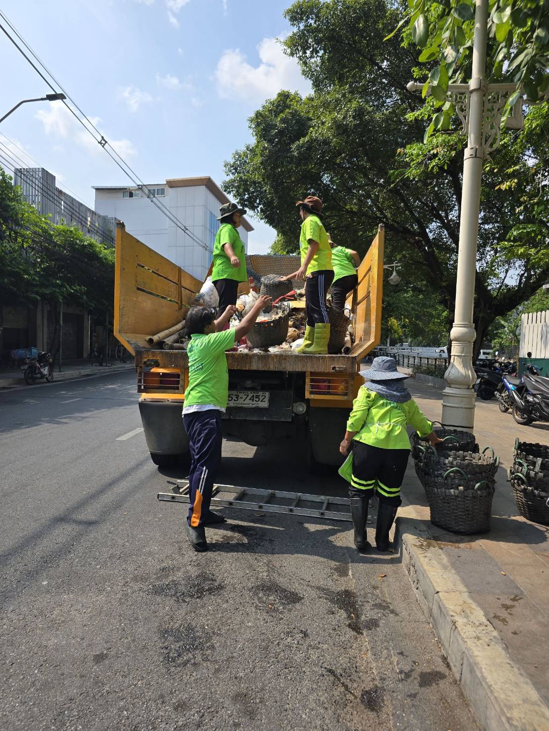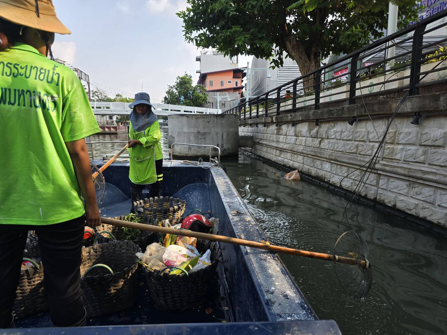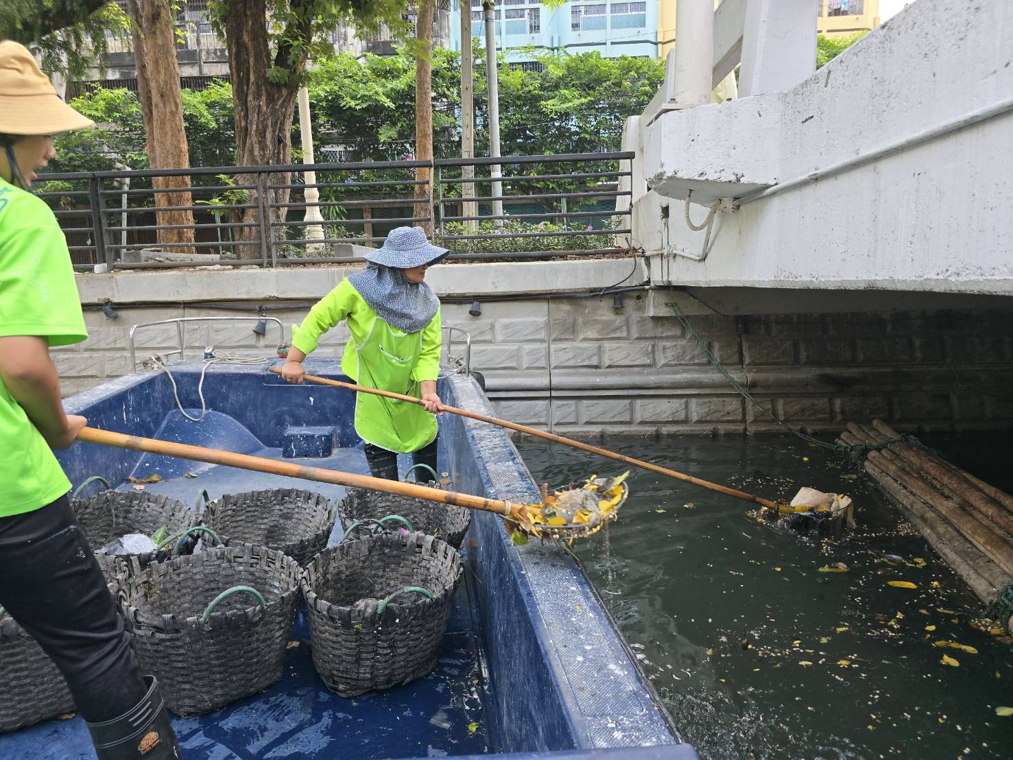 เจ้าหน้าที่ เก็บขยะช่วงสถานีสูบน้ำกรุง-เกษมสะพานเจริญสวัสดิ์-สะพานนพวงศ์-สะพานกษัตริย์ศึกถึงสี่แยกมหานาค เขตปทุมวันและเขตป้อมปราบศัตรูพ่าย