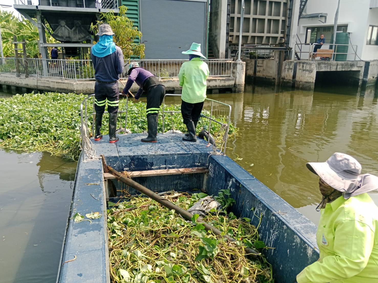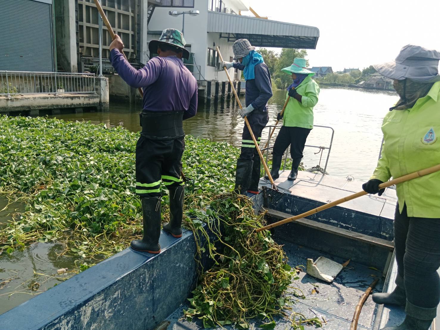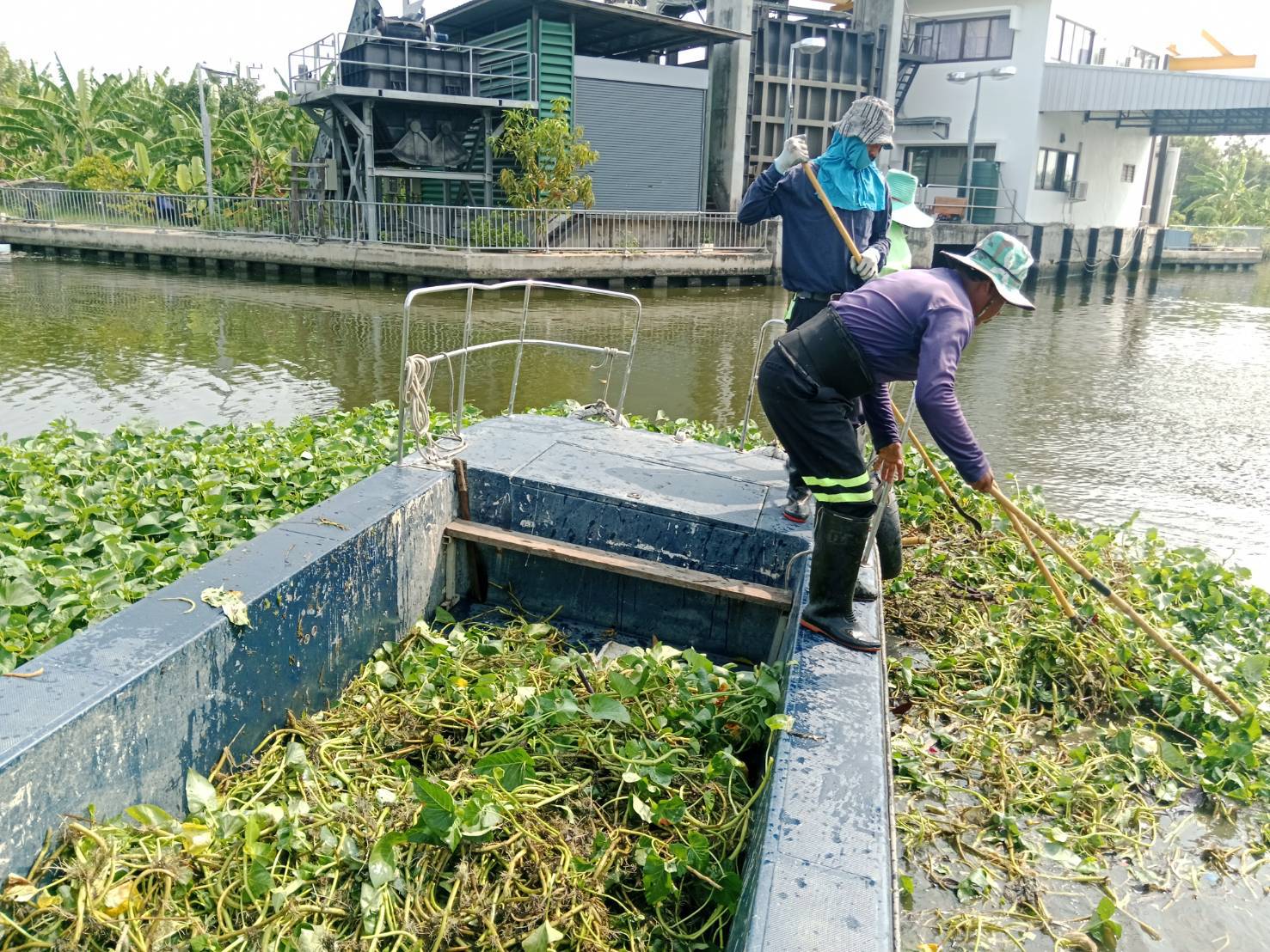 เจ้าหน้าที่ เก็บขยะและวัชพืชคลองสนามชัย ช่วงสถานีสูบน้ำคลองระหาญ พื้นที่เขตบางขุนเทียน
