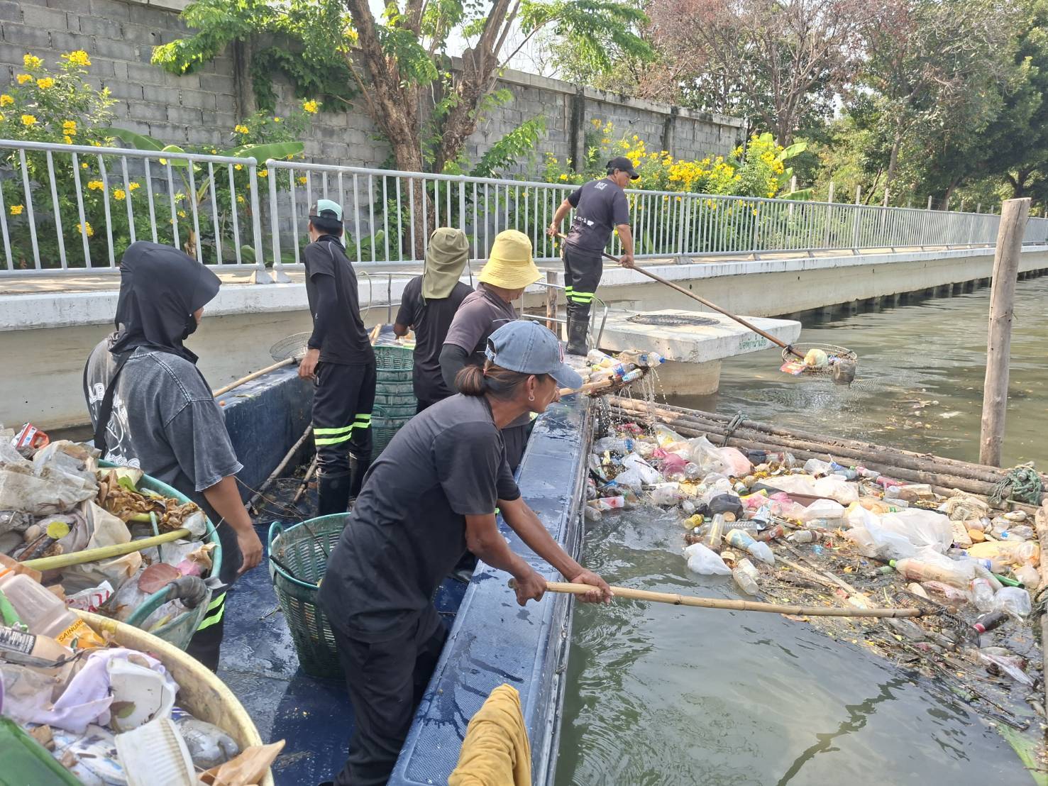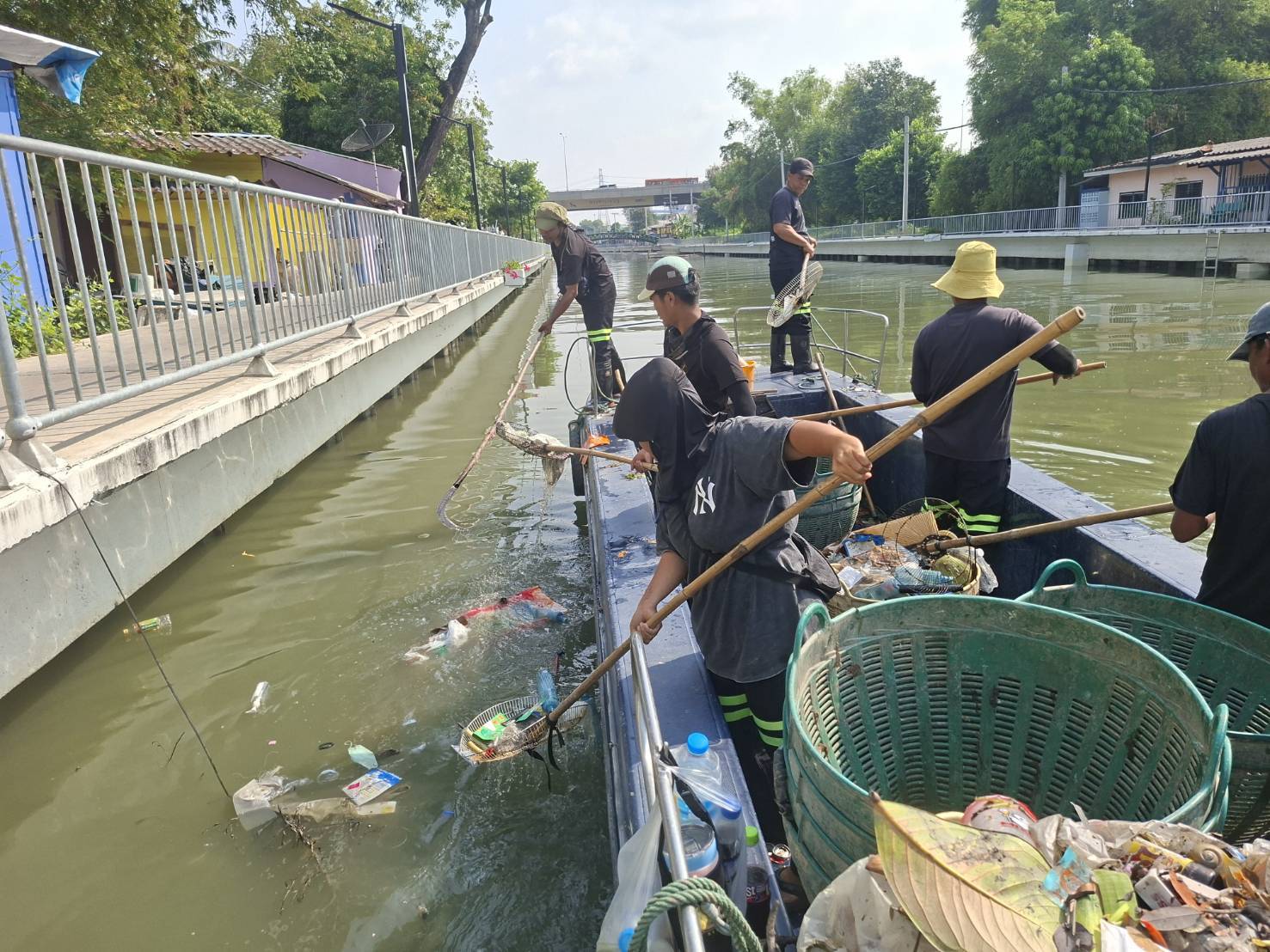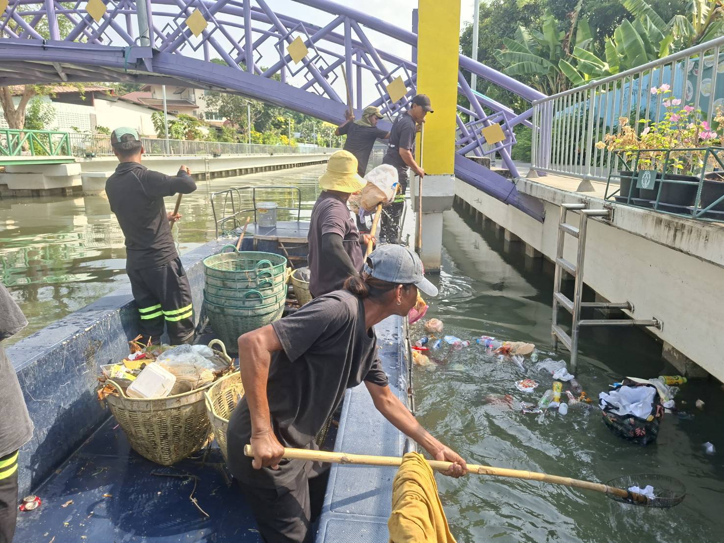 เจ้าหน้าที่ เก็บขยะและวัชพืชคลองเปรมประชากร ช่วงชุมชนตึกแดงบางซื่อ เขตบางซื่อถึงสะพานงามวงศ์วาน เขตจตุจักร
