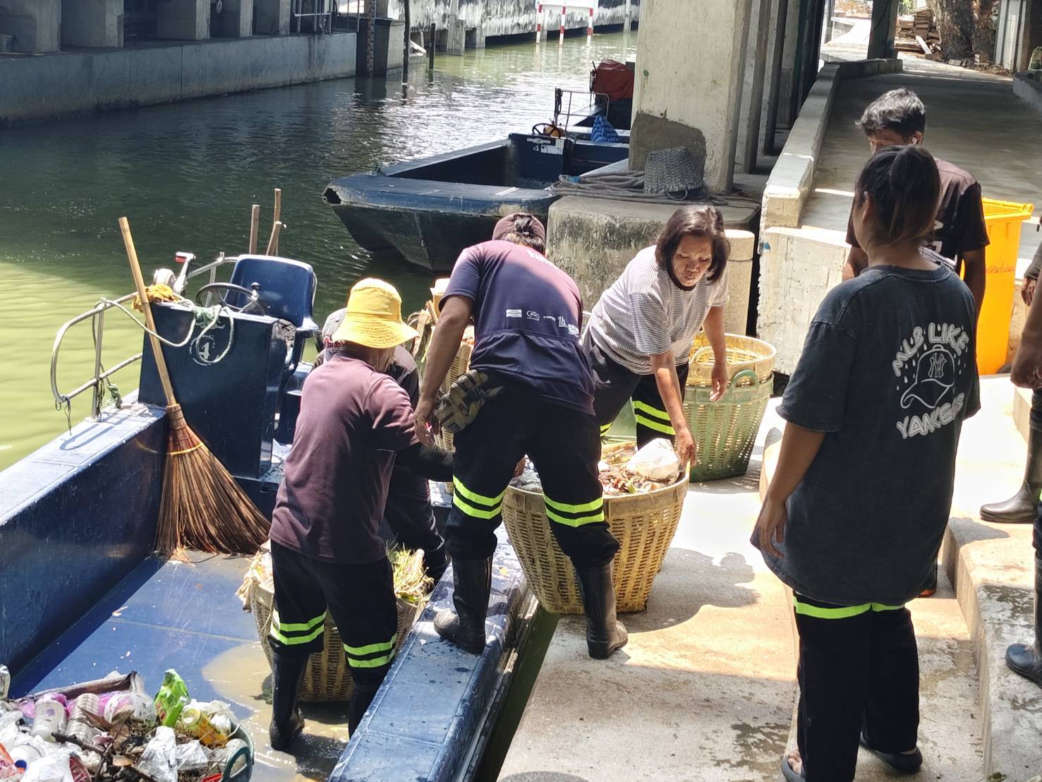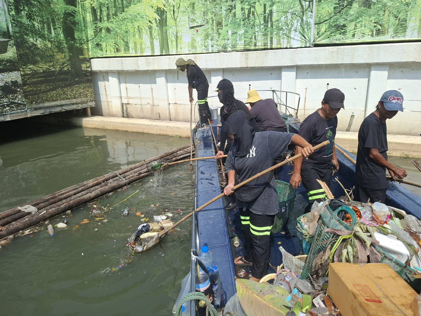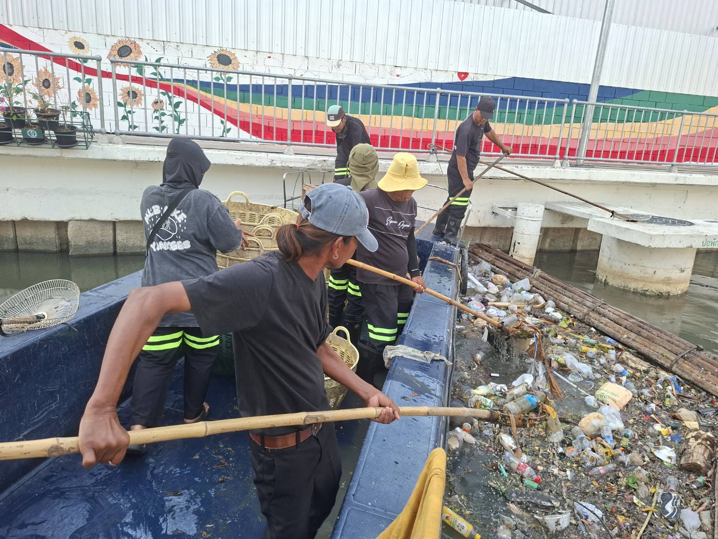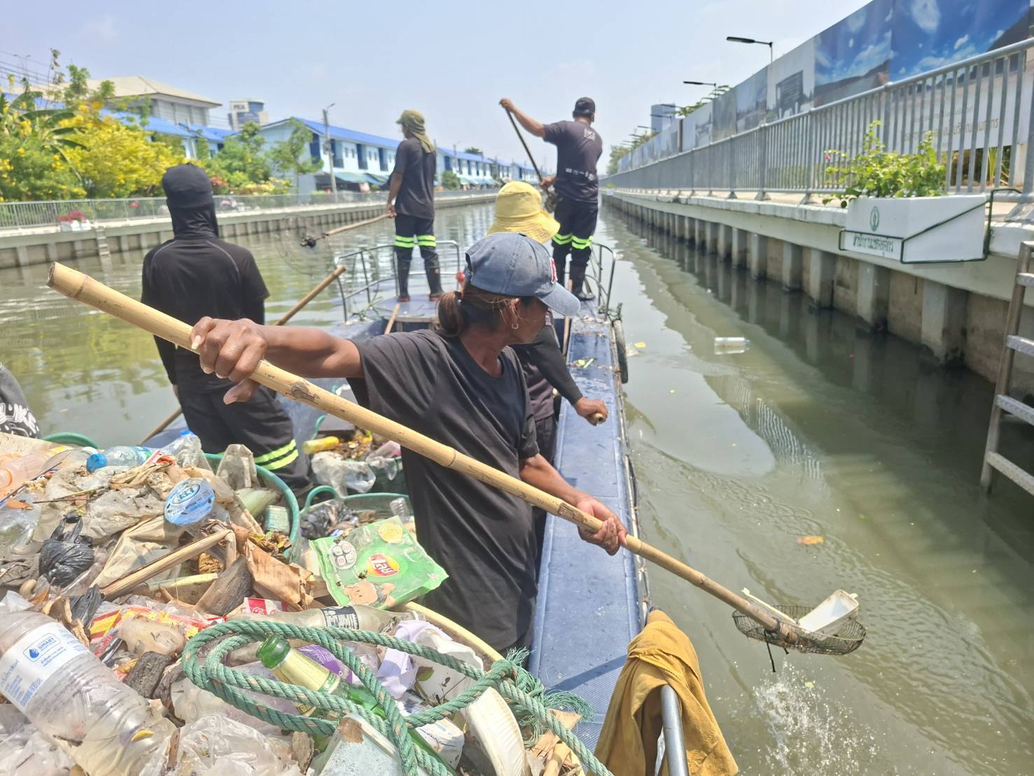 เจ้าหน้าที่ เก็บขยะและวัชพืชคลองเปรมประชากร ช่วงชุมชนตึกแดงบางซื่อ เขตบางซื่อถึงสะพานงามวงศ์วาน เขตจตุจักร