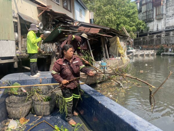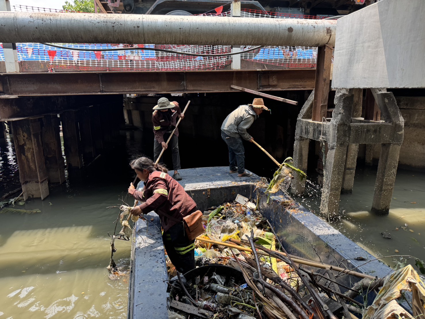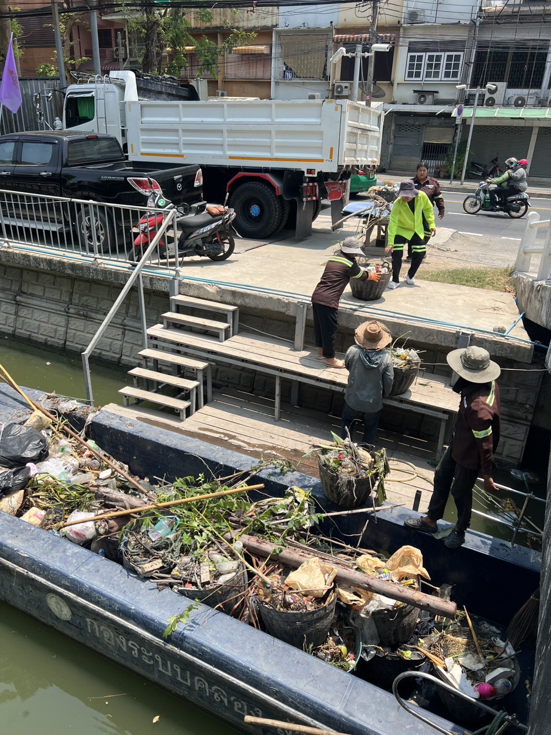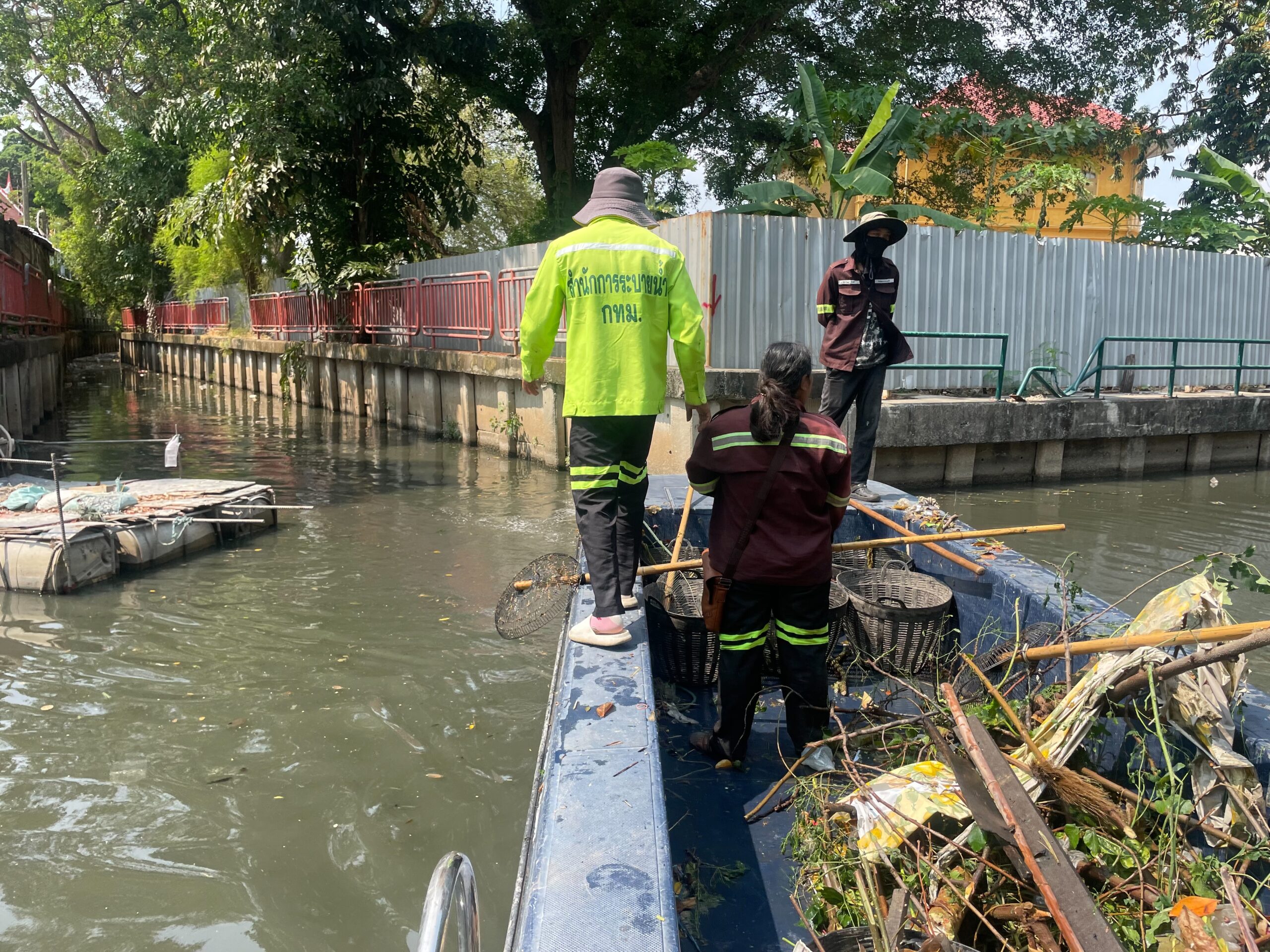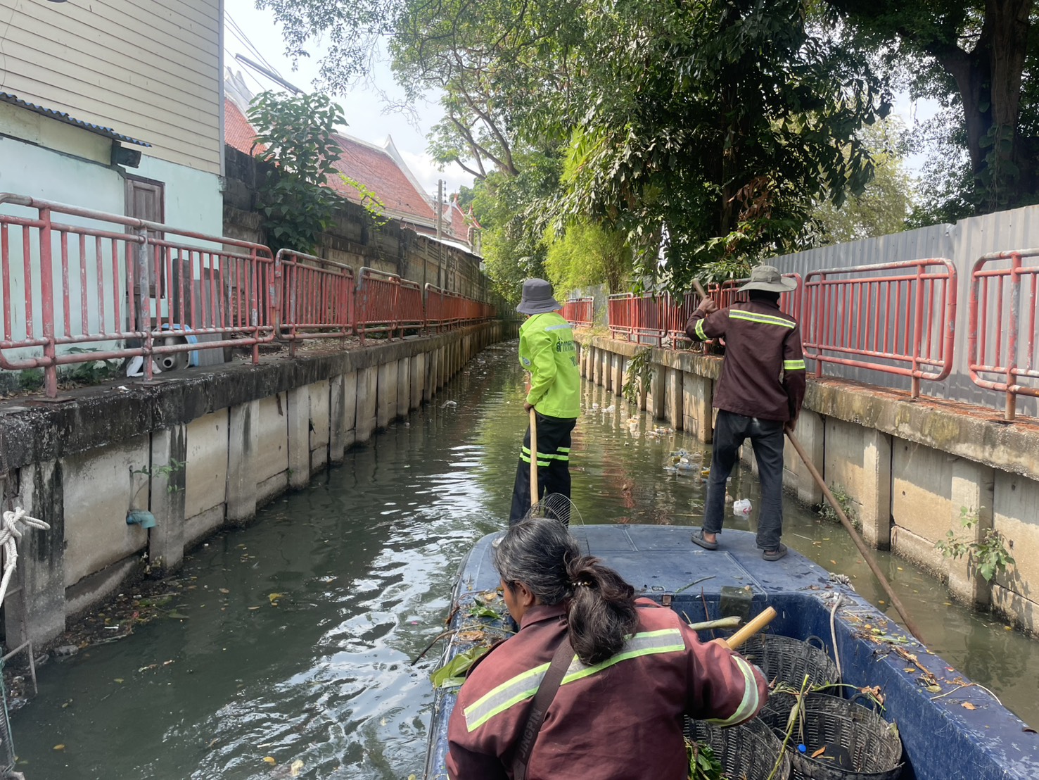เจ้าหน้าที่ ตักขยะกำจัดวัชพืช คลองสามเสน เขตดุสิต