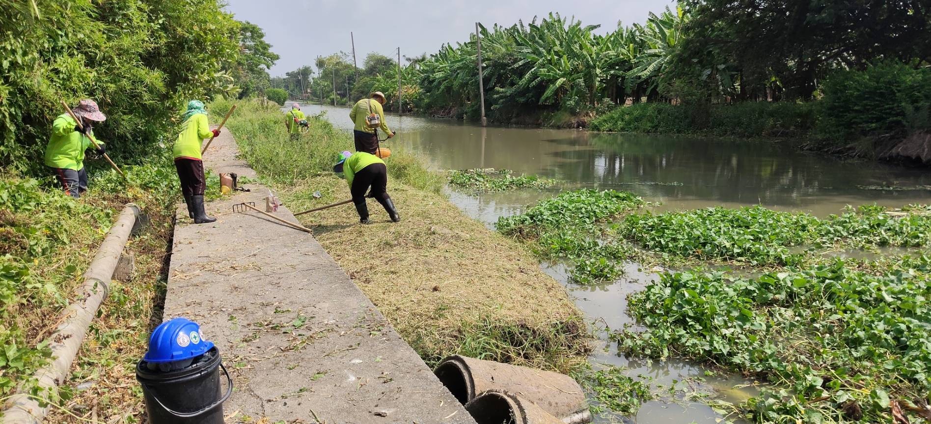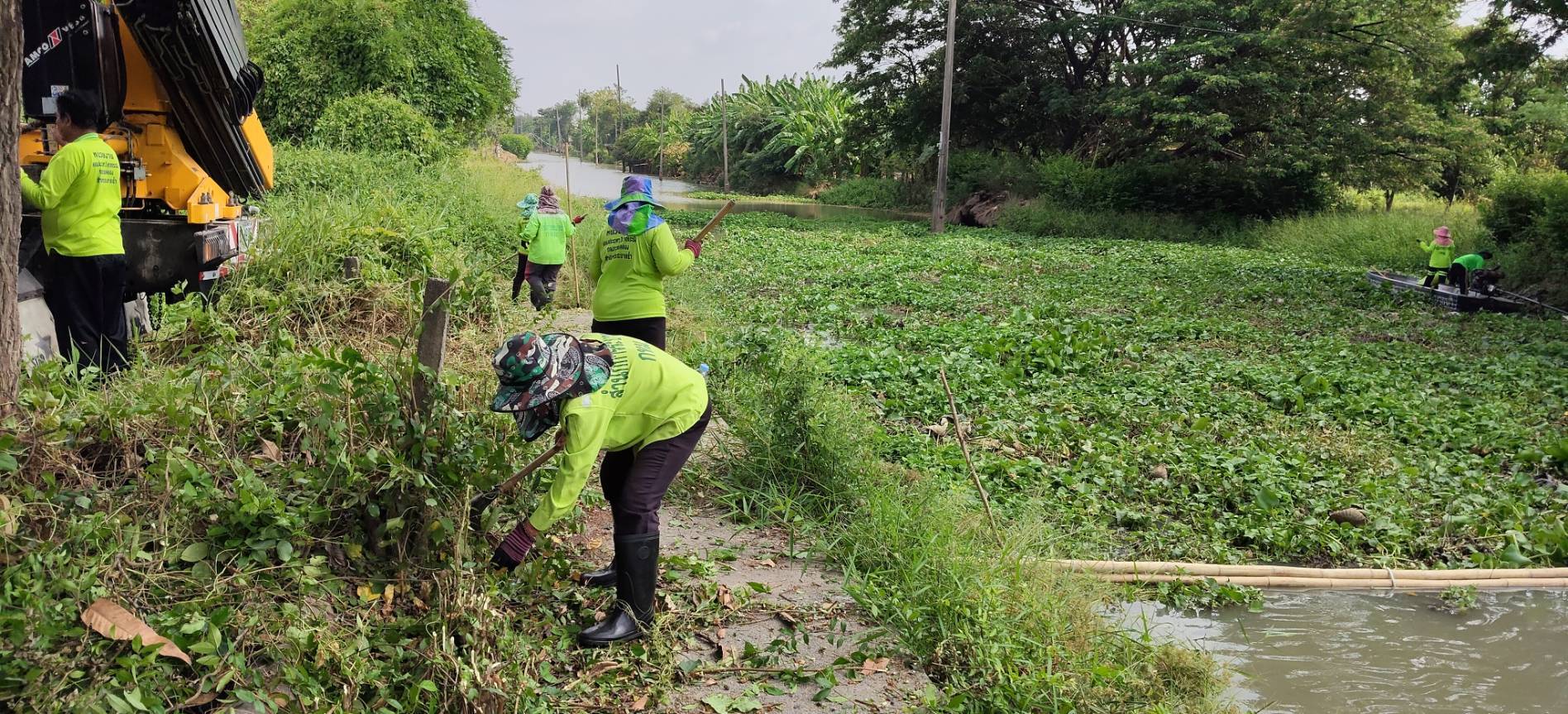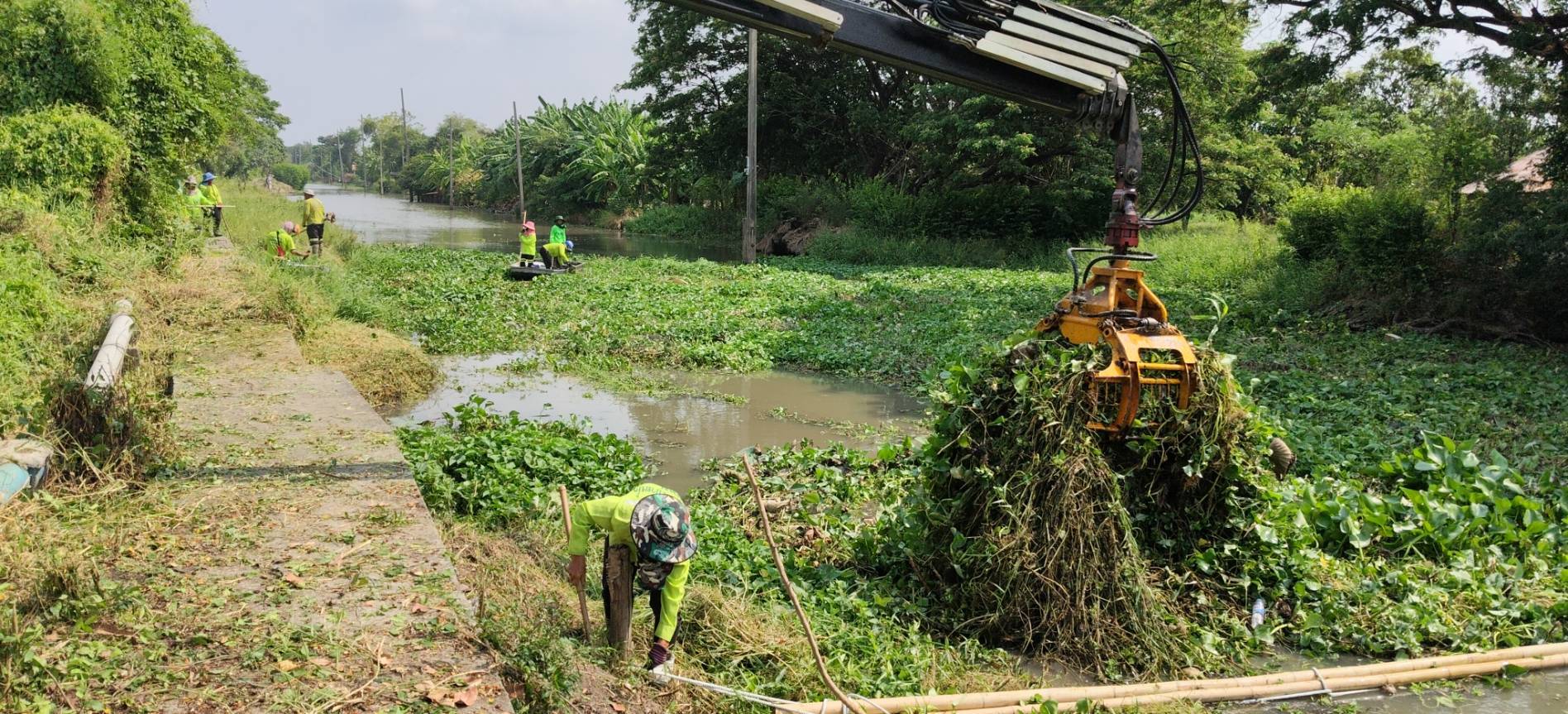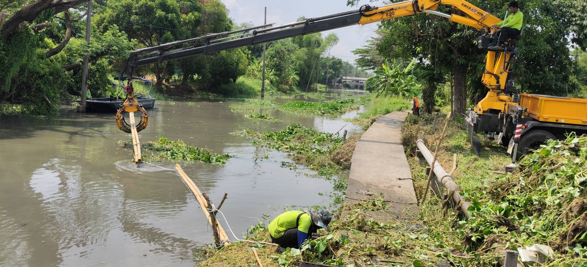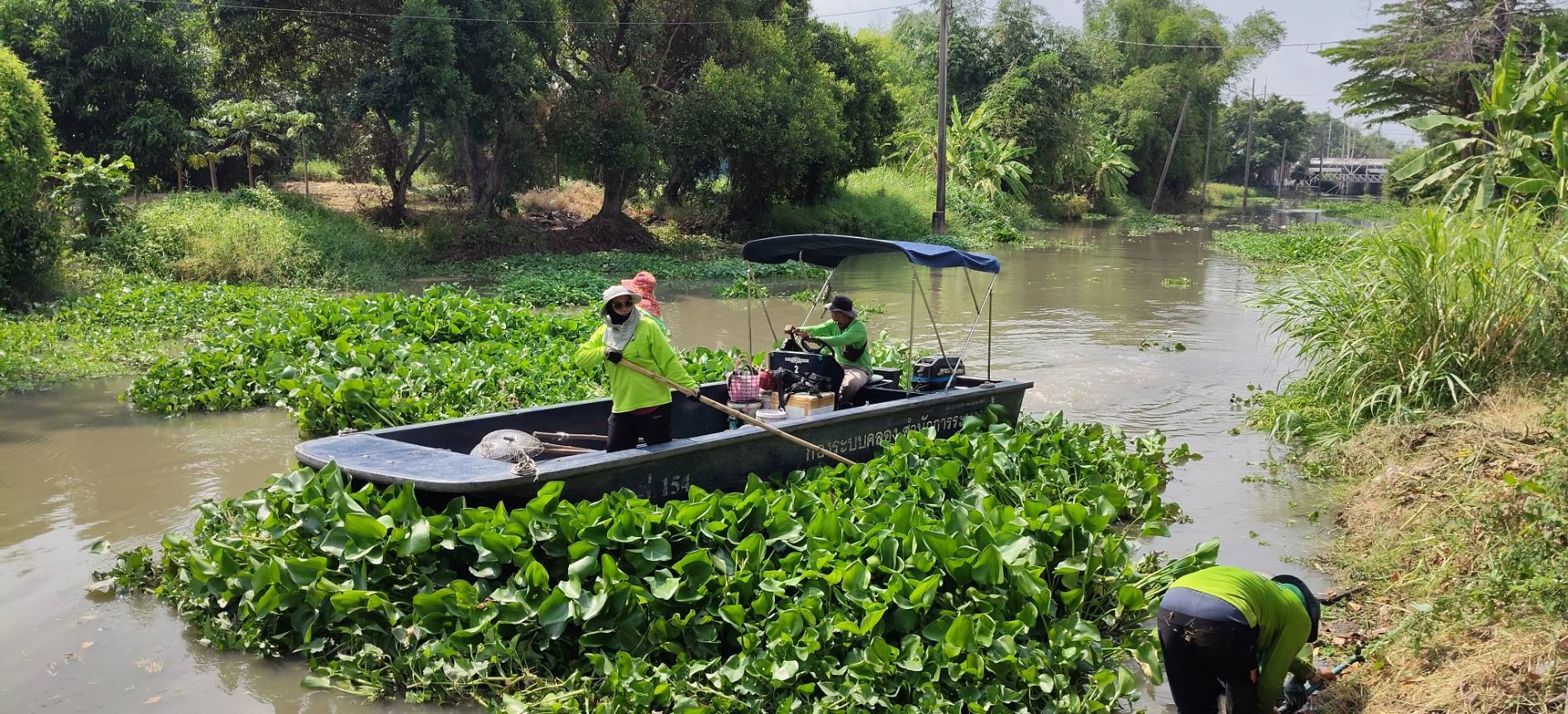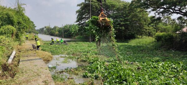 เจ้าหน้าที่ จัดเก็บขยะวัชพืชคลองสี่ประเวศ พื้นที่เขตลาดกระบัง