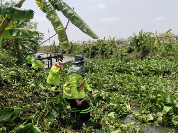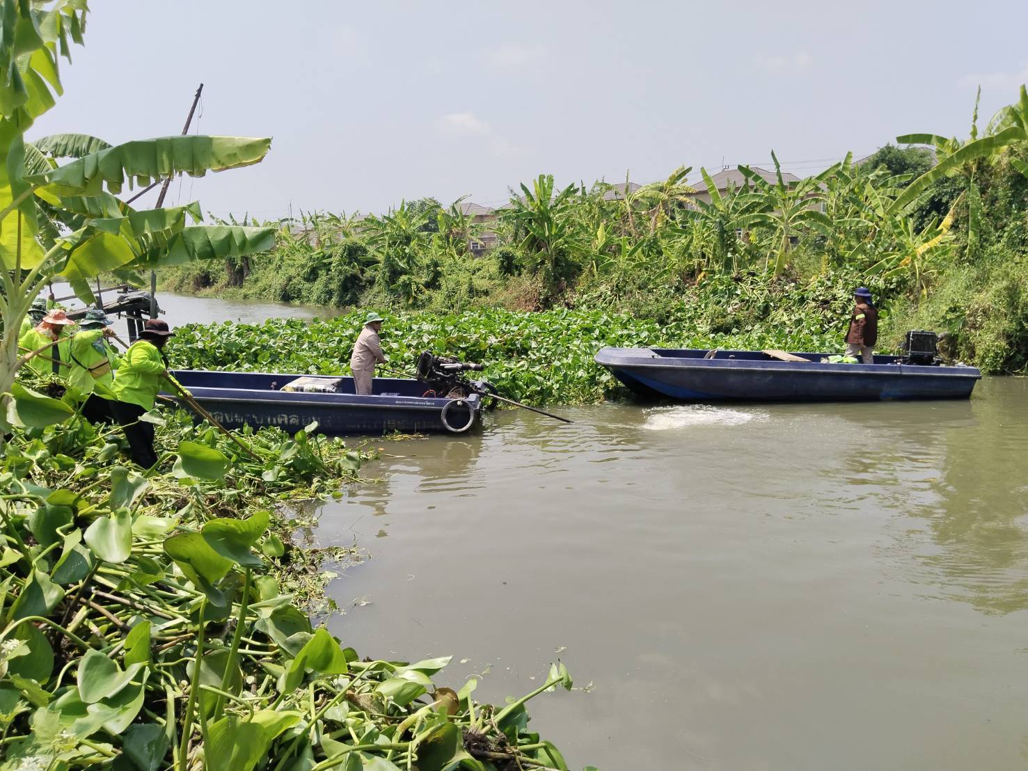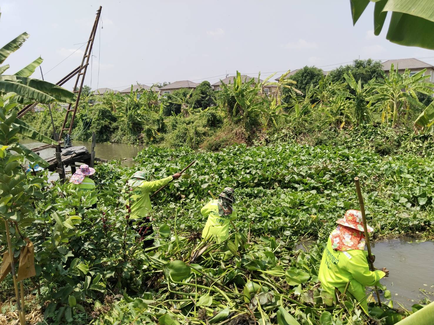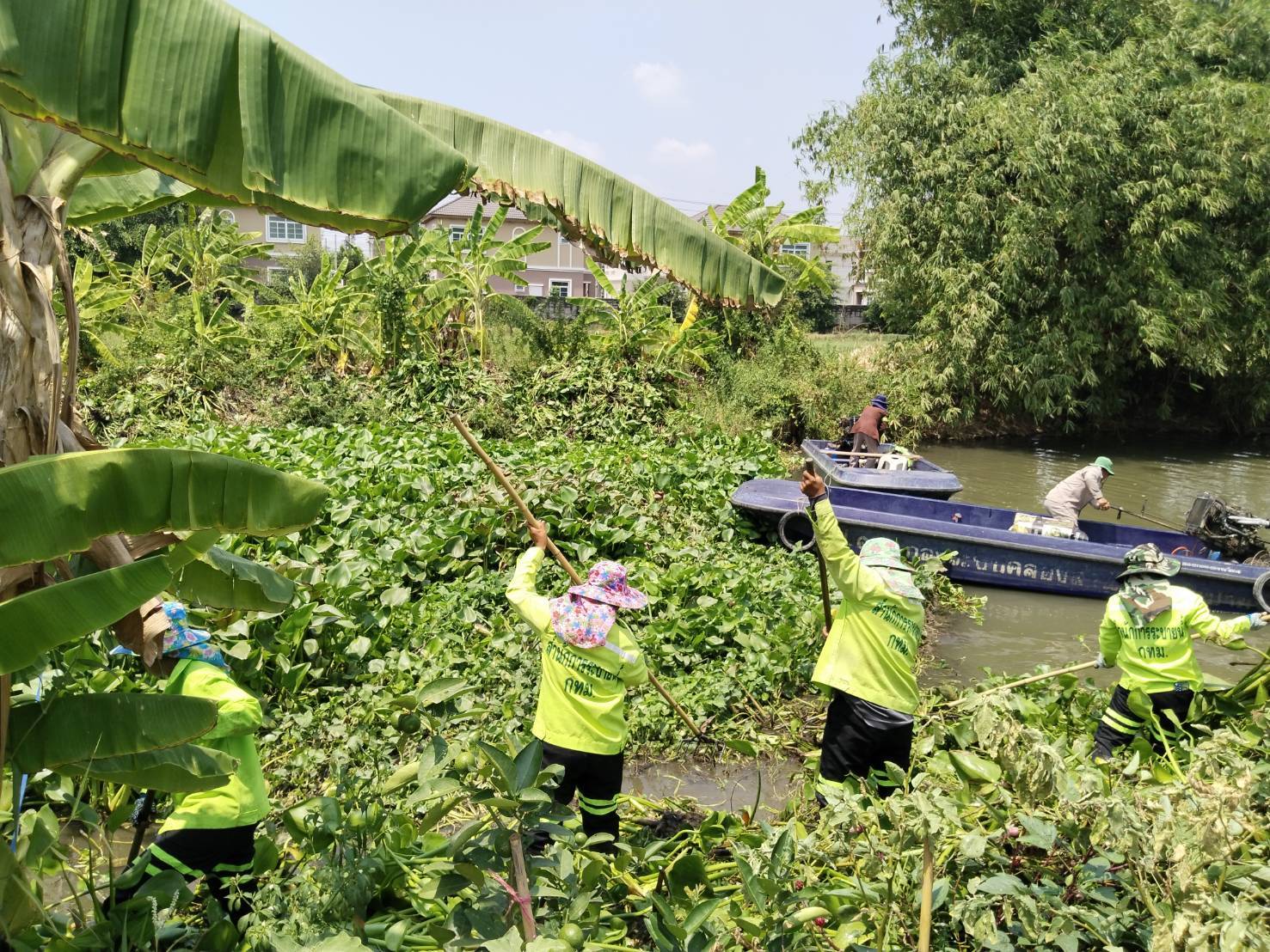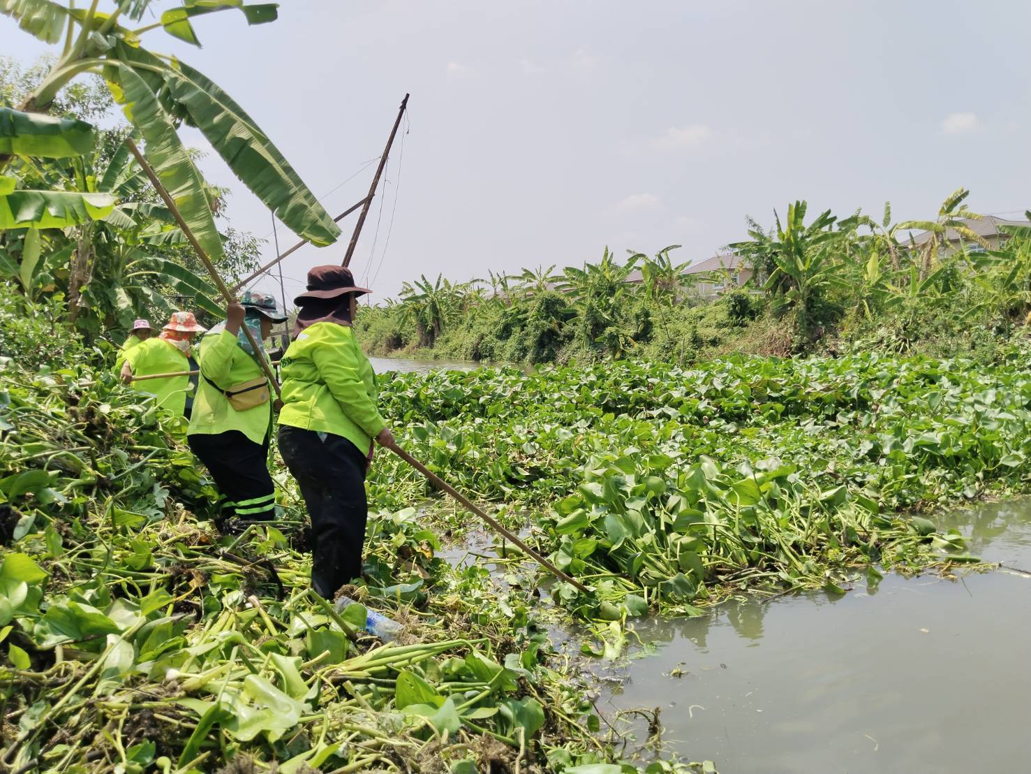 เจ้าหน้าที่ จัดเก็บขยะและวัชพืช คลองพระราชดำริ2 บริเวณซอยประชาร่วมใจ39 พื้นที่เขตคลองสามวา