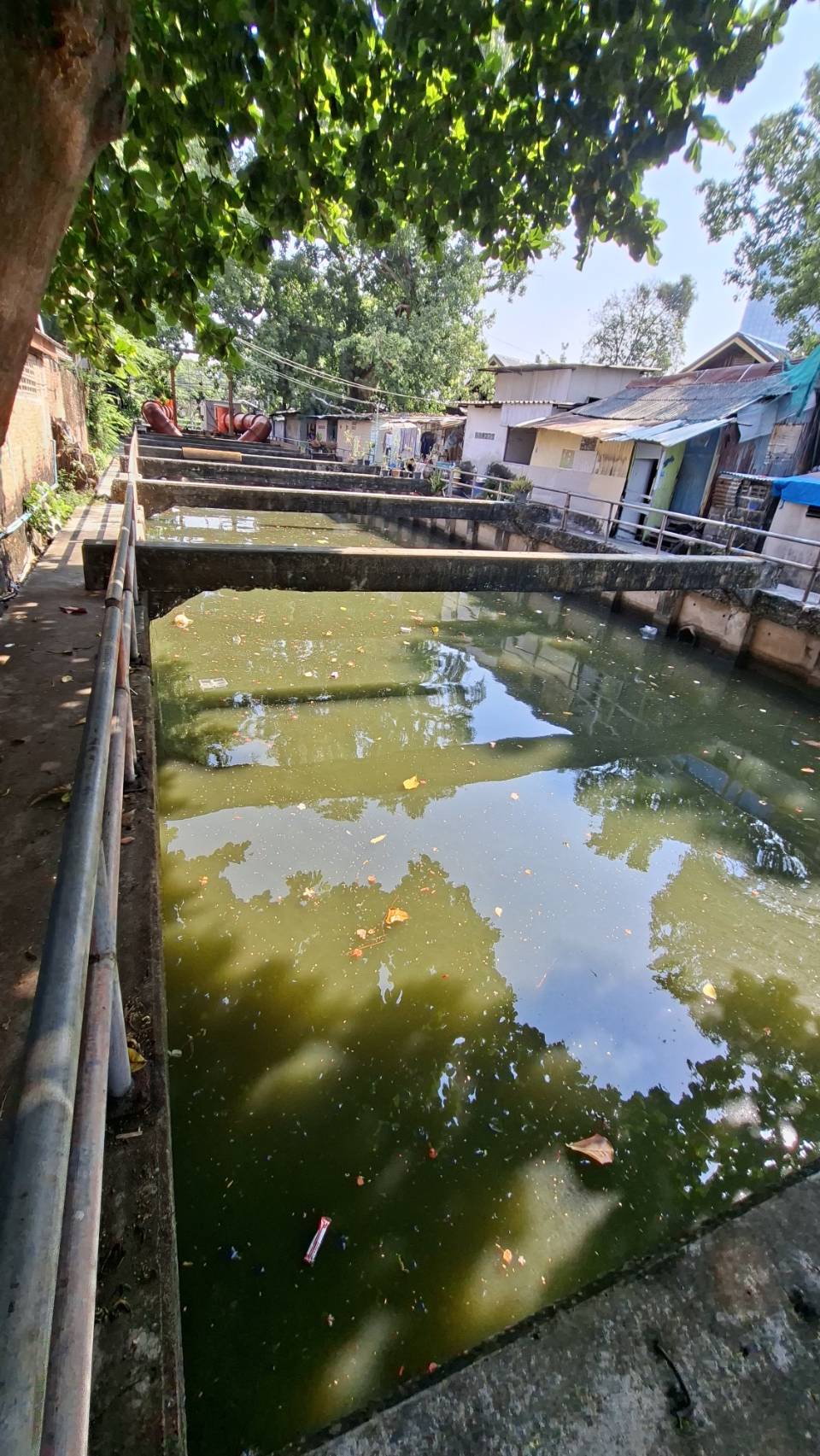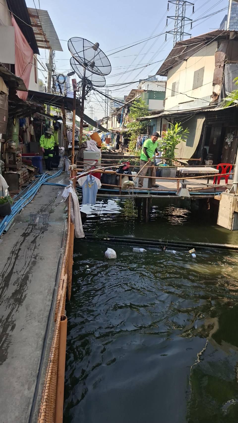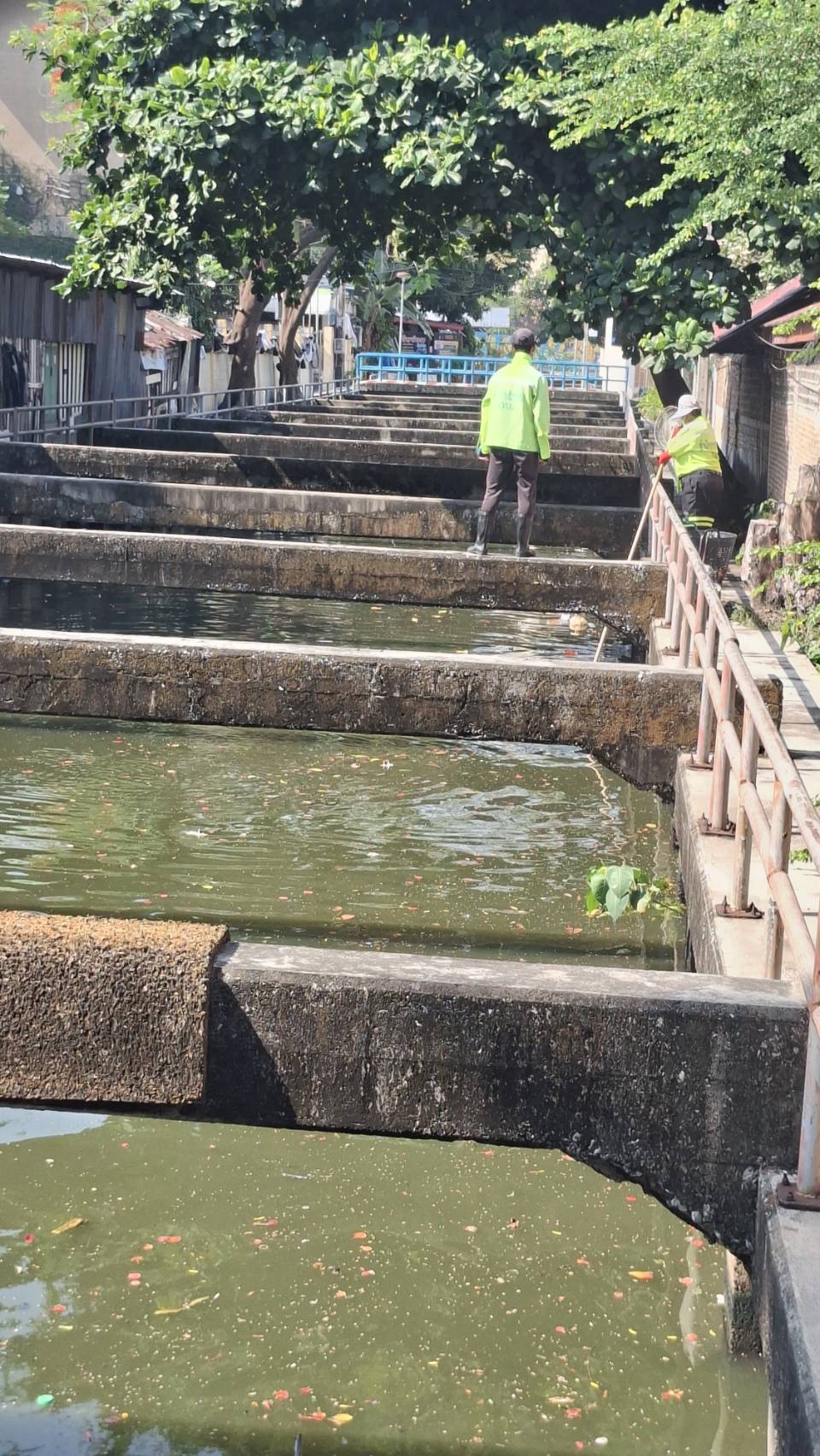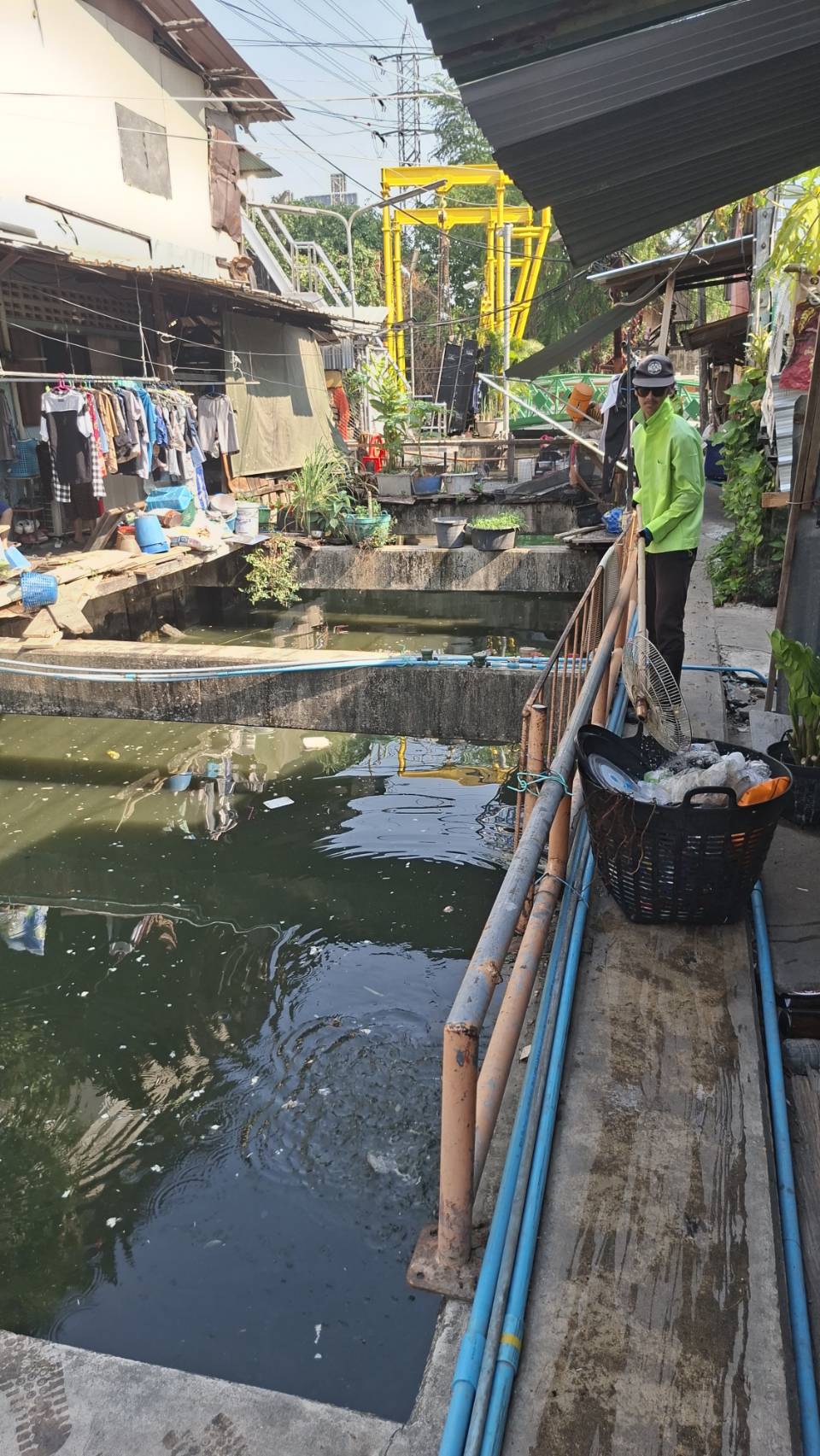 เจ้าหน้าที่ ตักขยะวัชพืชแพดักขยะหน้า ปตร.แสนเลิส แพดักขยะช่วงข้างวัดมักกะสัน พื้นที่เขตวัฒนา