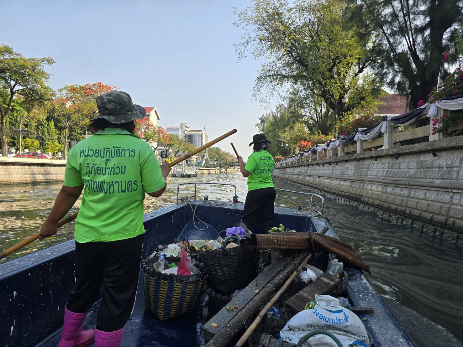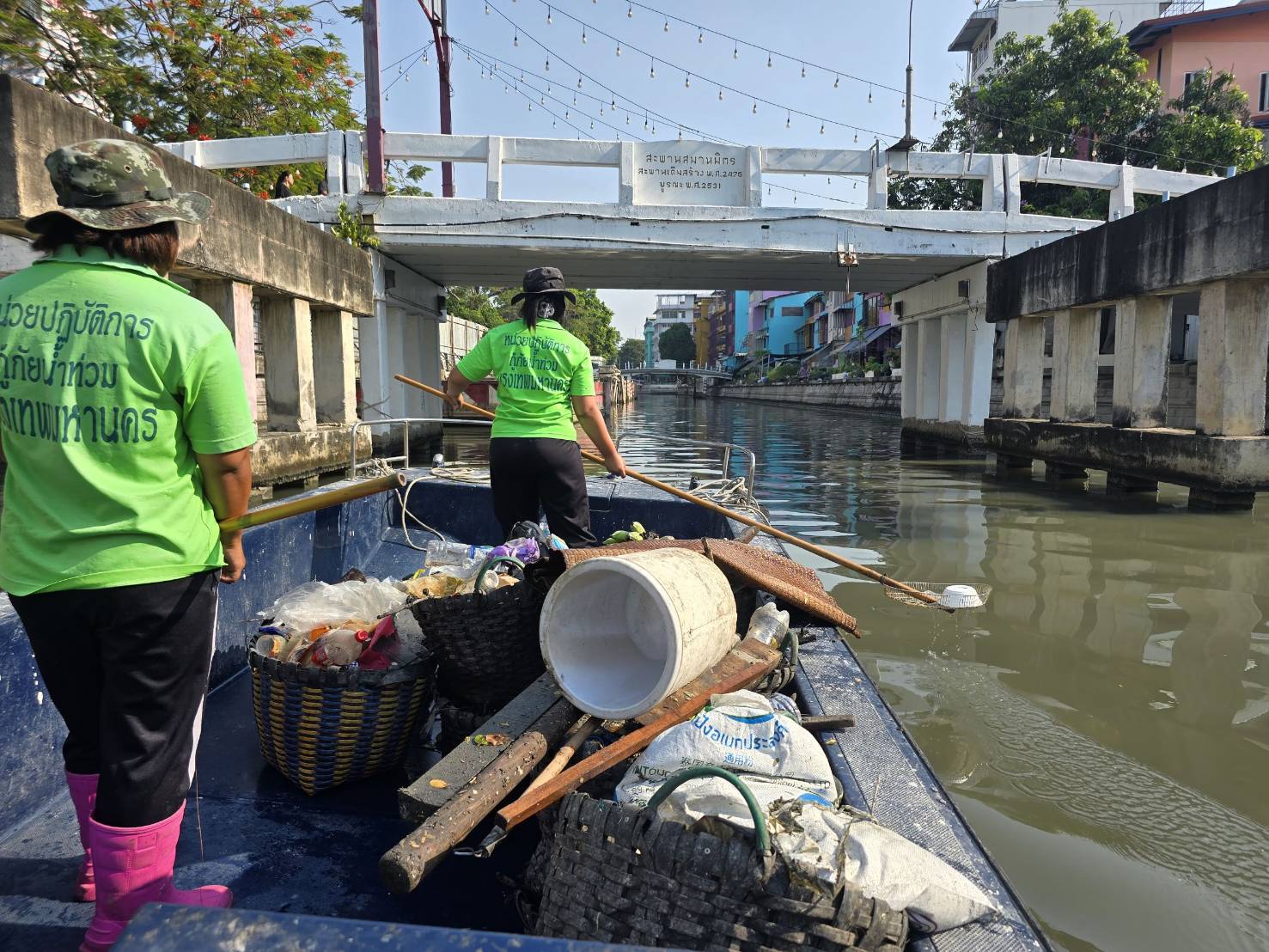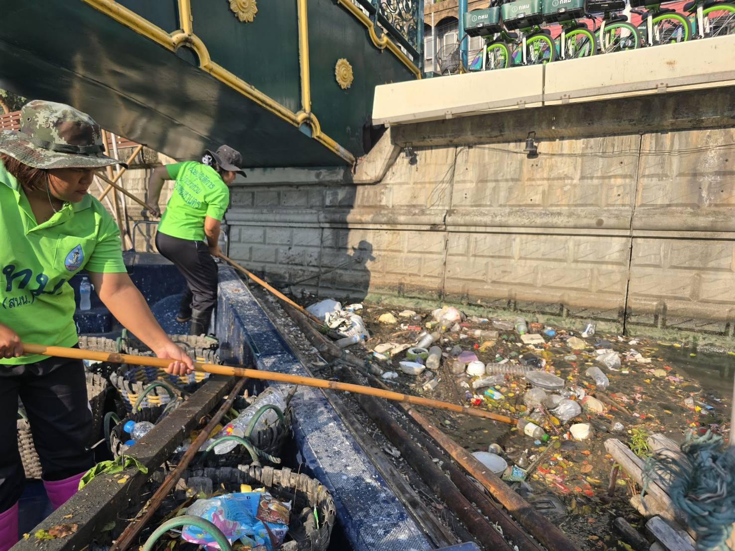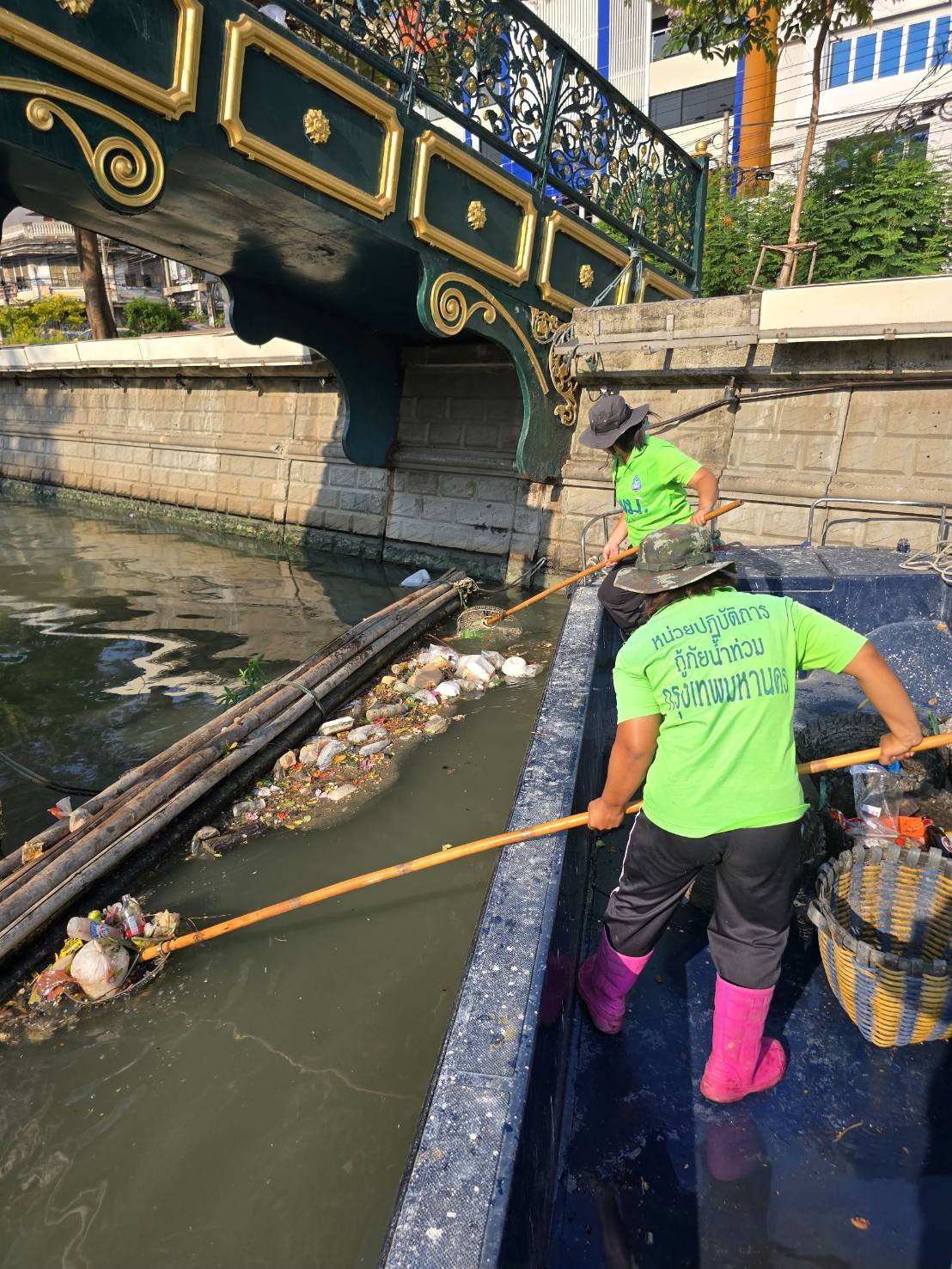 เจ้าหน้าที่ เก็บขยะคลองผดุงกรุงเกษม(หัวลำโพง) ช่วงสถานีสูบน้ำกรุงเกษมสะพานเจริญสวัสดิ์-สะพานนพวงศ์-สะพานกษัตริย์ศึก ถึงสี่แยกมหานาค เขตปทุมวันและเขตป้อมปราบศัตรูพ่าย