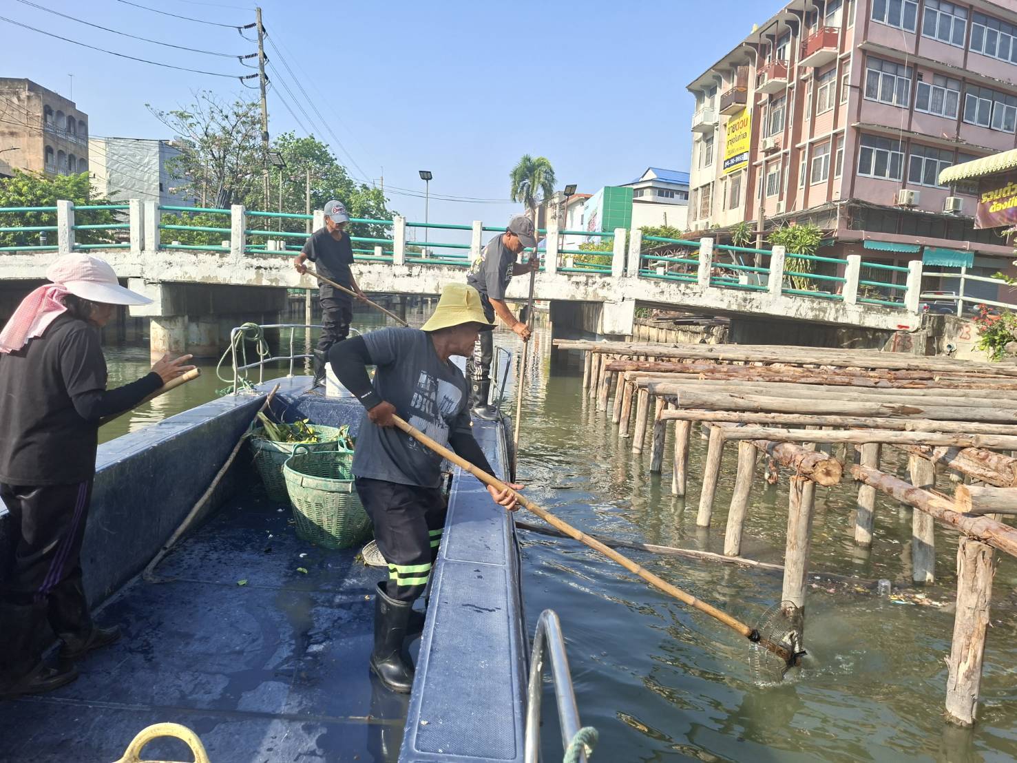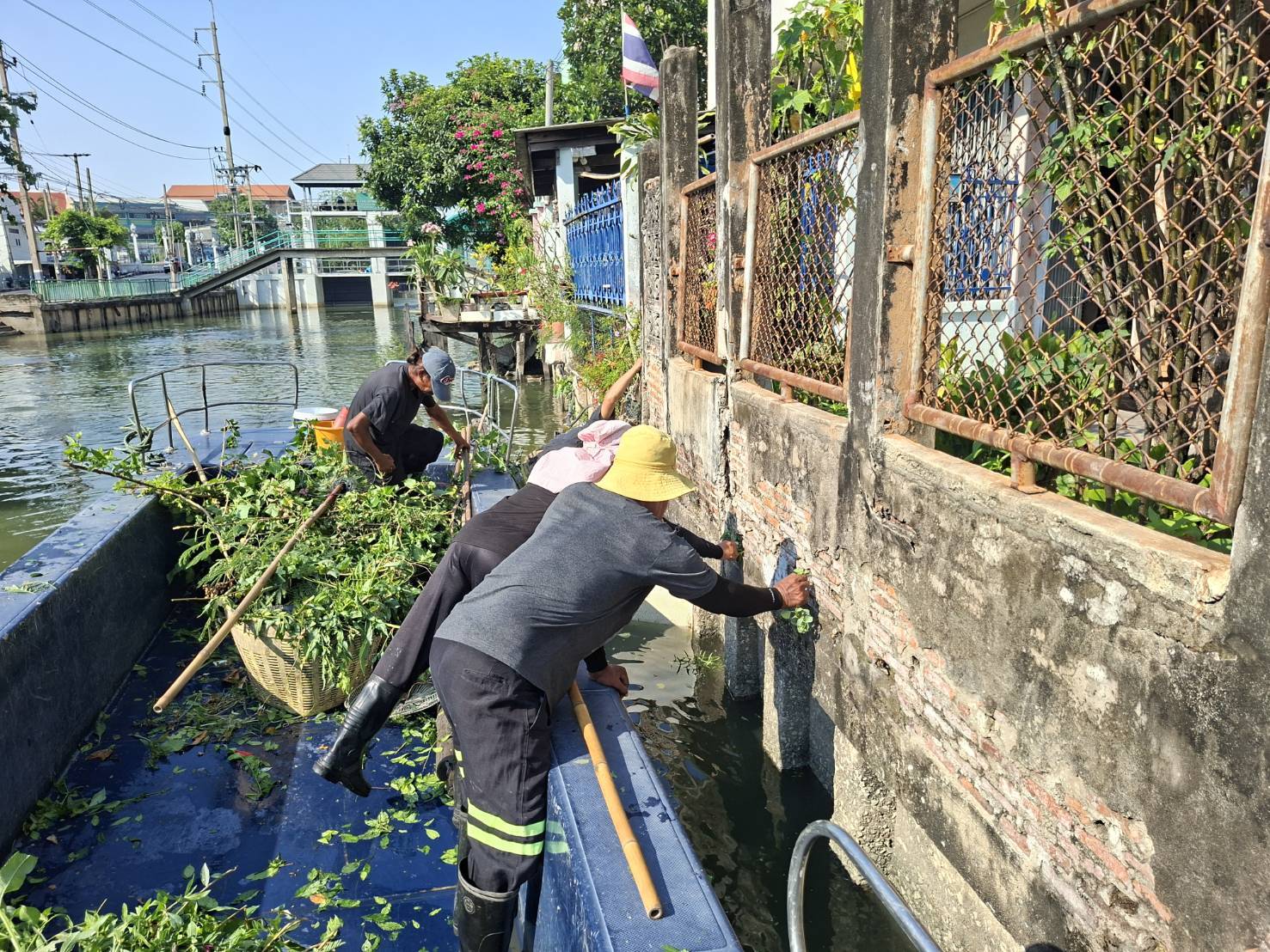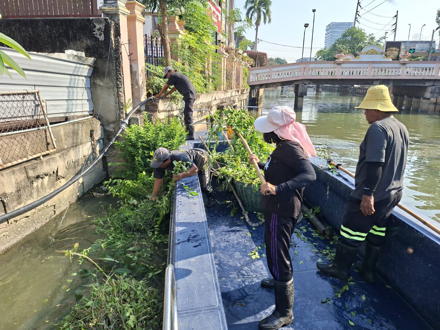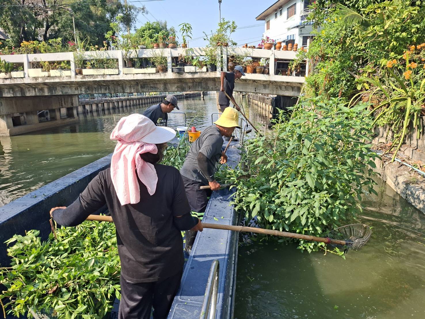 เจ้าหน้าที่ เก็บขยะและถอนวัชพืชคลองเปรมประชากร พื้นที่เขตบางซื่อ