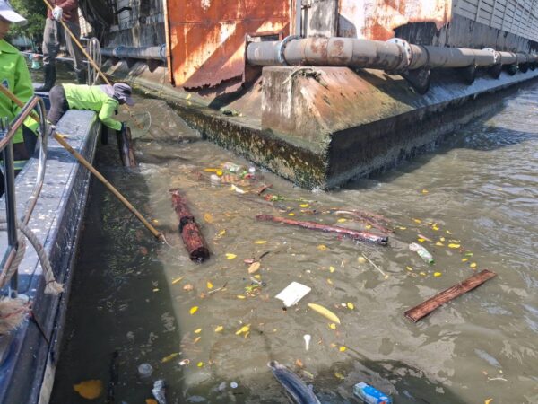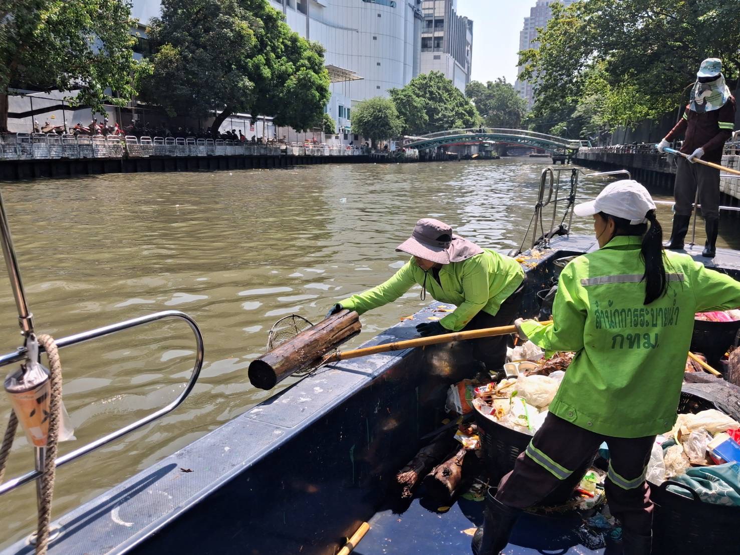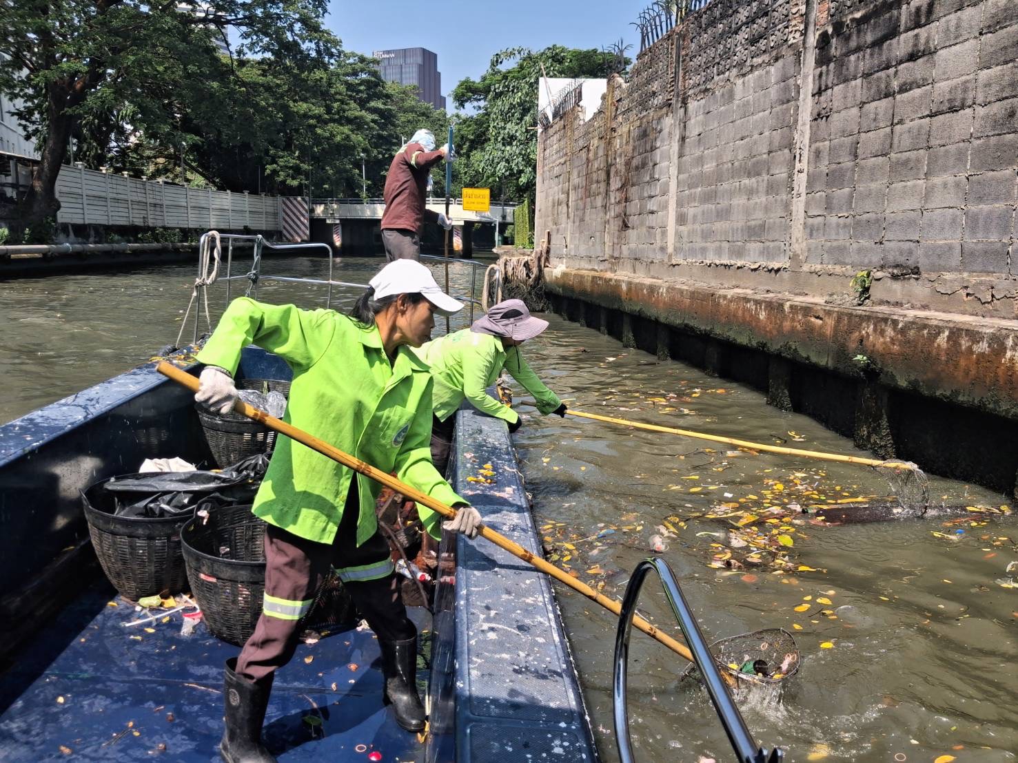 เจ้าหน้าที่ ตักขยะและวัชพืชคลองแสนแสบ ช่วงสี่แยกมหานาคถึงสะพานวิทยุ