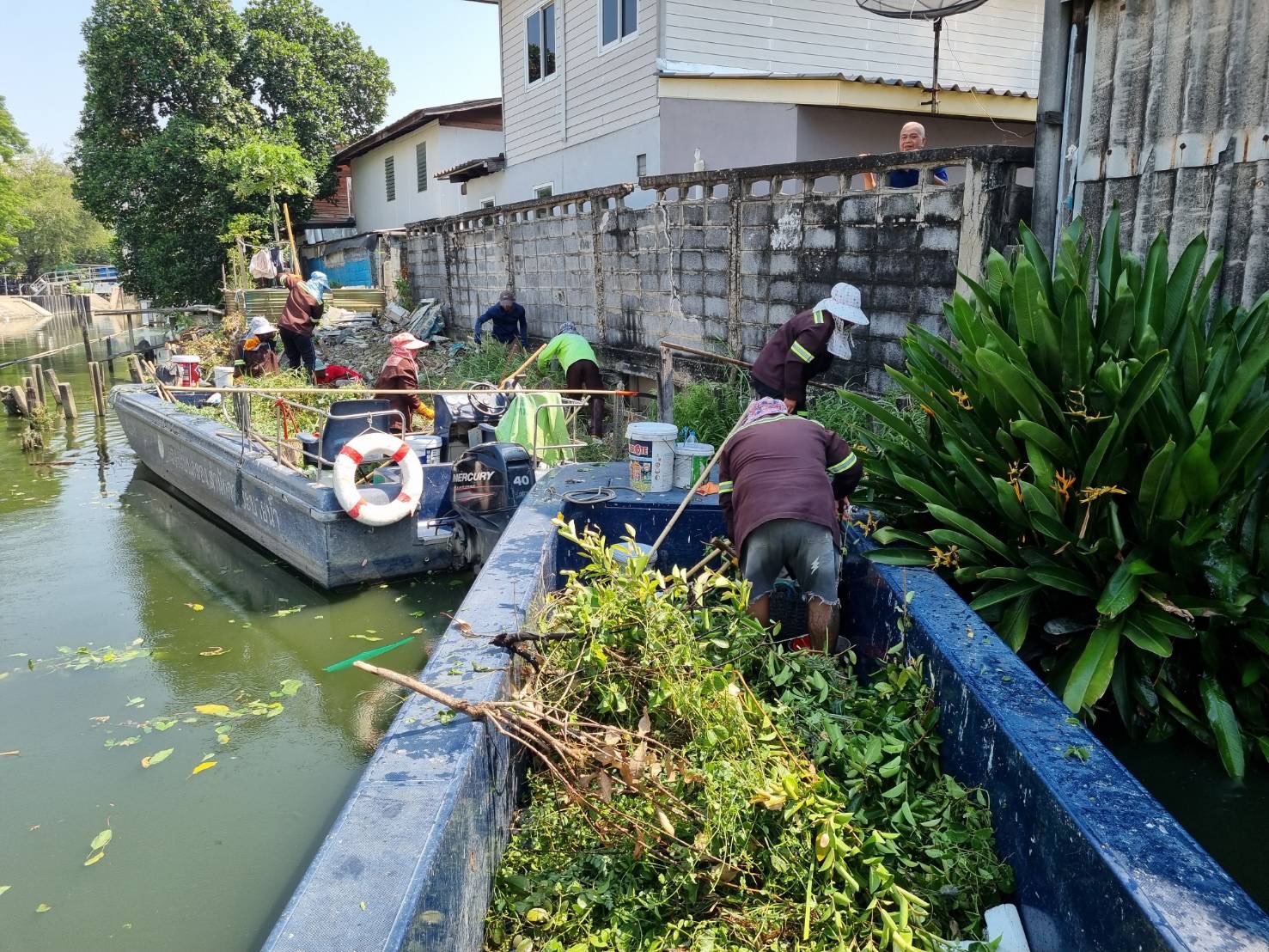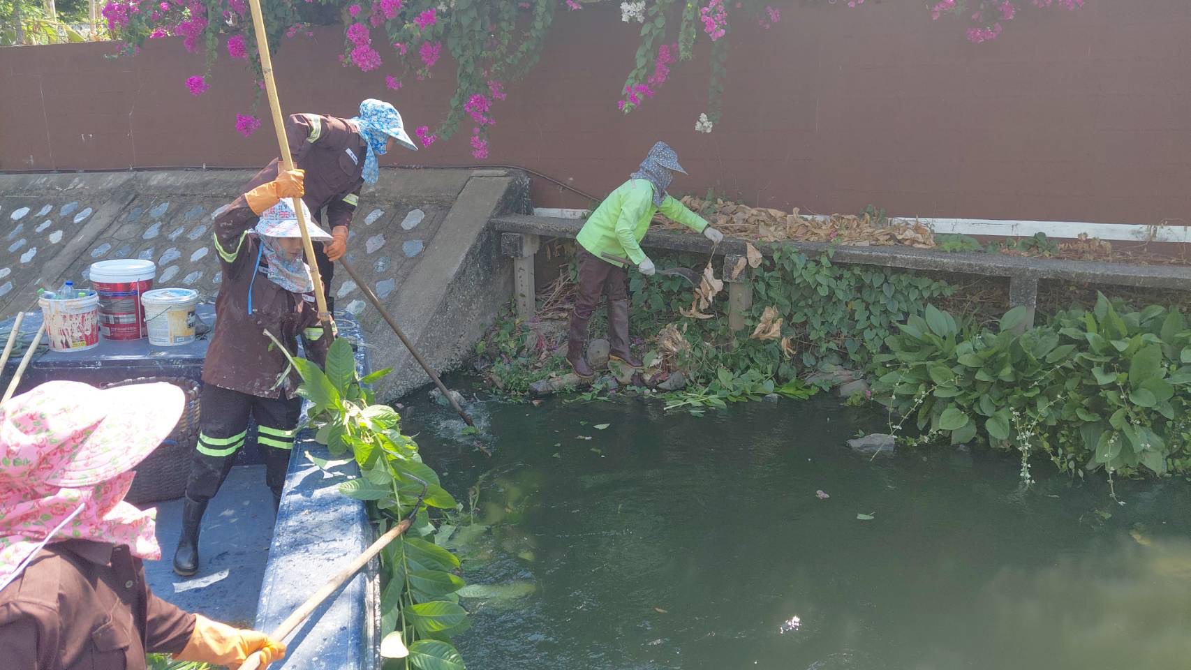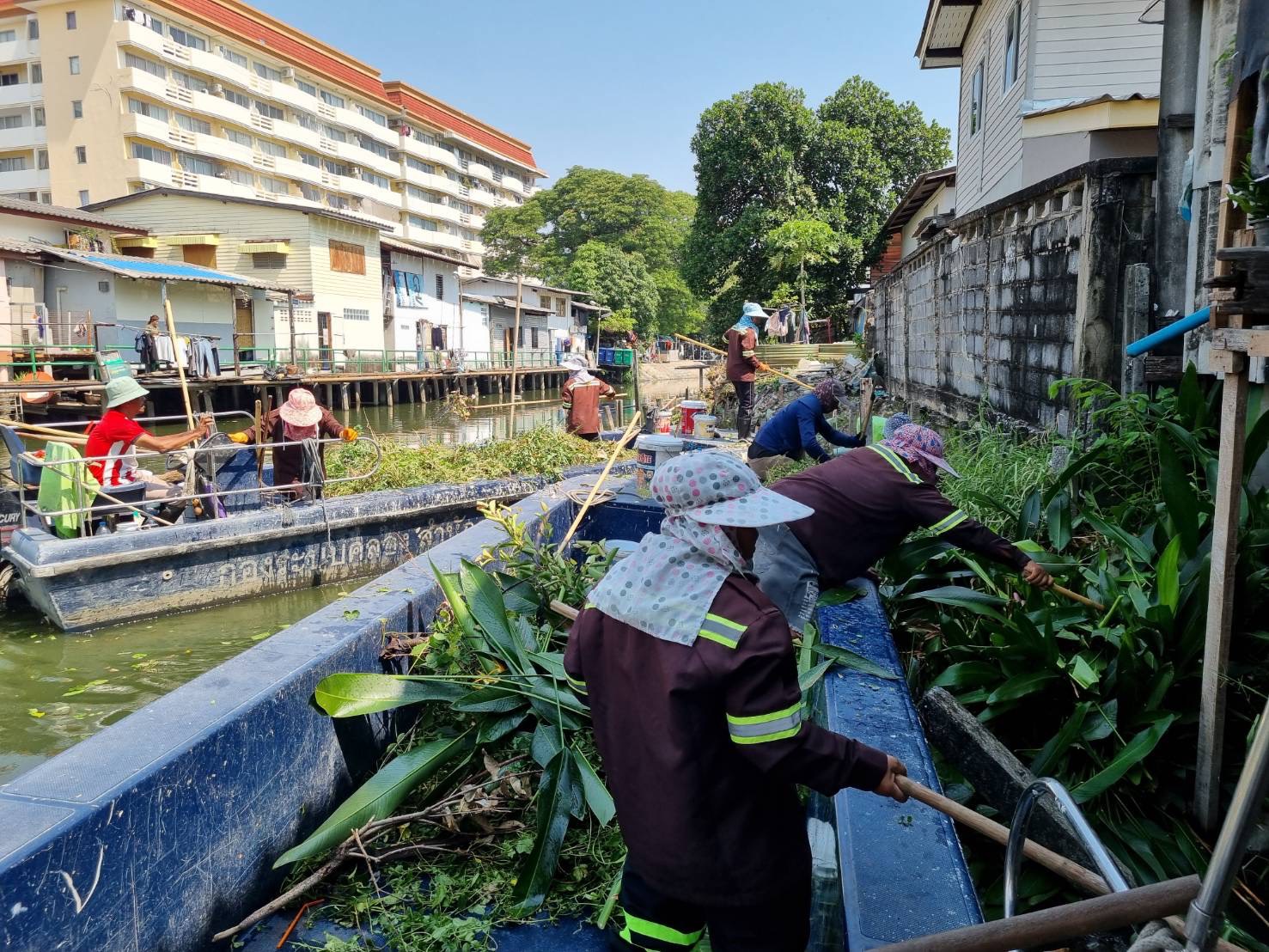 เจ้าหน้าที่ เก็บขยะและวัชพืช คลองลาดพร้าว พื้นที่เขตวังทองหลาง