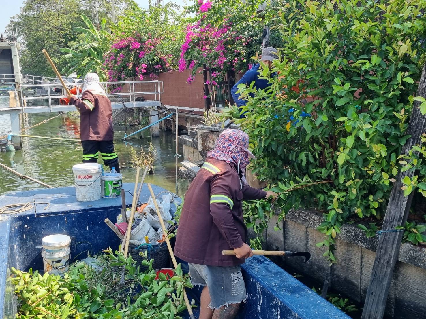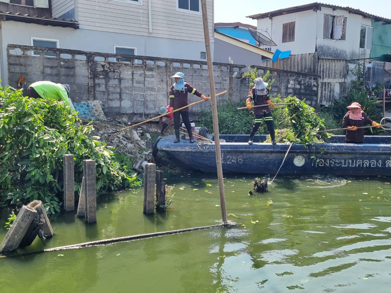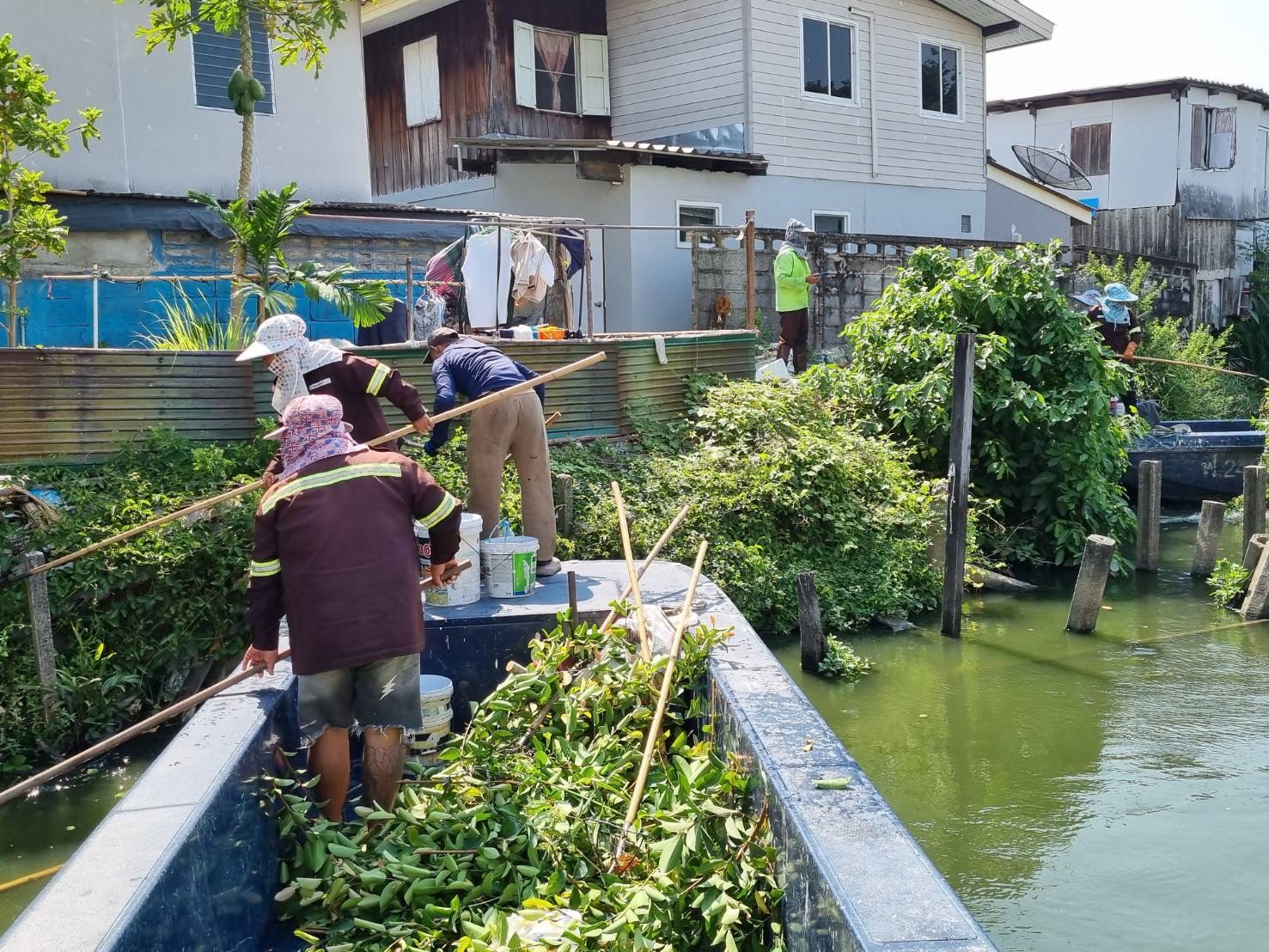 เจ้าหน้าที่ เก็บขยะและวัชพืช คลองลาดพร้าว พื้นที่เขตวังทองหลาง