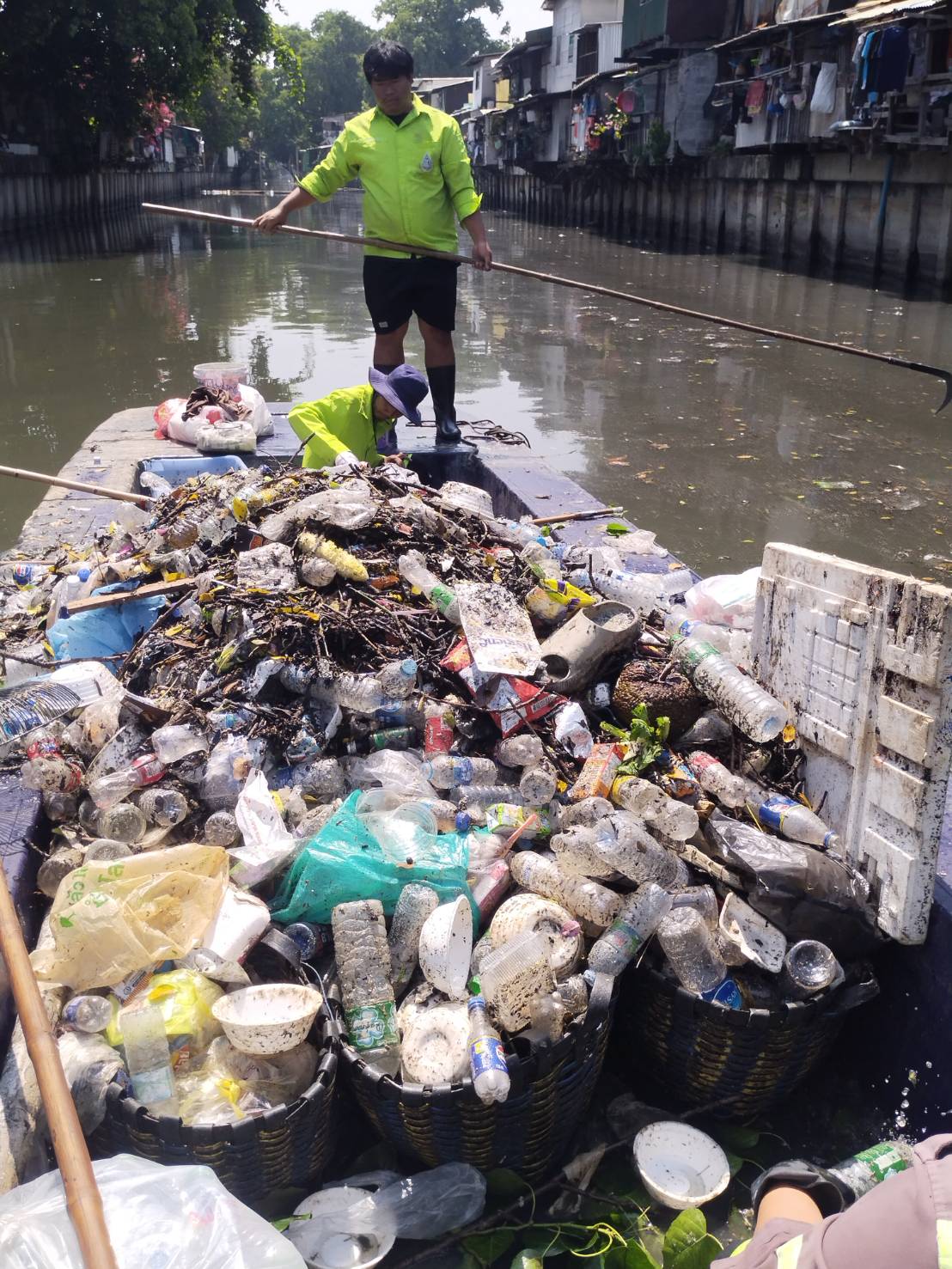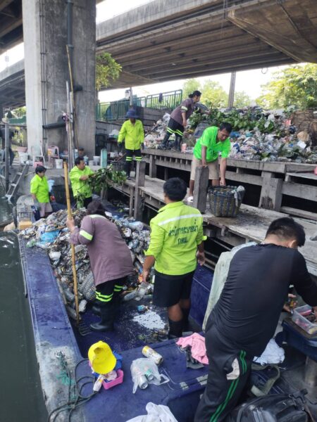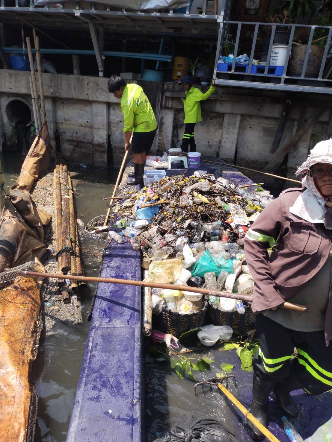 เจ้าหน้าที่ ตักขยะและวัชพืชคลองเตย(คลองหัวลำโพง)ช่วงสถานีสูบน้ำคลองเตยถึงตลาดคลองเตย พื้นที่เขตคลองเตย