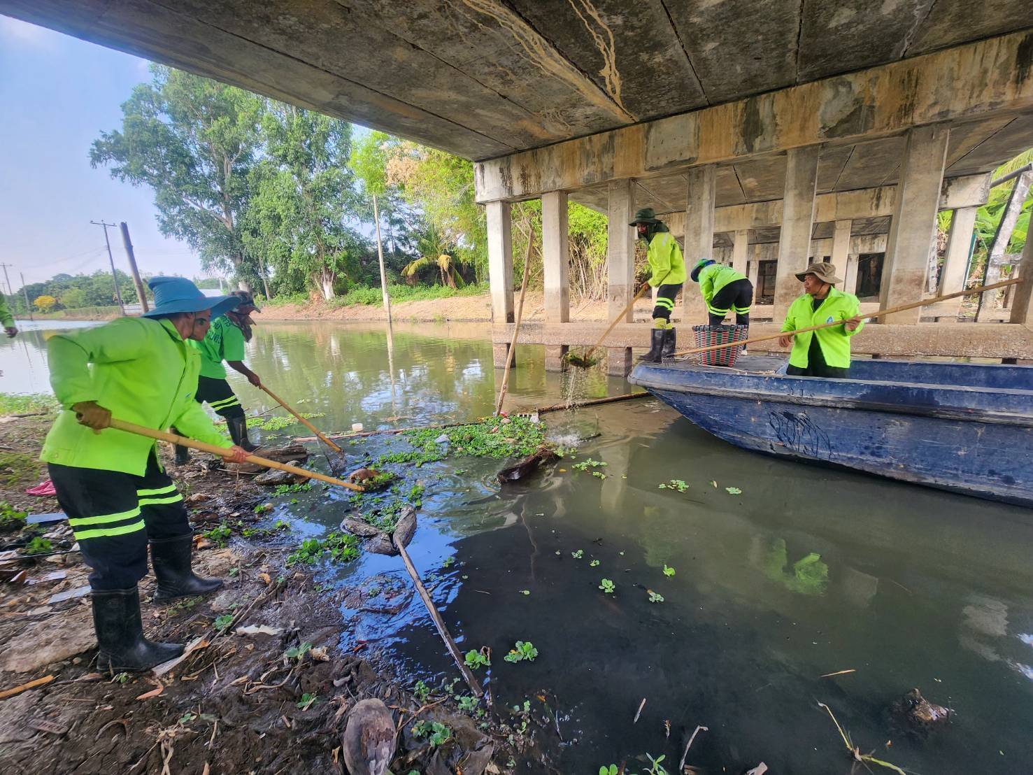 เจ้าหน้าที่ จัดเก็บขยะกำจัดวัชพืชคลองมะนาว ช่วงถนนรัชดาตัดถนนพระราม3 พื้นที่เขตบางคอแหลม 5 เมษายน 2026