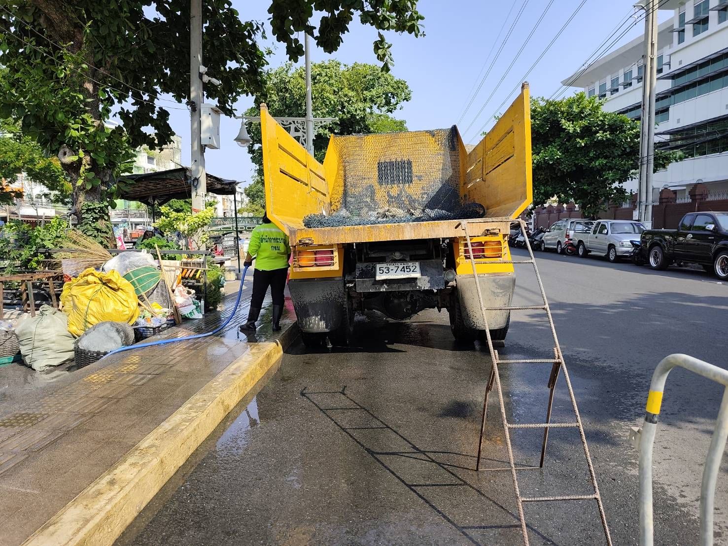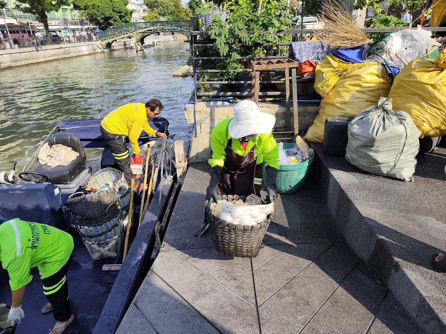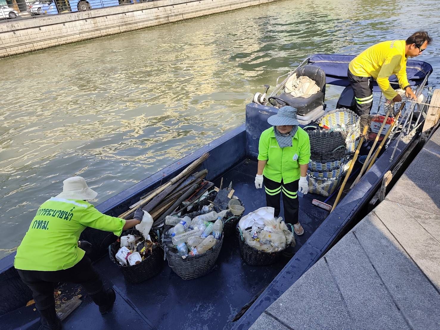 เจ้าหน้าที่ ตักเก็บขยะและวัชพืชคลองผดุงกรุงเกษมจาก ปตร. เทเวศร์ตลอดช่วงสะพานมัฆวานถึงสี่แยกมหานาค พื้นที่เขตดุสิต เขตพระนครเขตป้อมปราบศัตรูพ่าย