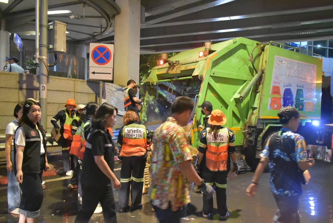 นอกจากนี้ กรุงเทพมหานครยังได้ติดตามสถานการณ์ด้านสิ่งแวดล้อมควบคู่กัน โดยจัดเก็บพร้อมรายงานปริมาณขยะที่จัดเก็บได้ในช่วงเทศกาลสงกรานต์ พบว่า ในวันที่ 12 เม.ย. 2569 มีปริมาณขยะรวม 58.65 ตัน แบ่งเป็น ขยะทั่วไป 46.38 ตัน (79.08%) ขยะรีไซเคิล 2.66 ตัน (4.54%) ขยะเศษอาหาร 9.61 ตัน (16.38%) โดยพื้นที่ที่มีปริมาณขยะสูงสุด ได้แก่ ถนนสีลม เขตบางรัก ขยะทั่วไป 25.96 ตัน รองลงมา ได้แก่ ไอคอนสยาม เขตคลองสาน ขยะทั่วไป 6.5 ตัน ลาน อสมท. เขตห้วยขวาง ขยะทั่วไป 4.21 ตัน คิง เพาเวอร์ รางน้ำ เขตราชเทวี ขยะทั่วไป 3.42 ตัน สยามสแควร์ เขตปทุมวัน ขยะทั่วไป 1.94 ตัน และเซ็นทรัลเวิลด์ เขตปทุมวัน ขยะทั่วไป 0.95 ตัน ตามลำดับ