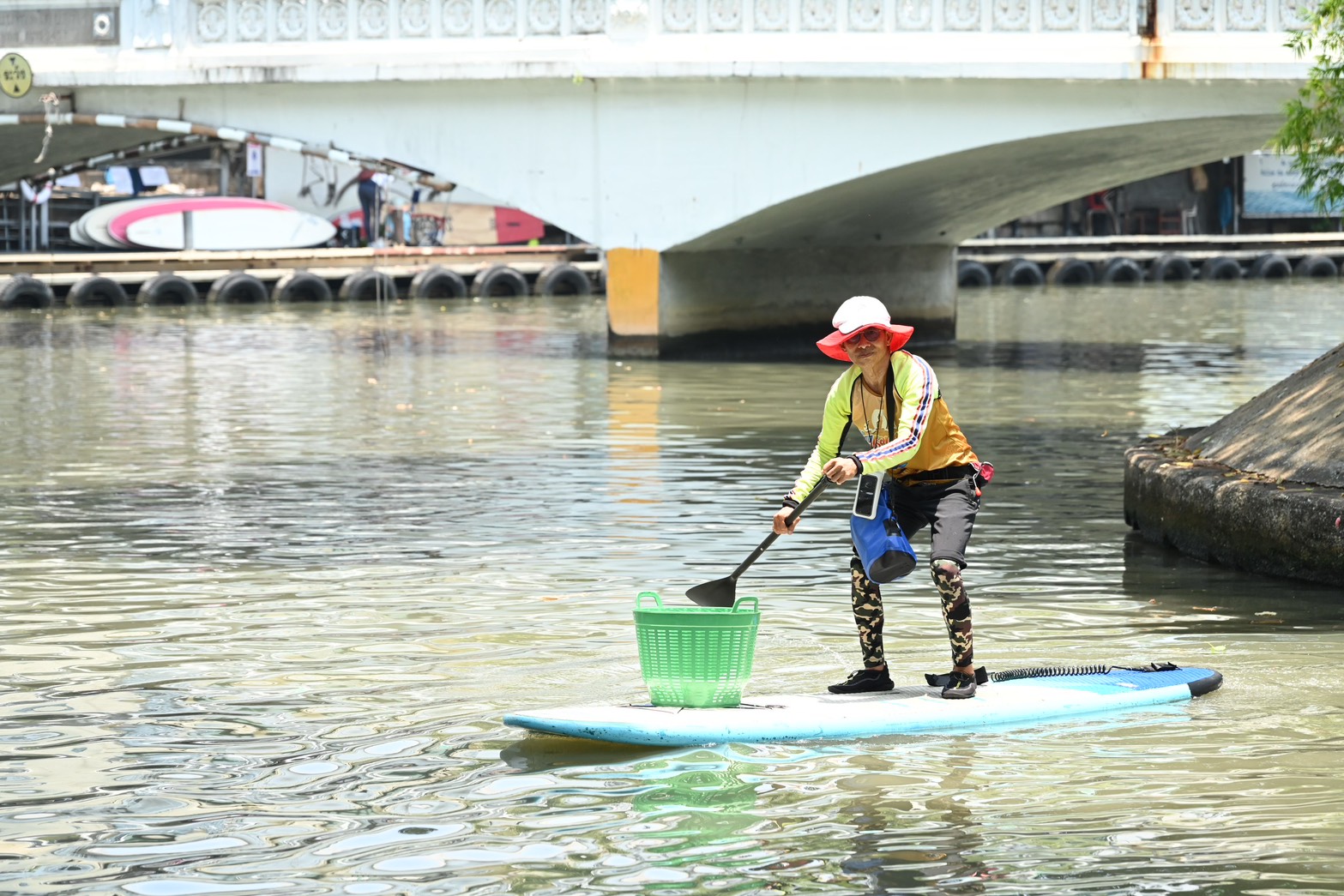 นอกจากนี้ ทีมเก็บขยะยังได้แวะพูดคุยกับชุมชนจำนวน 2 จุด ได้แก่ ชุมชนบ้านครัวใต้ และชุมชนมัสยิดมหานาค เพื่อเสวนาเรื่องการอนุรักษ์คลองแสนแสบ ทั้งนี้ รองผู้ว่าฯ ศานนท์ ร่วมลงพาย SUP Board ตลอดเส้นทาง