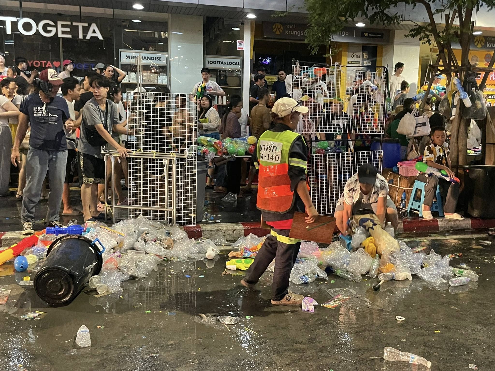 - ปริมาณขยะจากพื้นที่จัดงาน สำหรับปริมาณขยะสะสมในพื้นที่จัดงานสำคัญ (11 – 15 เม.ย. 69) มีจำนวนรวมทั้งสิ้น 336 ตัน เพิ่มขึ้นเมื่อเทียบกับยอดรวมปี 2568 ที่มียอดรวม 250.5 ตัน โดยพื้นที่ที่มีปริมาณขยะสูงสุด ได้แก่ ถนนข้าวสาร 102.46 ตัน ถนนสีลม 86.17 ตัน และไอคอนสยาม 58.70 ตัน ซึ่งขยะส่วนใหญ่ประมาณ 81.52% เป็นขยะทั่วไป มีขยะเศษอาหารประมาณ 14.1% และมีขยะรีไซเคิลประมาณ 4.38%