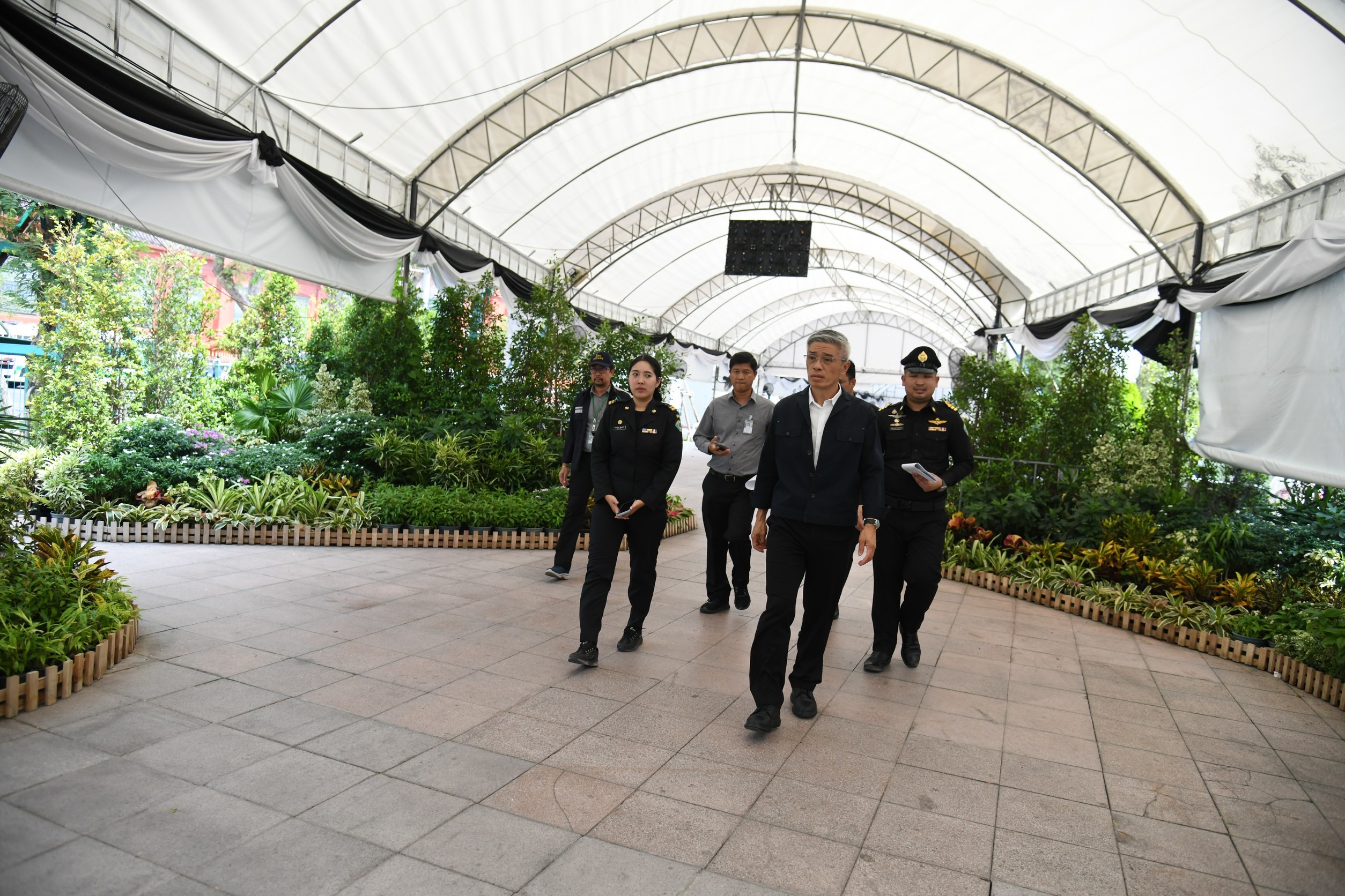 รองปลัดฯ ไทวุฒิ ได้กำชับให้ผู้เกี่ยวข้องพิจารณาบริหารจัดการและจัดสรรพื้นที่ให้เพียงพอเพื่อเตรียมพร้อมสำหรับการก่อสร้างพระเมรุมาศ โดยช่วงแรกจะย้ายเต็นท์ที่เป็นหน่วยบริการประชาชนของกรุงเทพมหานครและจิตอาสาพระราชทานที่อยู่บริเวณทางเข้า (ฝั่งถนนหน้าพระธาตุ) ไปอยู่บริเวณเต็นท์ว่างต่อจากครัวพระราชทาน ซึ่งจะดำเนินการให้แล้วเสร็จก่อนวันที่ 1 พ.ค. 69 เนื่องจากในวันที่ 1 พ.ค. 69 จะมีการล้อมรั้วกั้นพื้นที่สำหรับการก่อสร้างพระเมรุมาศ จากนั้นในช่วงปลาย ก.ค. 69 จะดำเนินการย้ายจุดพักคอยไปอยู่ในอุโมงค์ให้แล้วเสร็จก่อน 1 ส.ค. 69 เพื่อที่ทางกรมศิลปากรจะเริ่มดำเนินการก่อสร้างพระเมรุมาศ ตามกำหนดการในวันที่ 1 ส.ค. 69 ต่อไป