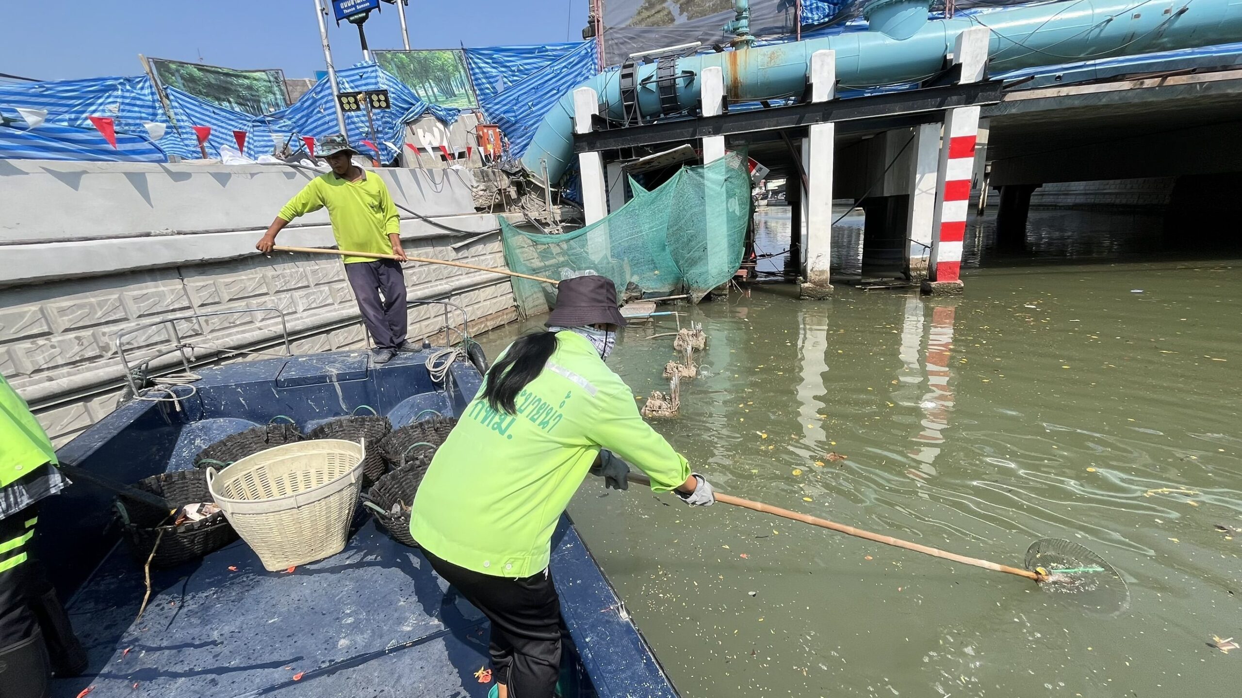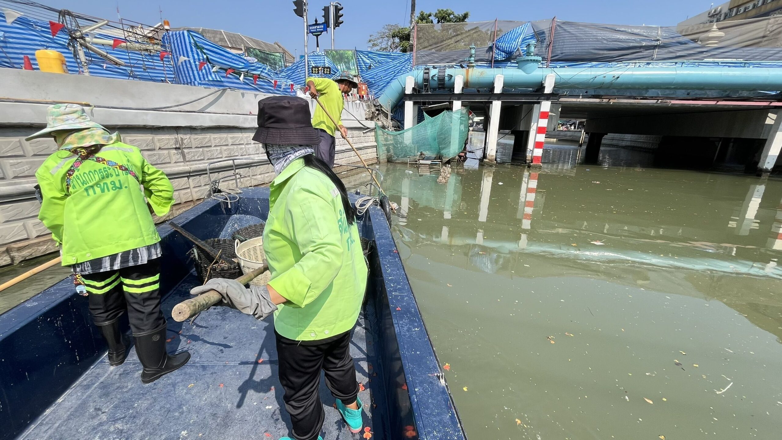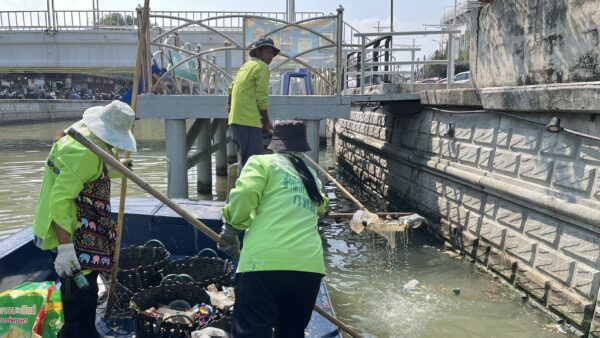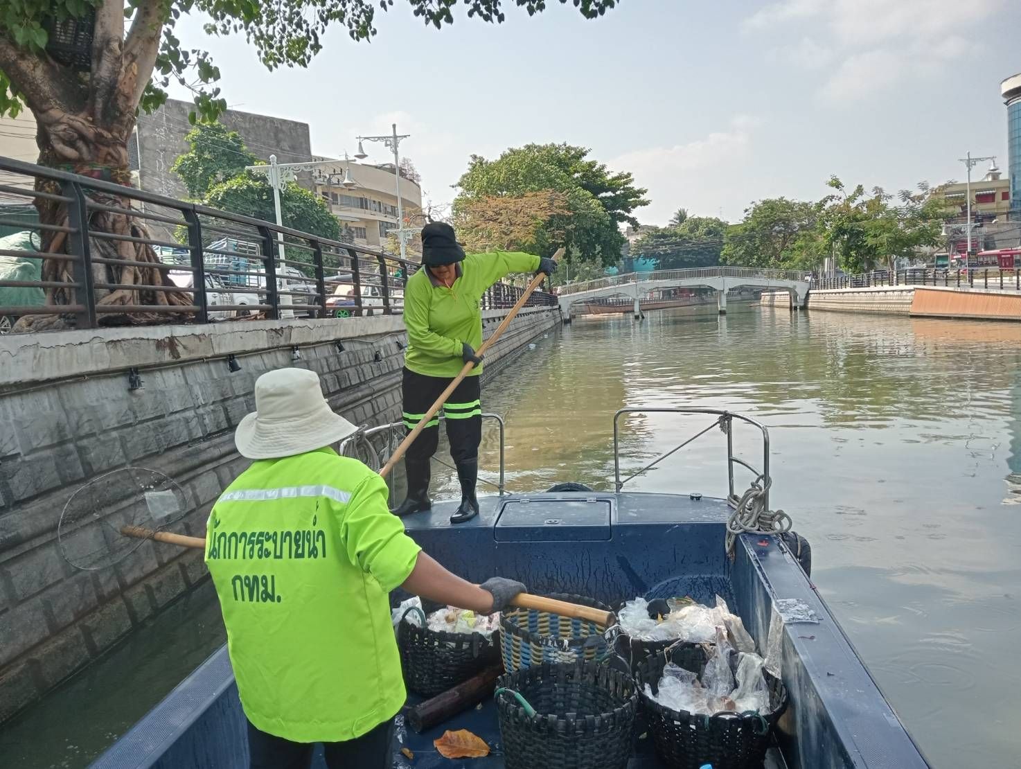 เจ้าหน้าที่ ตักเก็บขยะและวัชพืชคลองผดุงกรุงเกษม จาก ปตร. เทเวศร์ถึงสี่แยกมหานาค พื้นที่เขตดุสิต เขตพระนคร เขตป้อมปราบศัตรูพ่าย