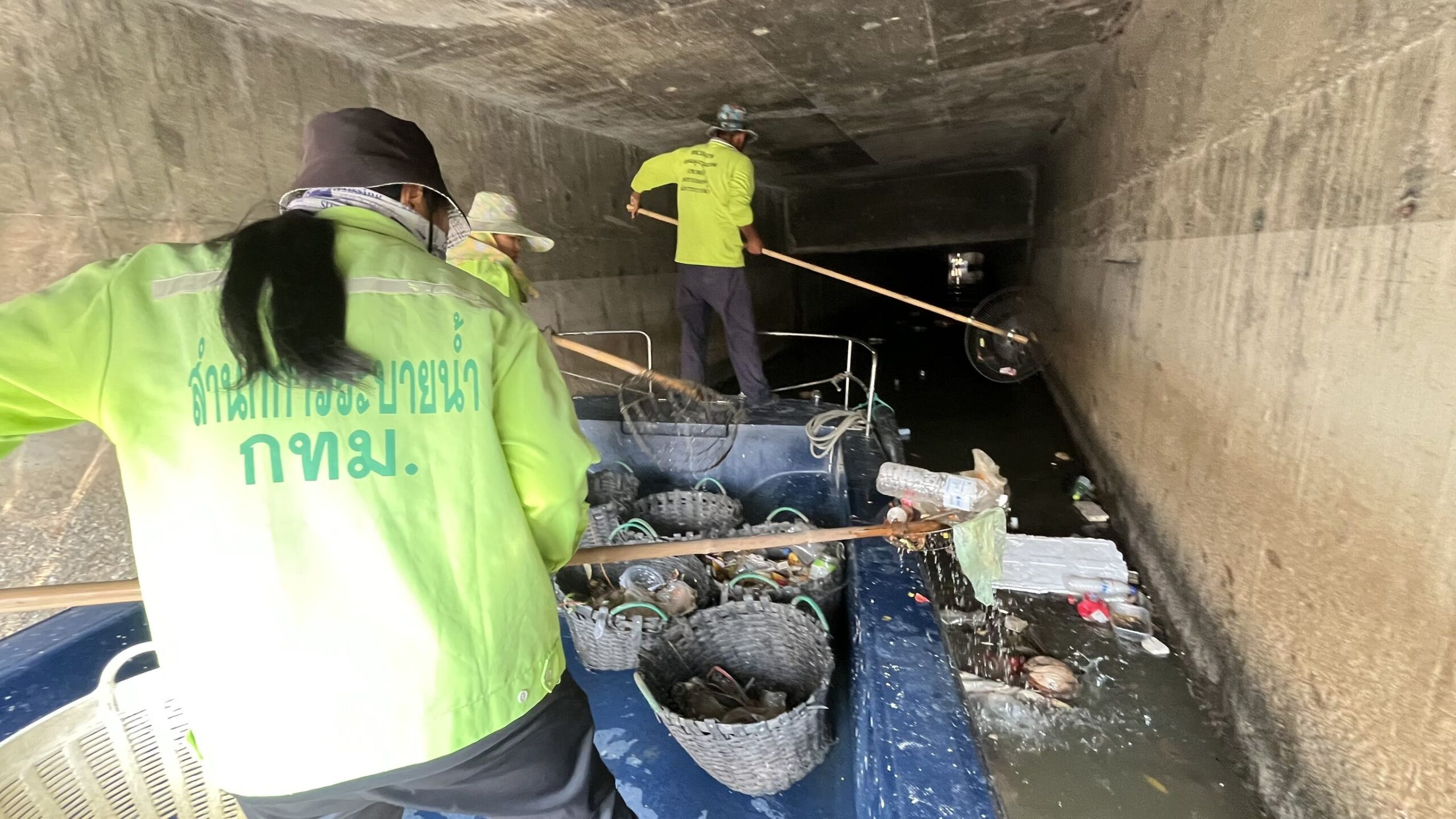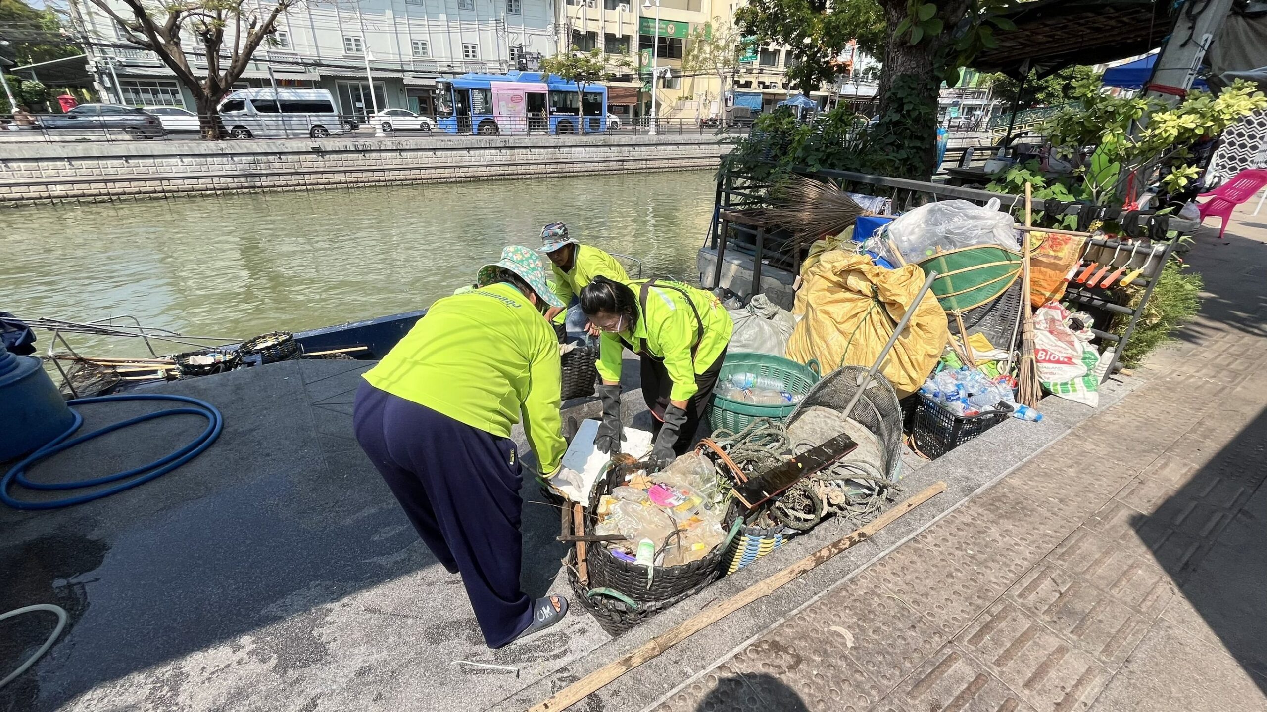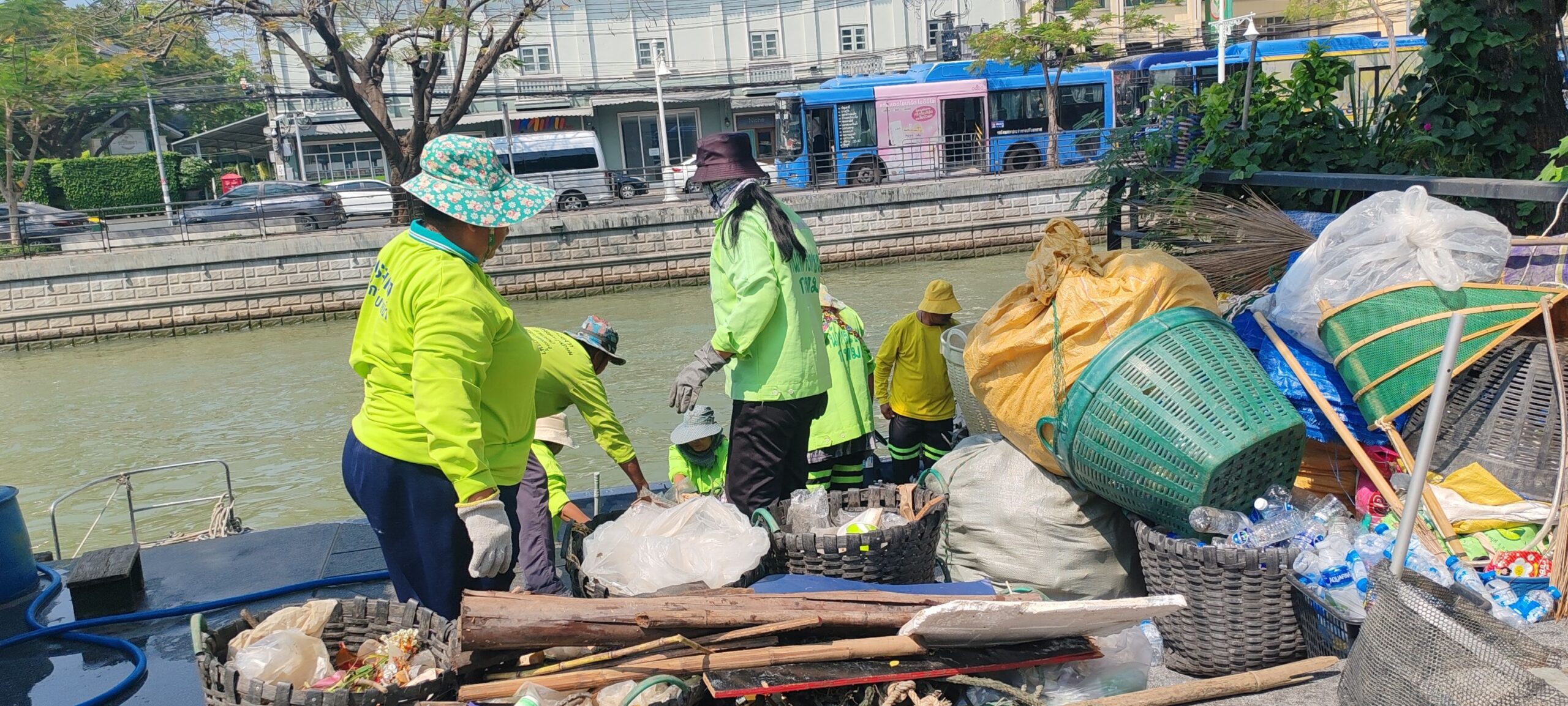 เจ้าหน้าที่ ตักเก็บขยะและวัชพืชคลองผดุงกรุงเกษม จาก ปตร. เทเวศร์ถึงสี่แยกมหานาค พื้นที่เขตดุสิต เขตพระนคร เขตป้อมปราบศัตรูพ่าย