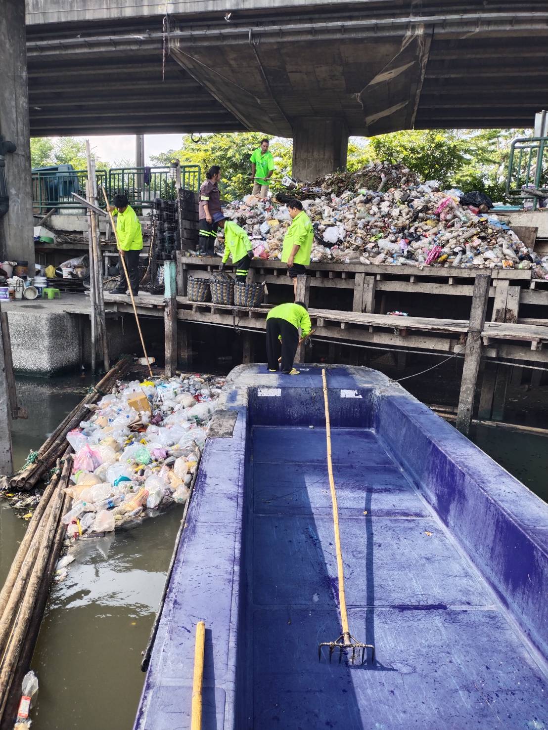 เจ้าหน้าที่ ตักขยะและวัชพืชคลองเตย(คลองหัวลำโพง)ช่วงสถานีสูบน้ำคลองเตยถึงตลาดคลองเตย พื้นที่เขตคลองเตย