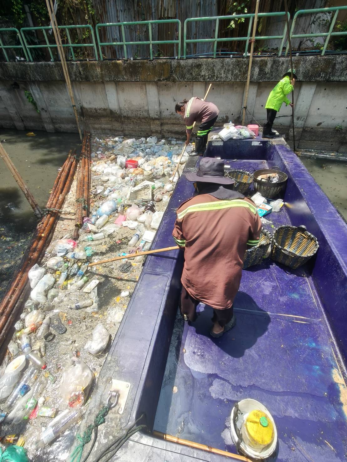 เจ้าหน้าที่ ตักขยะและวัชพืชคลองเตย(คลองหัวลำโพง)ช่วงสถานีสูบน้ำคลองเตยถึงตลาดคลองเตย พื้นที่เขตคลองเตย