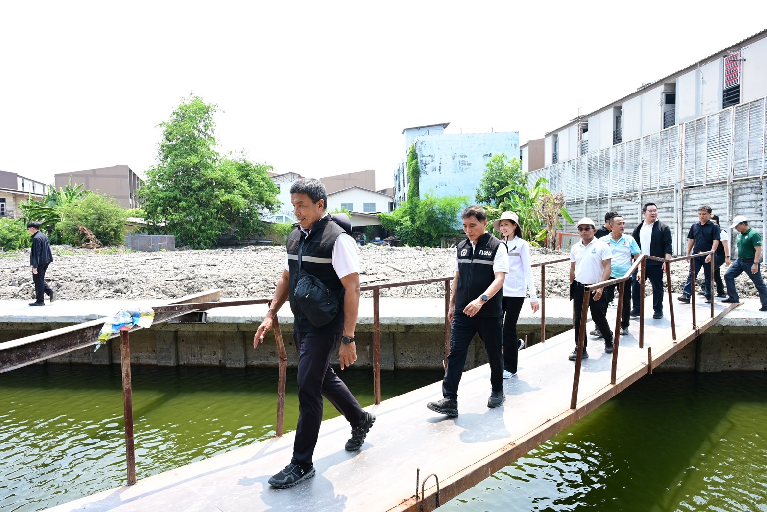 ผู้ว่าฯ ชัชชาติ กล่าวต่อไปว่า นอกจากนี้ได้ติดตามโครงการด้านโครงสร้างพื้นฐาน โดยเฉพาะการก่อสร้างเขื่อนป้องกันน้ำท่วมและทางเดินริมคลองหลอแหล ในพื้นที่เขตคันนายาว ซึ่งพบปัญหาจากการก่อสร้างคือ สะพานข้ามถูกขยับแนวทำให้ทางเดินไม่ตรงและไม่มีราวกั้นที่เหมาะสม ทำให้ชาวบ้านที่ไม่คุ้นทางเกิดอุบัติเหตุได้ รวมถึงมีความชันมากจนผู้สูงอายุใช้งานลำบาก ตนได้สั่งการให้ปรับรูปแบบสะพานใหม่ ลดความชัน ขยับแนวให้เดินสะดวก และต้องติดตั้งราวกั้น โดยกำชับว่าก่อนดำเนินการต้องเอาแบบไปให้ประธานชุมชนดูก่อนเพื่อให้เกิดประโยชน์กับคนใช้งานจริง