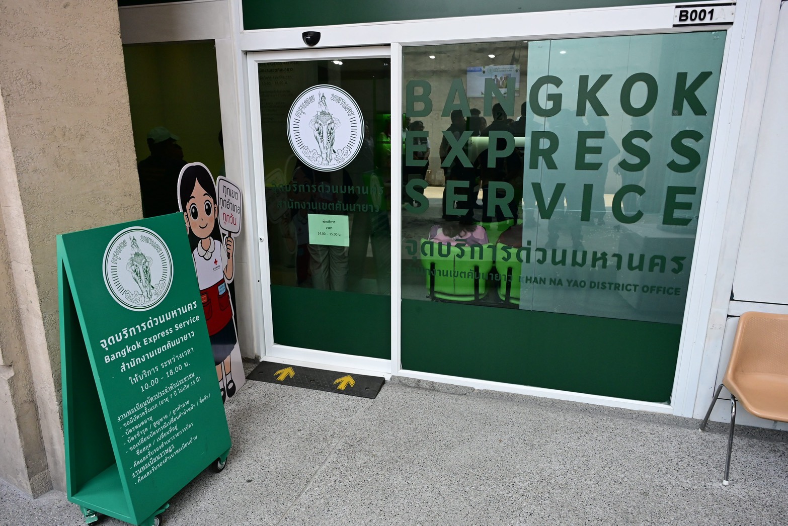 จุดสุดท้ายของวัน คือการตรวจเยี่ยมจุดบริการด่วนมหานคร (Bangkok Express Service) ภายในศูนย์การค้าแฟชั่นไอส์แลนด์ เพื่ออำนวยความสะดวกในการเข้าถึงบริการภาครัฐของประชาชนให้มากยิ่งขึ้น ซึ่งจุดนี้ที่คันนายาวมีผู้มาใช้บริการจำนวนมากกว่าสำนักงานเขต เนื่องจากมีความสะดวกด้านสถานที่จอดรถและสามารถทำธุระอื่นควบคู่กันได้ ทั้งนี้ ศูนย์การค้าฯ ไม่ได้เก็บค่าเช่าพื้นที่ คิดเพียงค่าไฟฟ้า โดยปัจจุบันเราขยายจุดบริการแบบนี้ไปหลายสิบแห่งทั่วกรุงเทพฯ ซึ่งถือเป็นแนวทางพัฒนาการบริการที่ตอบโจทย์วิถีชีวิตของคนเมืองอย่างแท้จริง
