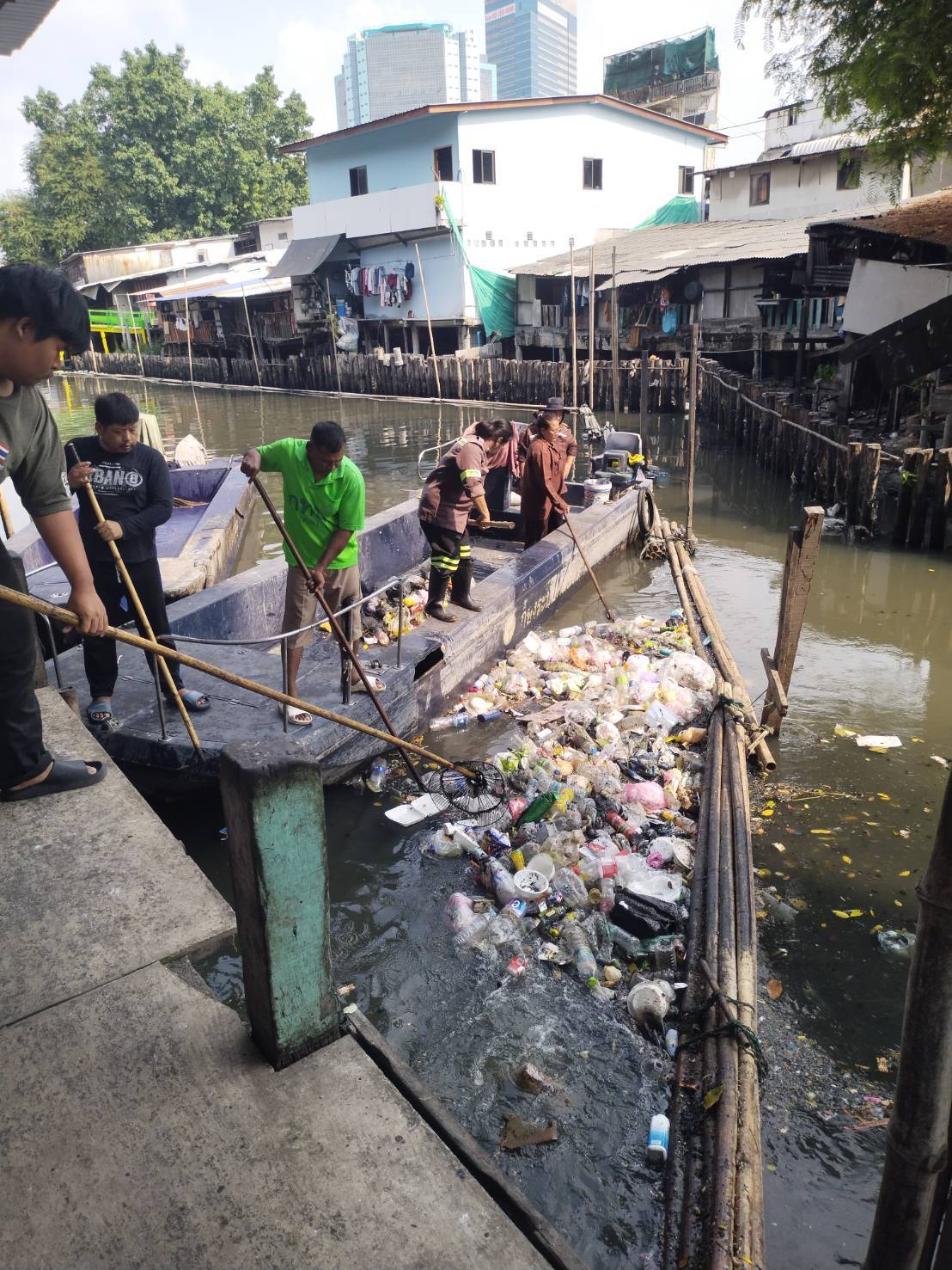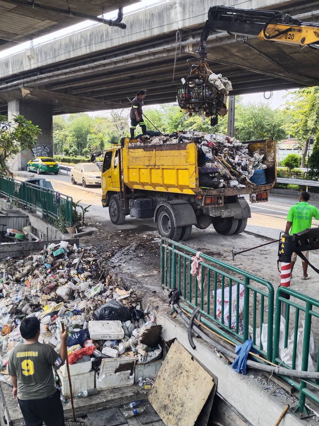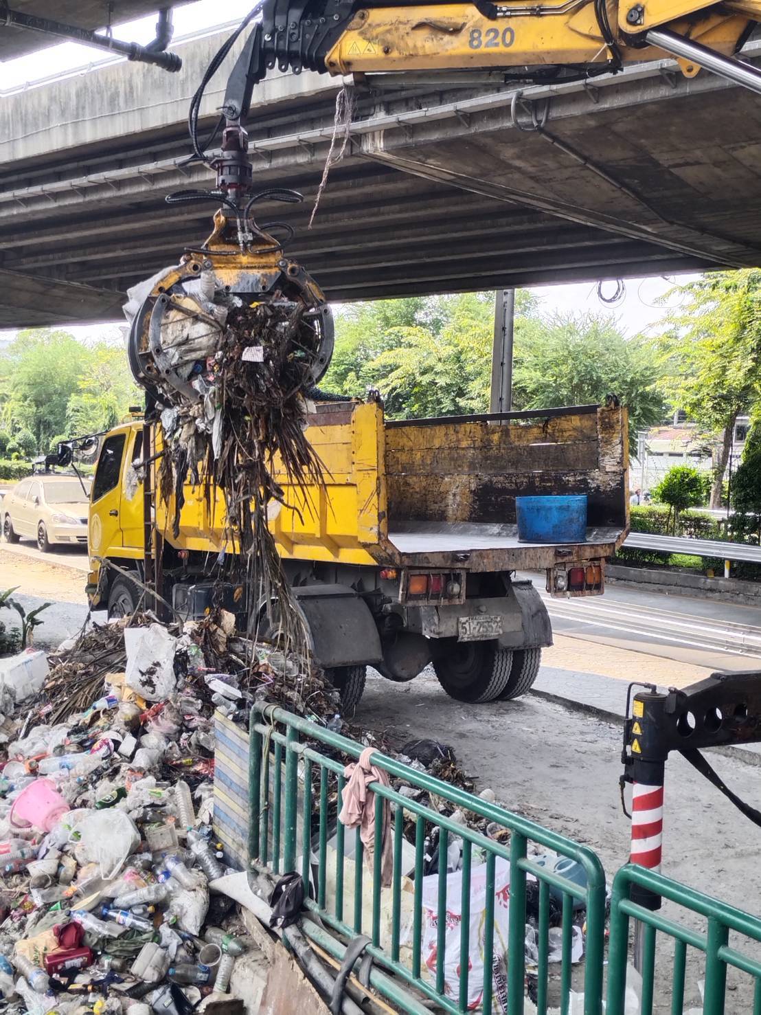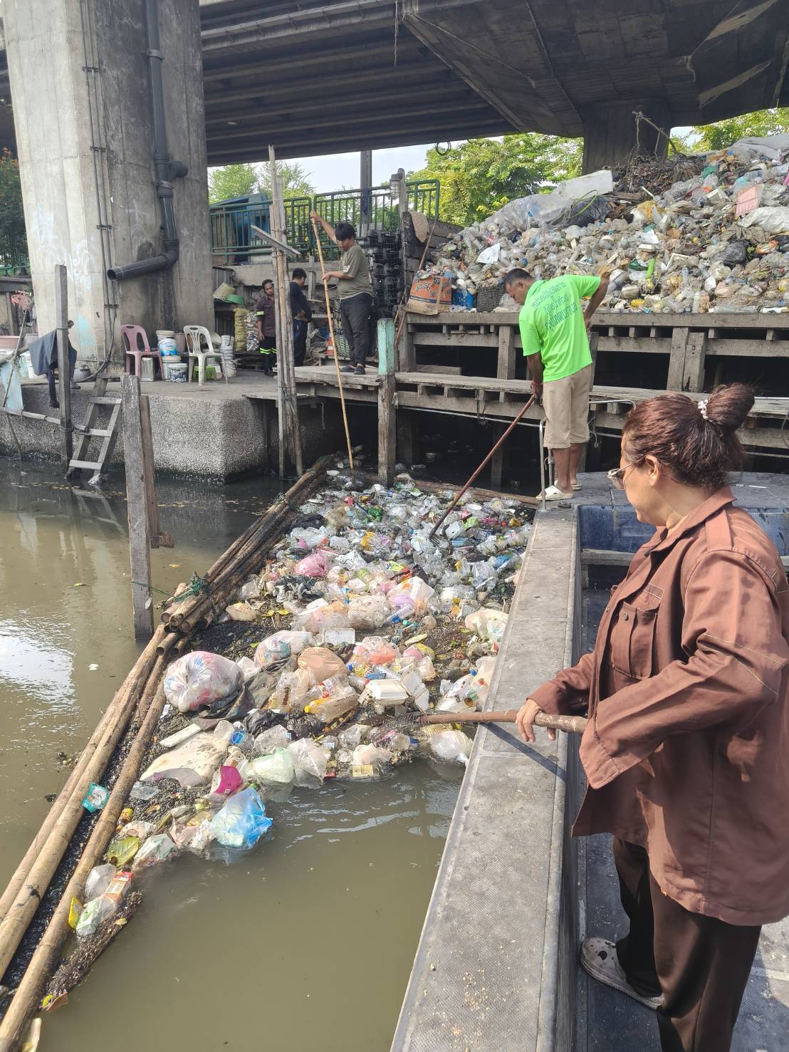 เจ้าหน้าที่ ตักขยะและวัชพืชคลองเตย ช่วงสถานีสูบน้ำคลองเตยถึงตลาดคลองเตย พื้นที่เขตคลองเตย