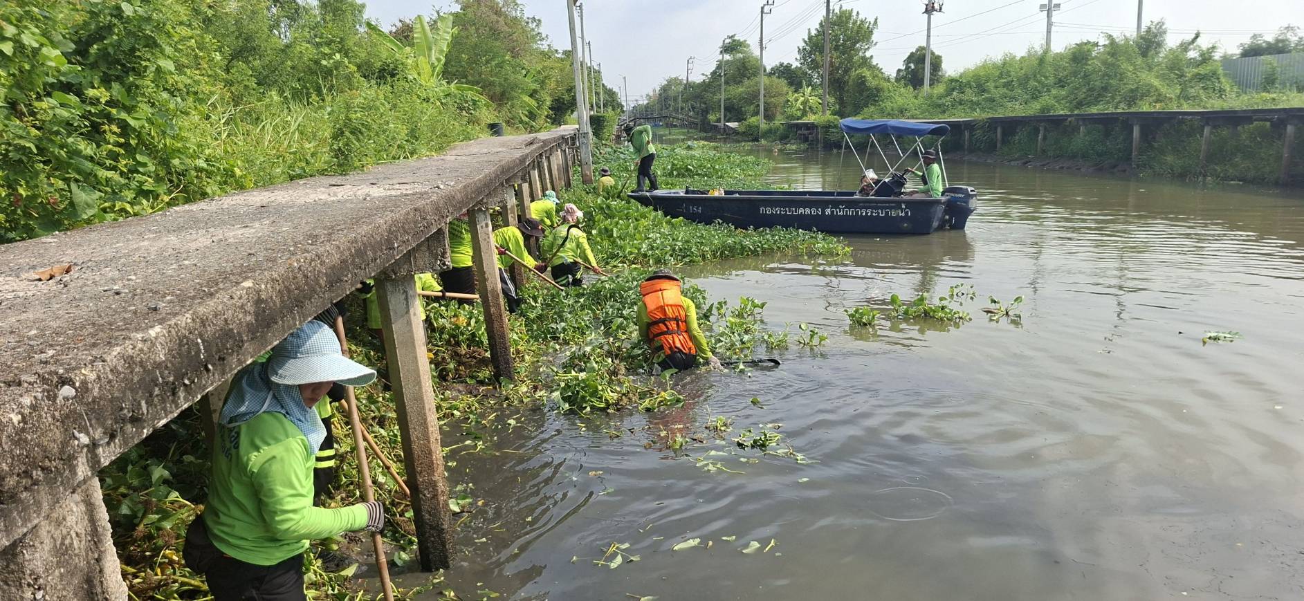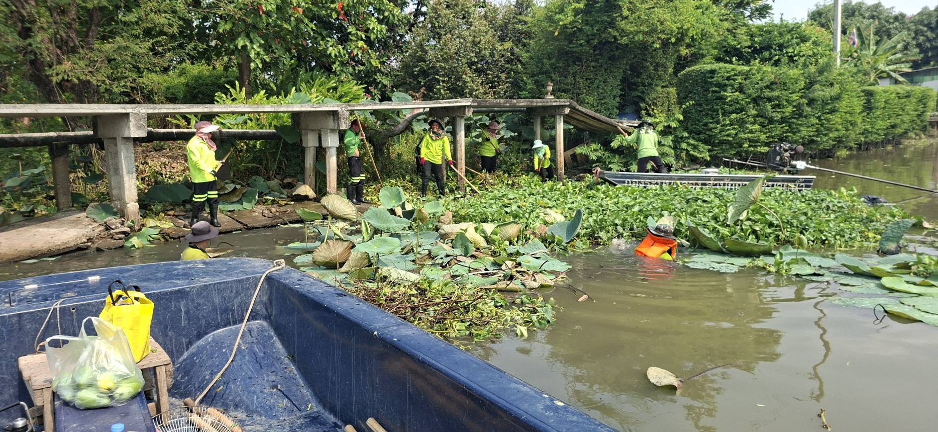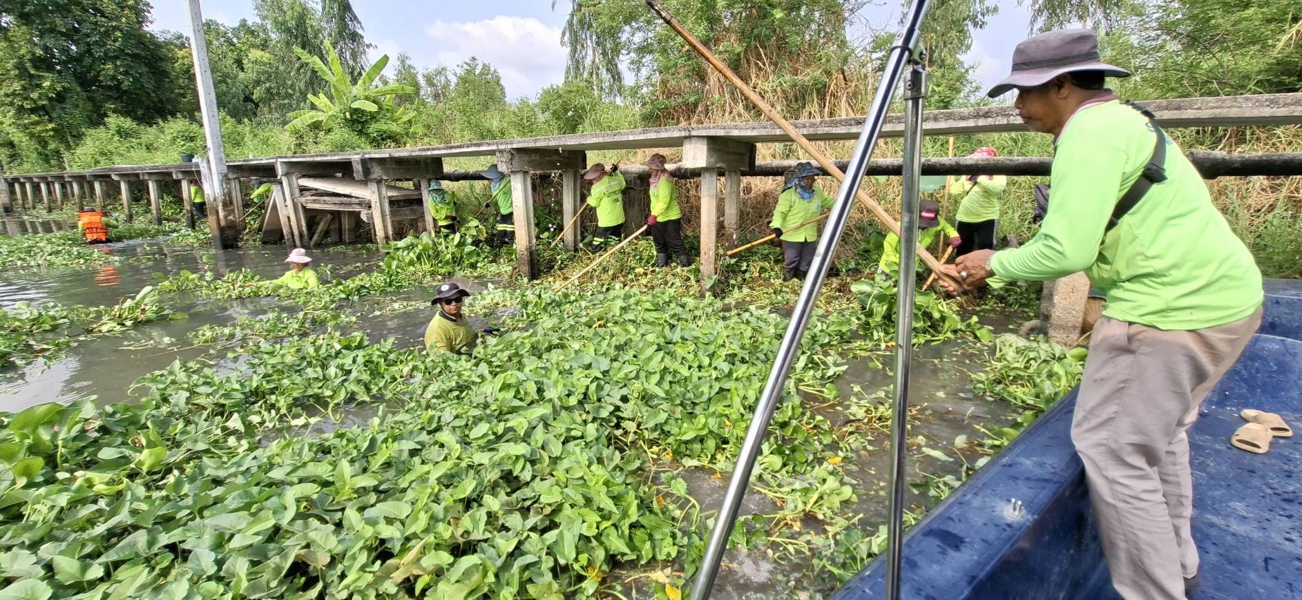 เจ้าหน้าที่ จัดเก็บขยะวัชพืชคลองสามประเวศ พื้นที่เขตลาดกระบัง