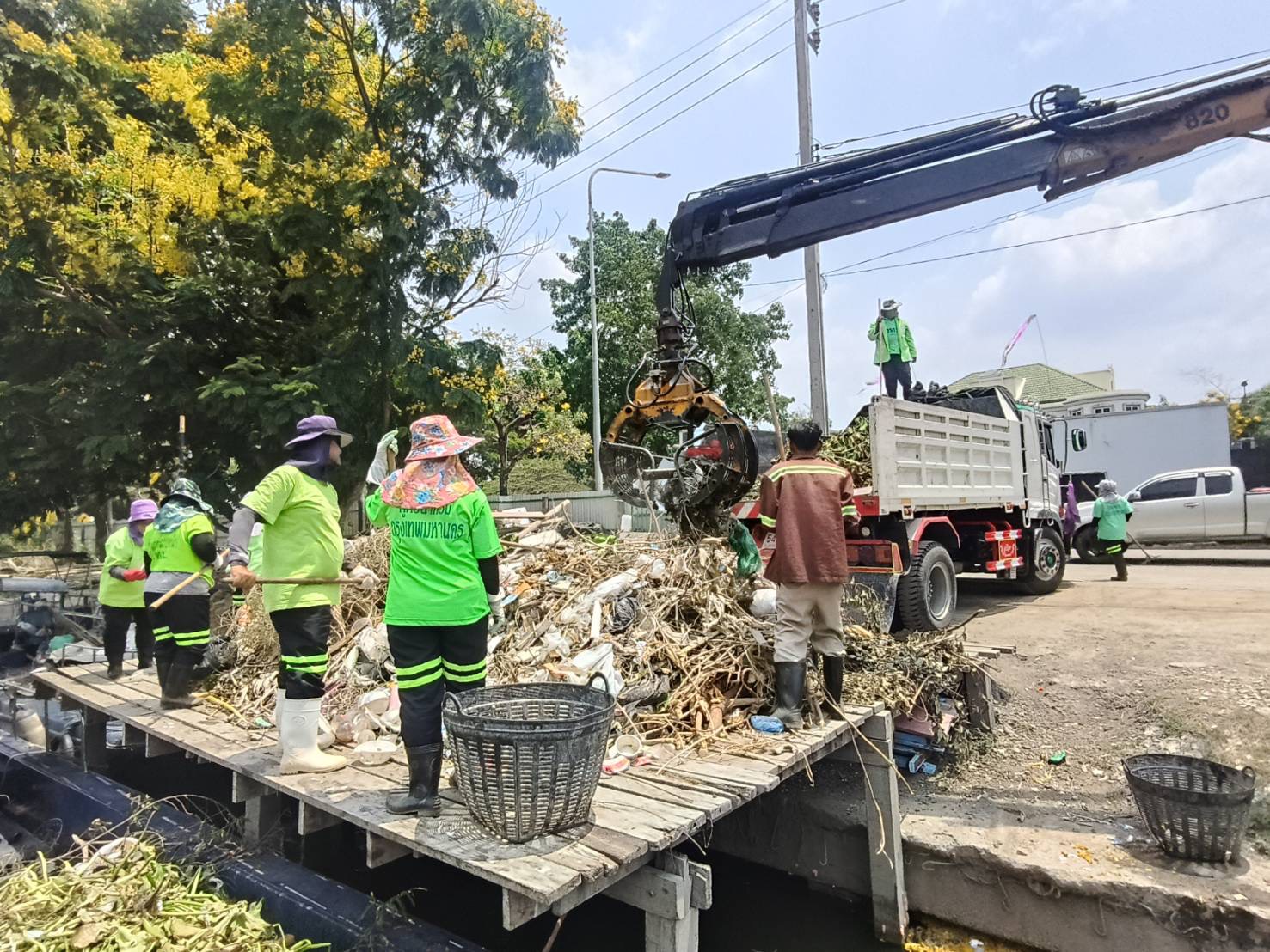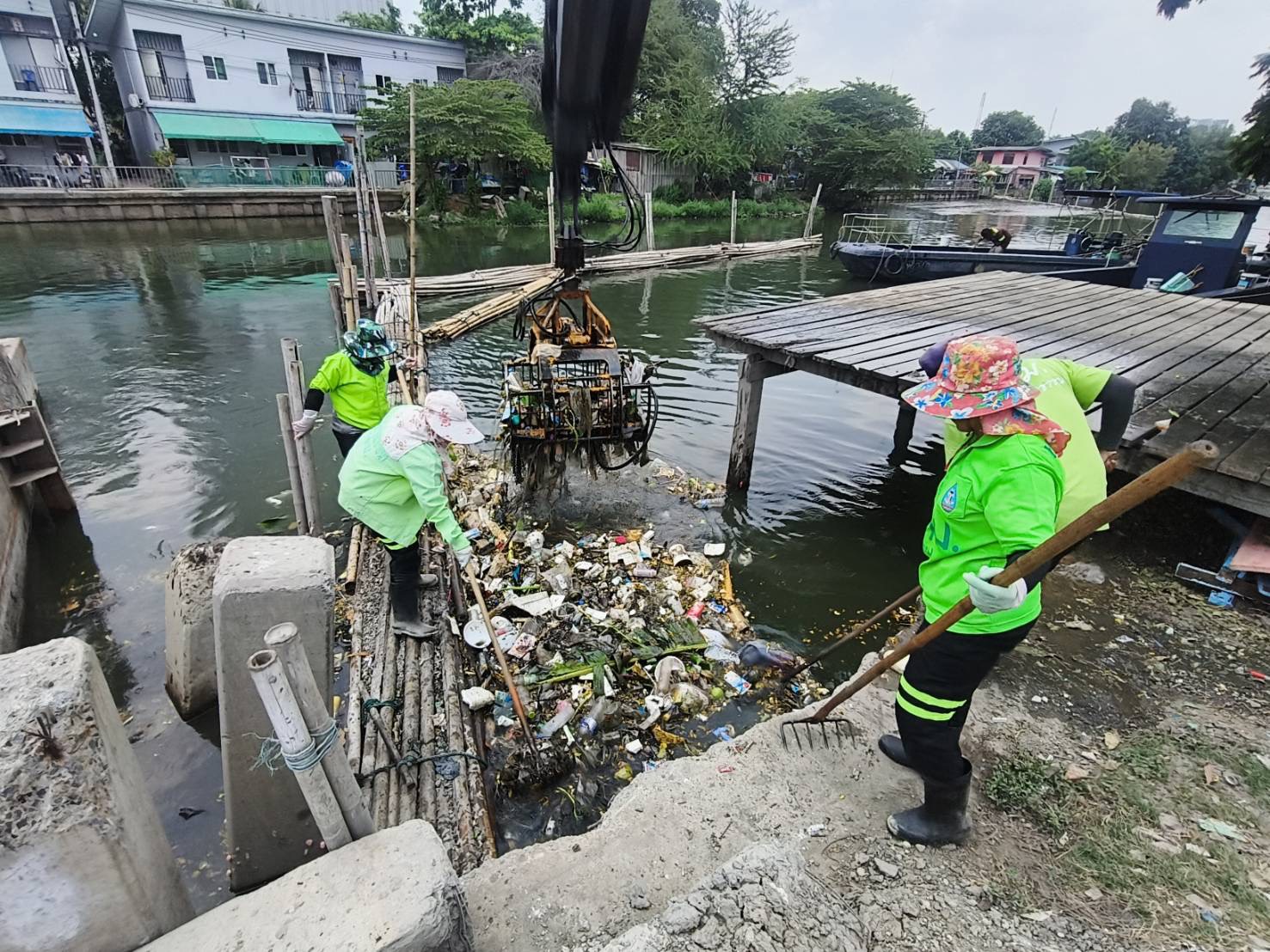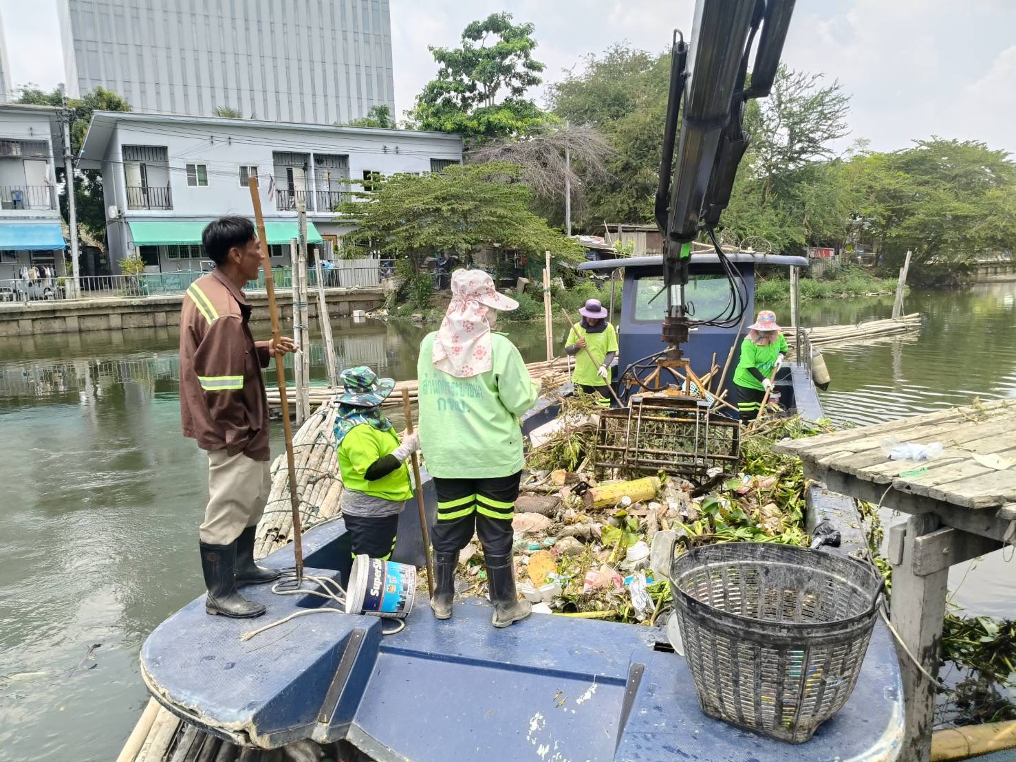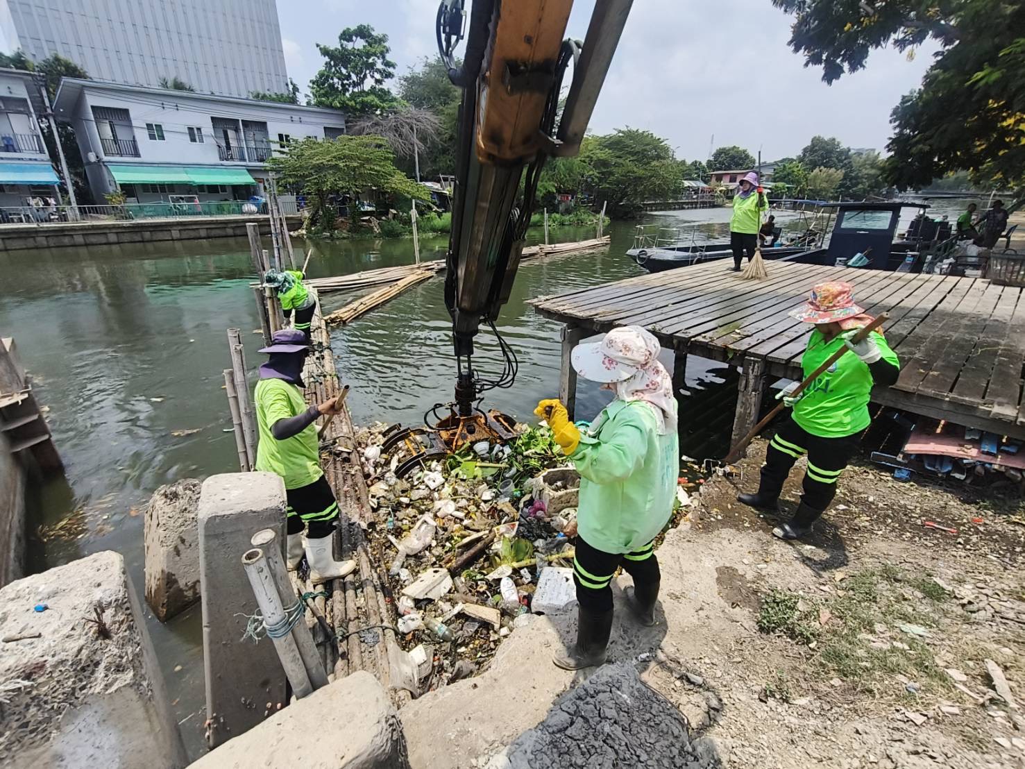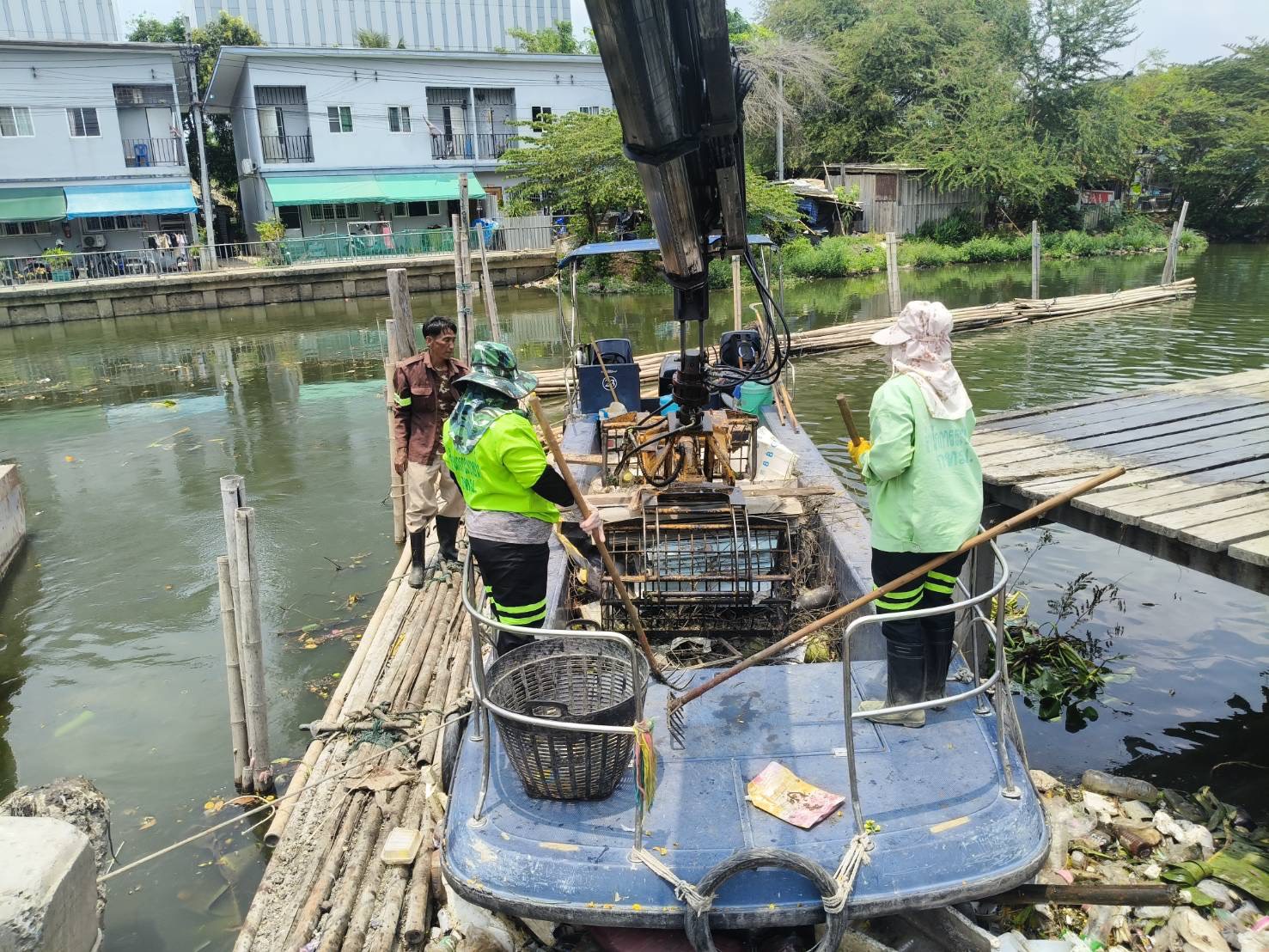 เจ้าหน้าที่ งับขยะและวัชพืช คลองลาดพร้าว พื้นที่เขตลาดพร้าว