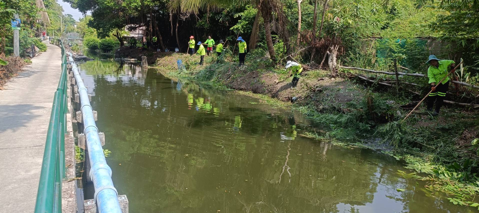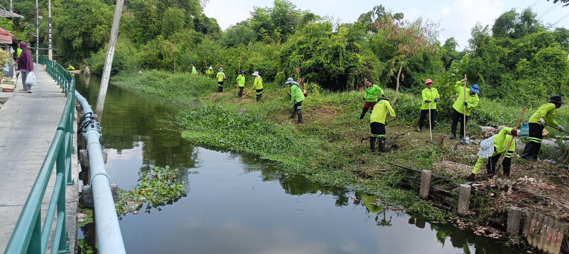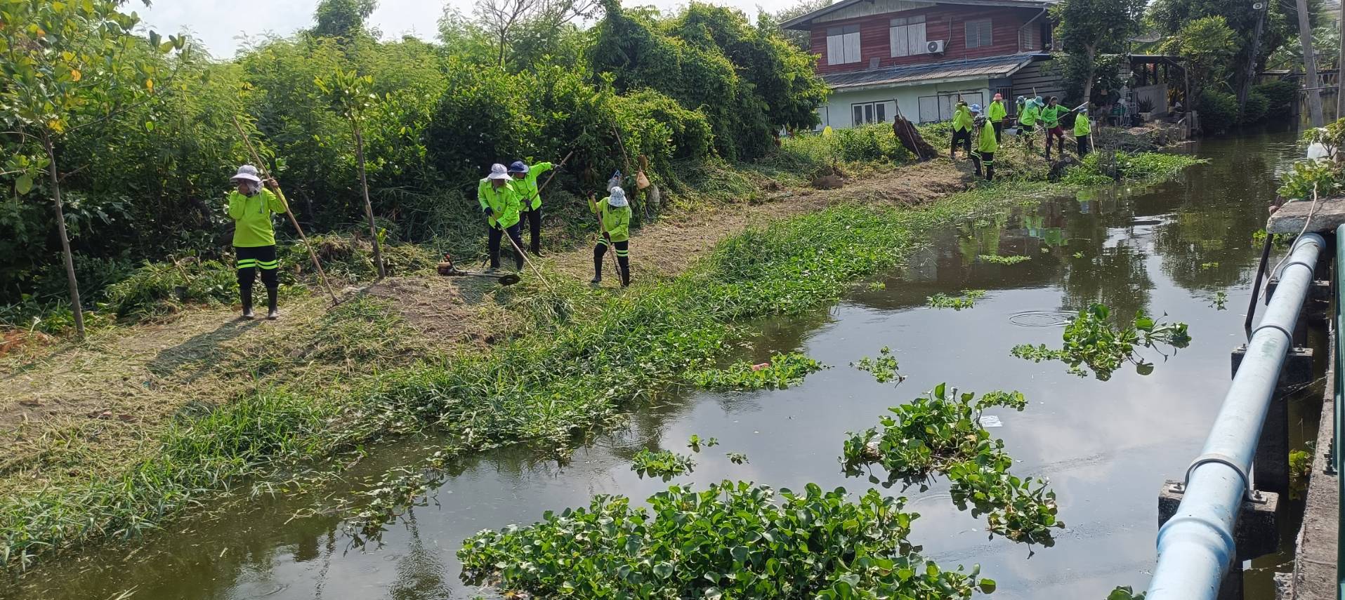 เจ้าหน้าที่ จัดเก็บวัชพืชตัดหญ้าคลองสองห้อง ช่วงแยกคลองจระเข้ขบพื้นที่เขตประเวศ