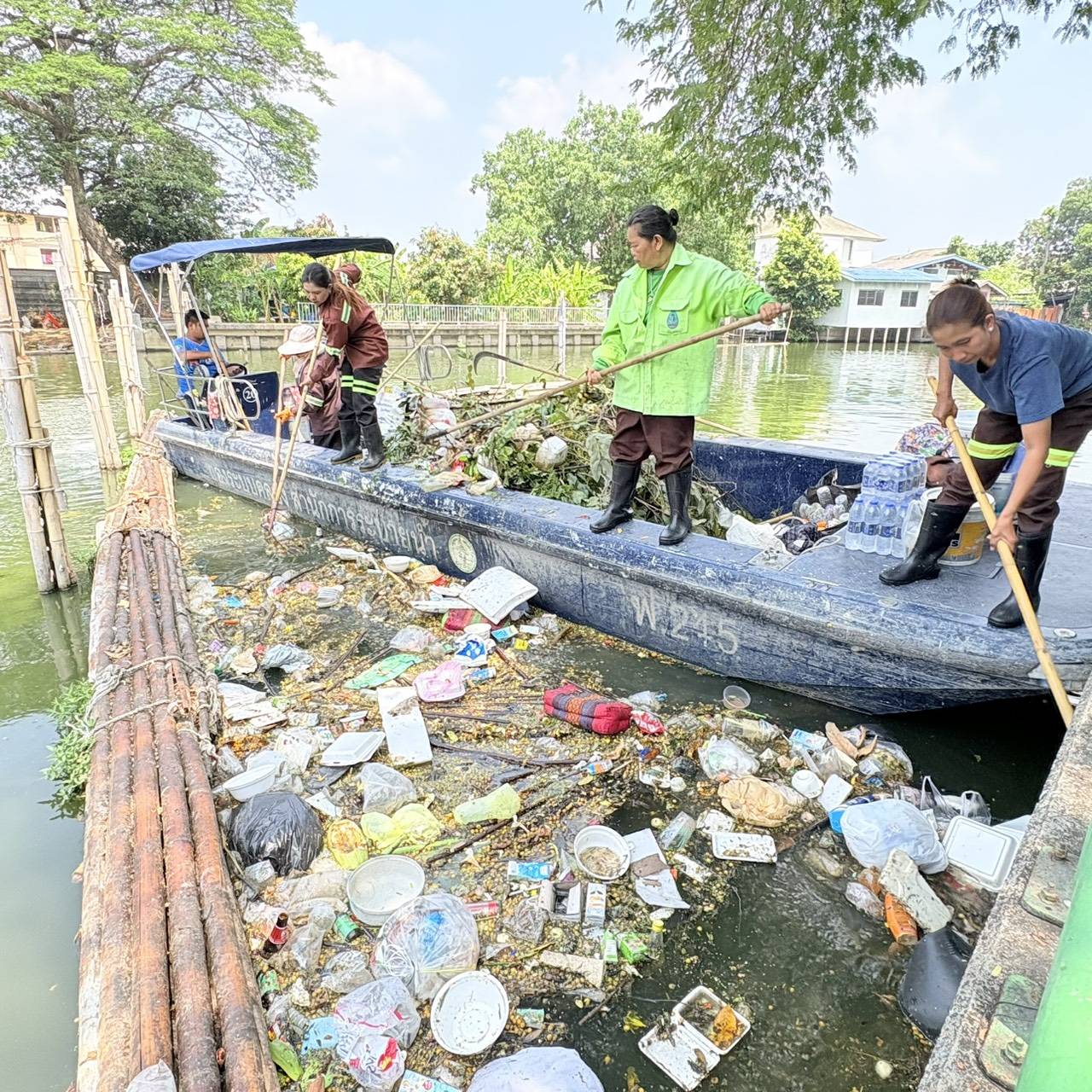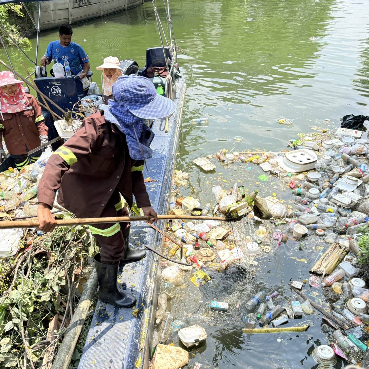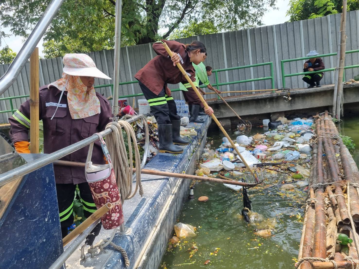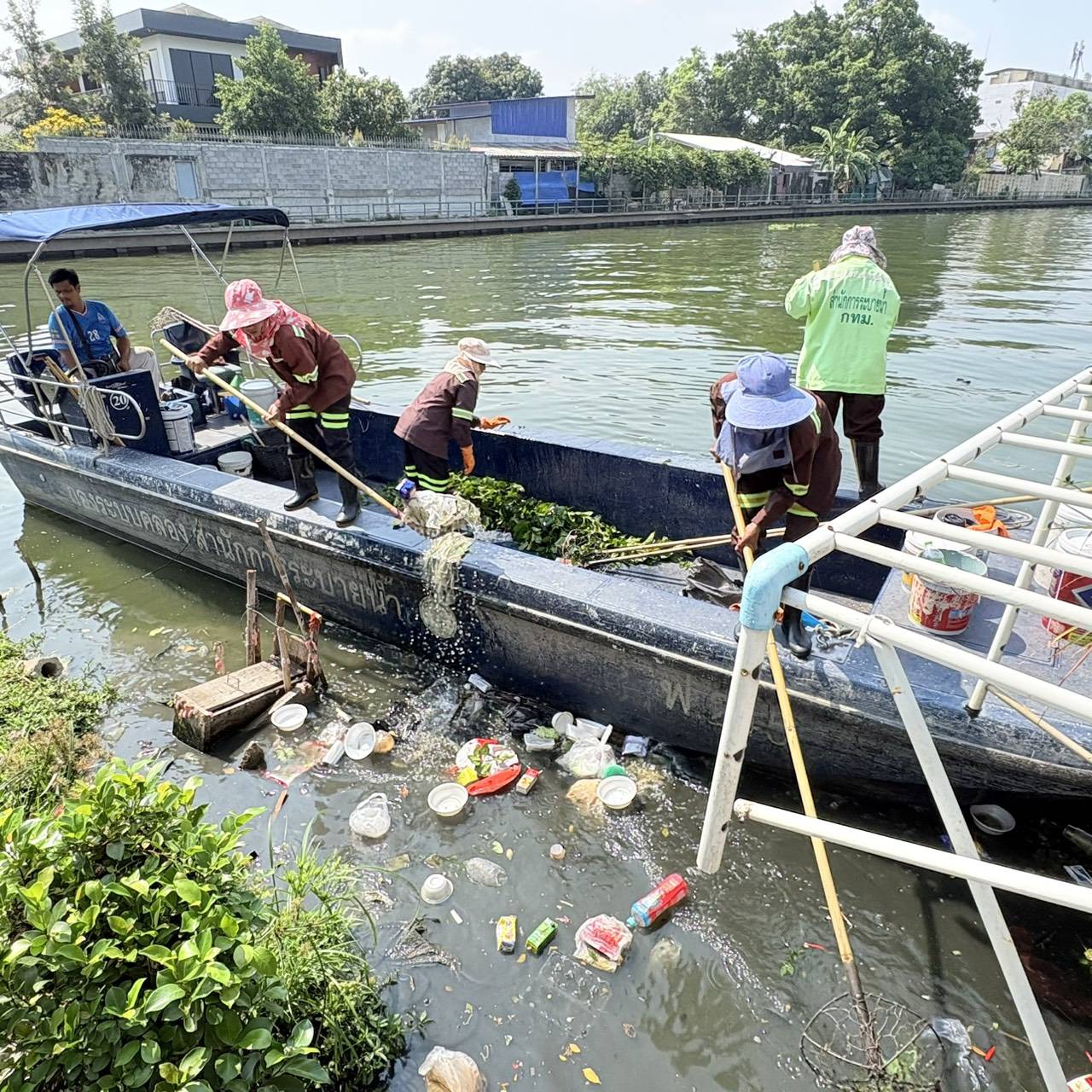 เจ้าหน้าที่ เก็บขยะและวัชพืช คลองลาดพร้าว-คลองบางซื่อ พื้นที่เขตจตุจักร เขตลาดพร้าว เขตห้วยขวางและเขตวังทองหลาง