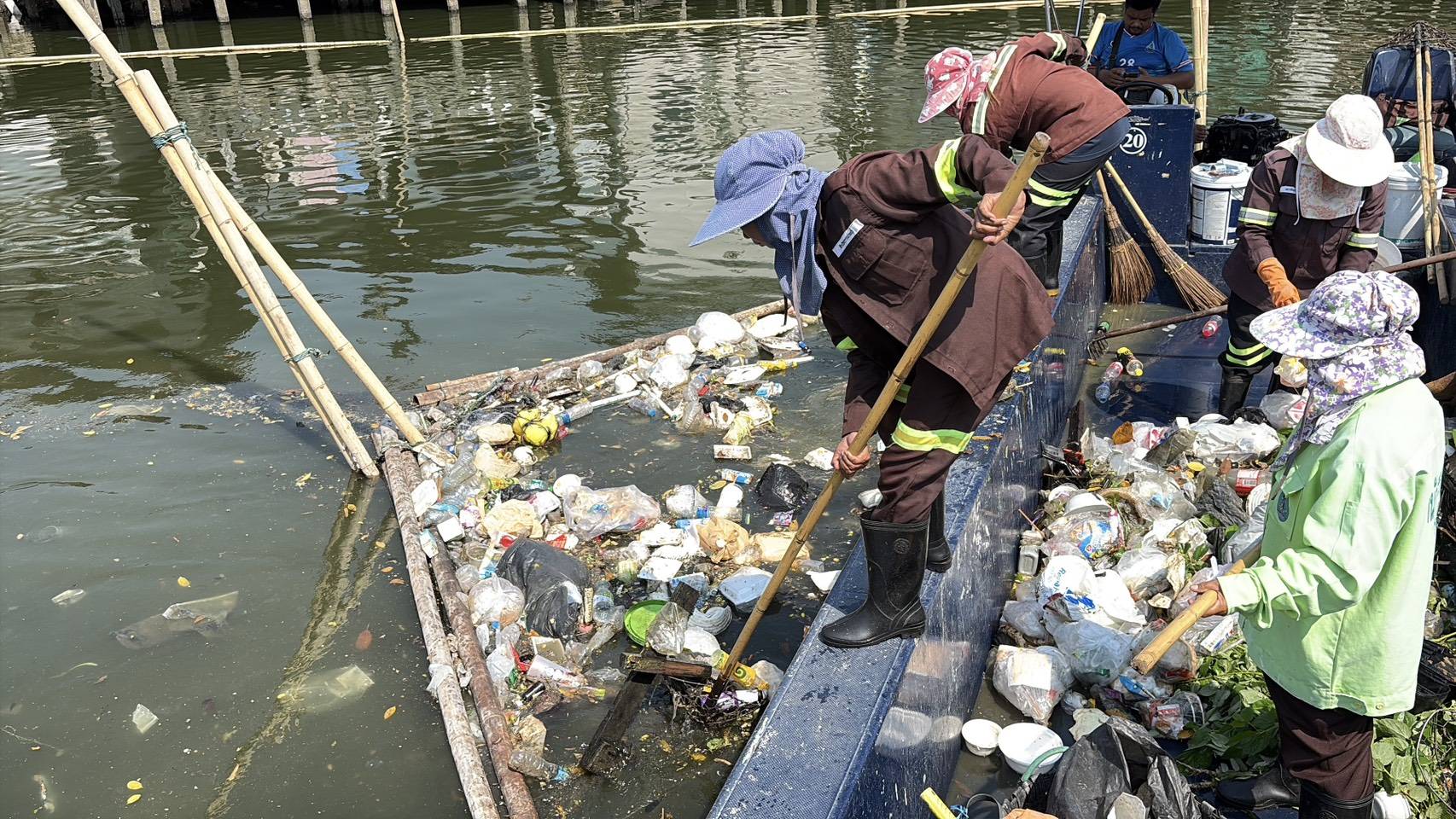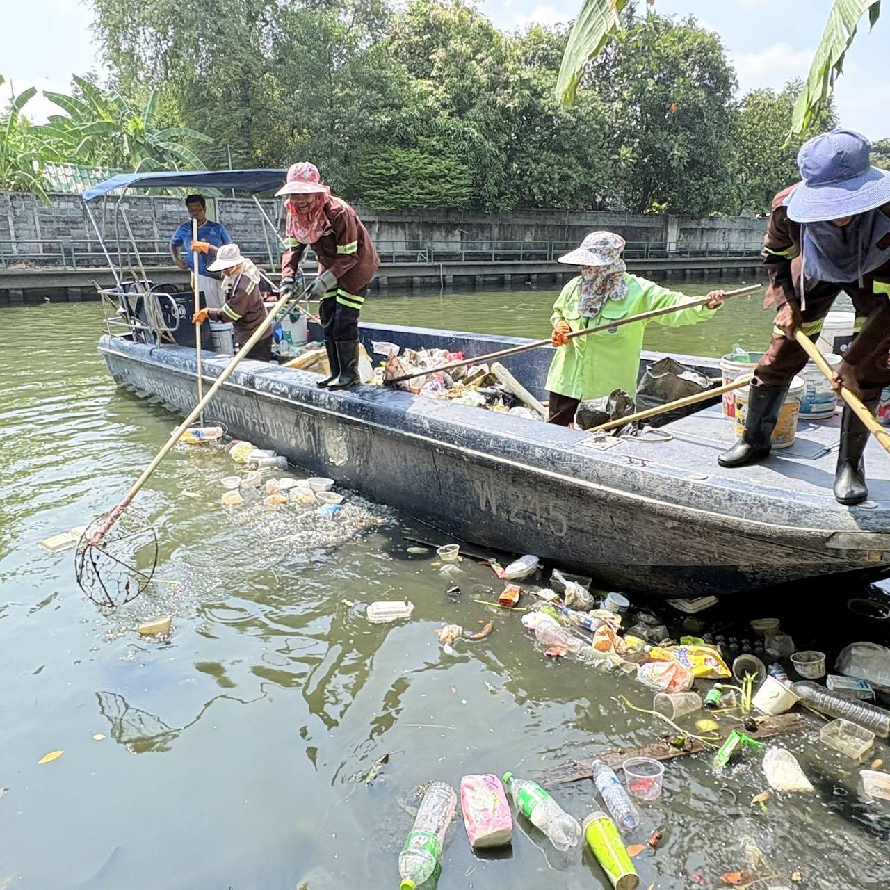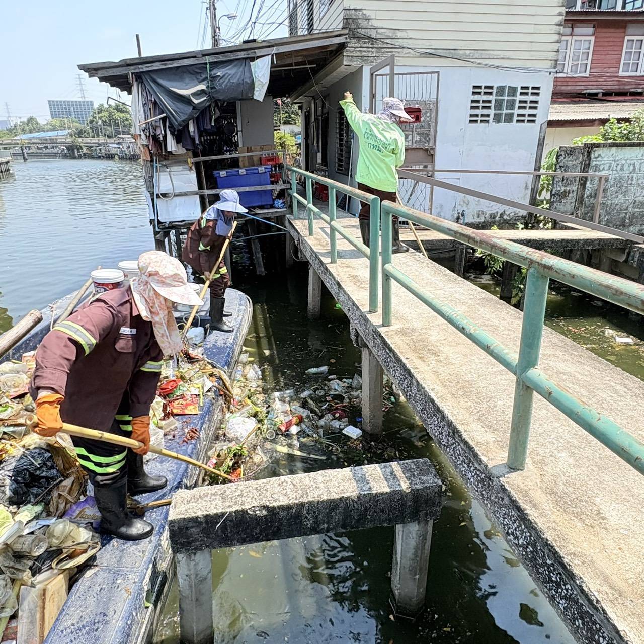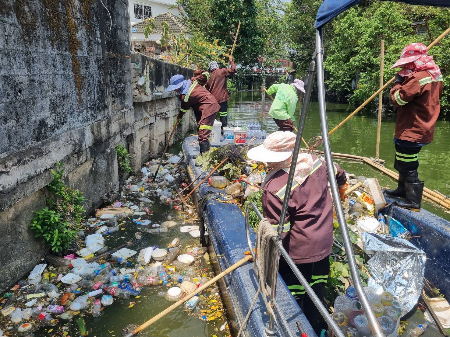 เจ้าหน้าที่ เก็บขยะและวัชพืช คลองลาดพร้าว-คลองบางซื่อ พื้นที่เขตจตุจักร เขตลาดพร้าว เขตห้วยขวางและเขตวังทองหลาง