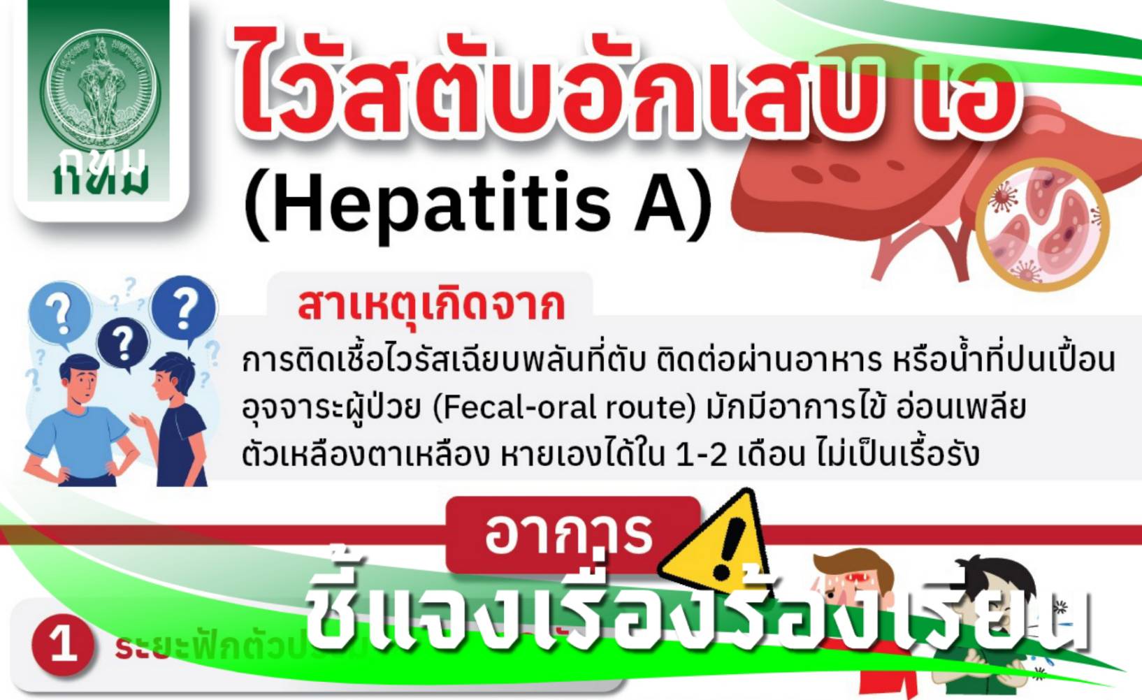 ขณะเดียวกัน สนพ. ได้ดำเนินมาตรการเชิงรุกในการป้องกันโรคควบคู่กับการรณรงค์สร้างความรู้ความเข้าใจที่ถูกต้องแก่ประชาชน โดยเน้นย้ำ “การป้องกันสำคัญกว่าการรักษา” พร้อมให้คำแนะนำหากมีไข้ต่ำ ปวดเมื่อยตามตัว ปัสสาวะสีเข้ม หรือตัวเหลือง ตาเหลือง (ดีซ่าน) ควรรีบพบแพทย์ทันที และไม่ควรซื้อยาชุด หรือยาสมุนไพรมารับประทานเอง เนื่องจากอาจส่งผลกระทบต่อตับที่กำลังอักเสบได้