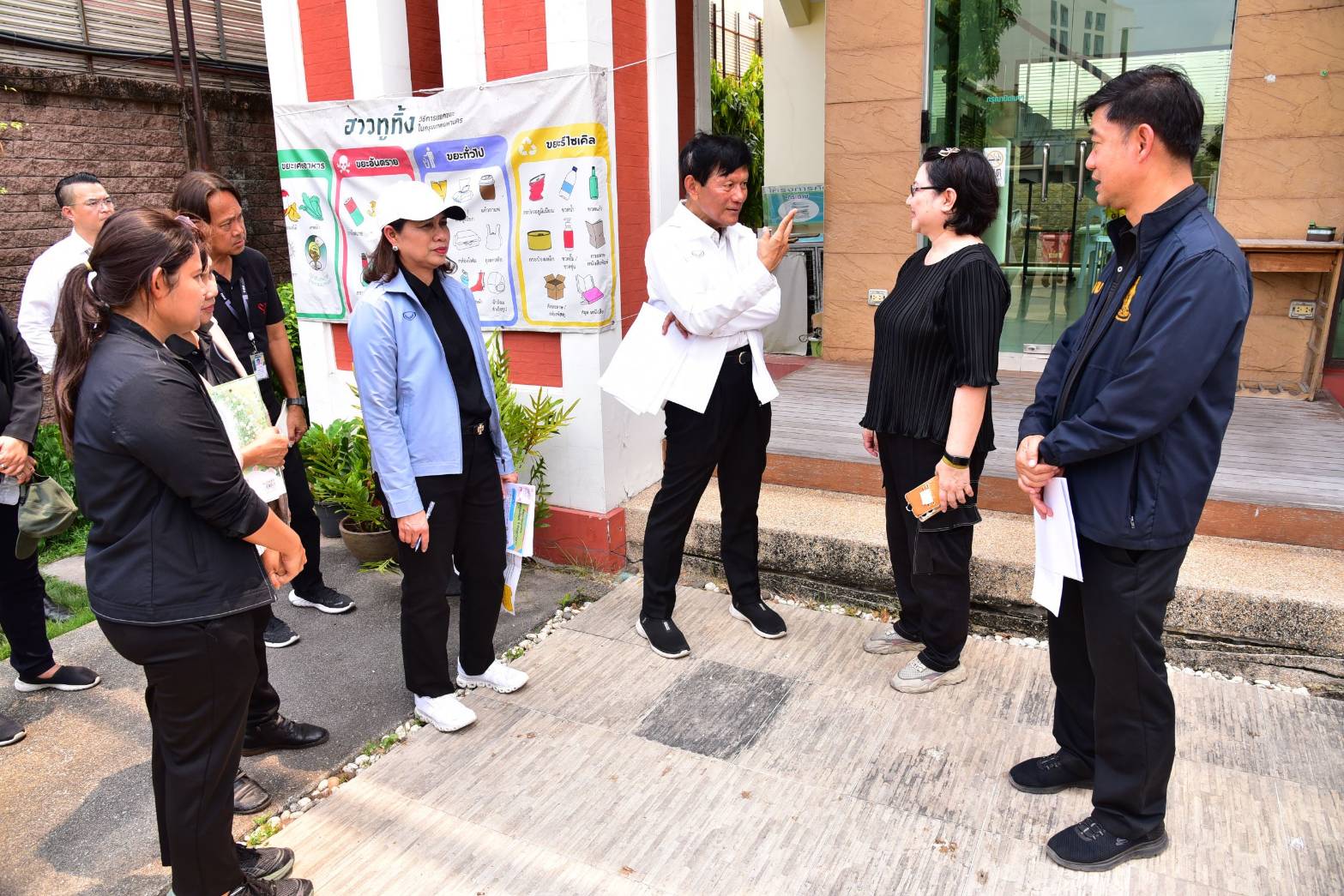 เยี่ยมชมต้นแบบการคัดแยกขยะ หมู่บ้านอรุณพัฒน์ 9 ถนนยานนาวา มีบ้าน 86 หลังคาเรือน เข้าร่วมโครงการคัดแยกขยะ ตั้งแต่ปี 2565 วิธีการคัดแยกขยะ โดยจำแนกตามประเภทของขยะ ดังนี้ 1.ขยะอินทรีย์ นิติบุคคลหมู่บ้านจัดถังรองรับเศษอาหารแจกจ่ายให้แก่ลูกบ้าน โดยลูกบ้านจะนำขยะเศษอาหารจากครัวเรือนมาทิ้ง บริเวณจุดรวมขยะ 2.ขยะรีไซเคิล ลูกบ้านคัดแยกขยะรีไซเคิลจากต้นทาง และนำมาทิ้งบริเวณจุดรวมขยะ หรือรวบรวมส่งให้แม่บ้าน เพื่อนำไปจำหน่ายให้พ่อค้าคนกลาง 3.ขยะทั่วไป ลูกบ้านคัดแยกขยะทั่วไปออกจากต้นทาง และนำมาทิ้งบริเวณจุดรวมขยะ เขตฯ จัดเก็บ 4.ขยะอันตราย ลูกบ้านคัดแยกขยะอันตรายออกจากต้นทาง และนำมาทิ้งบริเวณจุดรวมขยะ เขตฯ จัดเก็บไปกำจัดอย่างถูกวิธี สำหรับปริมาณขยะก่อนคัดแยกและหลังคัดแยก ดังนี้ ขยะทั่วไปก่อนคัดแยก 12,900 กิโลกรัม/เดือน หลังคัดแยก 5,420 กิโลกรัม/เดือน ขยะรีไซเคิลหลังคัดแยก 3,350 กิโลกรัม/เดือน ขยะอินทรีย์หลังคัดแยก 4,130 กิโลกรัม/เดือน ขยะอันตรายหลังคัดแยก 10 กิโลกรัม/เดือน ทั้งนี้ รองผู้ว่าราชการกรุงเทพมหานคร ได้ให้คำแนะนำในการคัดแยกขยะประเภทต่าง ๆ เพื่อให้การจัดเก็บมีประสิทธิภาพมากยิ่งขึ้น ทางหมู่บ้านยังมีพื้นที่ว่างสามารถนำเศษอาหารที่คัดแยกมาใช้ให้เกิดประโยชน์ โดยทำปุ๋ยหมักอินทรีย์ไว้ใช้บำรุงรักษาต้นไม้ในหมู่บ้านได้อีก ซึ่งปริมาณขยะที่คัดแยกจะมีผลต่ออัตราค่าธรรมเนียมในการจัดการมูลฝอยฉบับใหม่ โดยมีผลบังคับใช้เมื่อเดือนตุลาคม 2568 พร้อมทั้งให้เขตฯ ตรวจสอบข้อมูลบ้านเรือนประชาชนที่ลงทะเบียนผ่านแอปฯ BKK WASTE PAY แล้ว แต่ยังส่งข้อมูลไม่ครบถ้วนตามที่กำหนด เพื่อไม่ให้ประชาชนเสียสิทธิในการชำระค่าธรรมเนียมขยะในอัตราใหม่จาก 60 บาท เป็น 20 บาทต่อเดือน