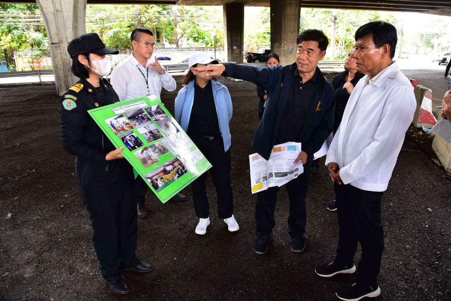ติดตามการพัฒนาพื้นที่บริเวณใต้สะพานข้ามแยกทางรถไฟสถานีแม่น้ำ ถนนพระรามที่ 3 หน้าชุมชนเชื้อเพลิงพัฒนา เพื่อแก้ไขปัญหาการบุกรุกพื้นที่ของคนเร่ร่อน ที่ผ่านมา เขตฯ ร่วมกับหน่วยงานที่เกี่ยวข้อง เข้าดำเนินการพัฒนาพื้นที่ดังกล่าว จัดเก็บขยะ รื้อย้ายเพิงพักอาศัยชั่วคราว ประสานสำนักการโยธาปรับสภาพพื้นที่ให้ราบเรียบ ซึ่งเขตฯ มีแนวคิดในการพัฒนาพื้นที่ดังกล่าว จัดทำเป็นลานกีฬาและลานกิจกรรม ทั้งนี้ รองผู้ว่าราชการกรุงเทพมหานคร มอบหมายให้เขตฯ พิจารณาออกแบบและปรับปรุงพื้นที่ให้เหมาะสมกับการใช้งานของประชาชนในชุมชน โดยคำนึงถึงความปลอดภัย ความเป็นระเบียบเรียบร้อย และการใช้ประโยชน์พื้นที่อย่างยั่งยืน พร้อมทั้งประสานหน่วยงานที่เกี่ยวข้องเพื่อดำเนินการให้เป็นรูปธรรมต่อไป