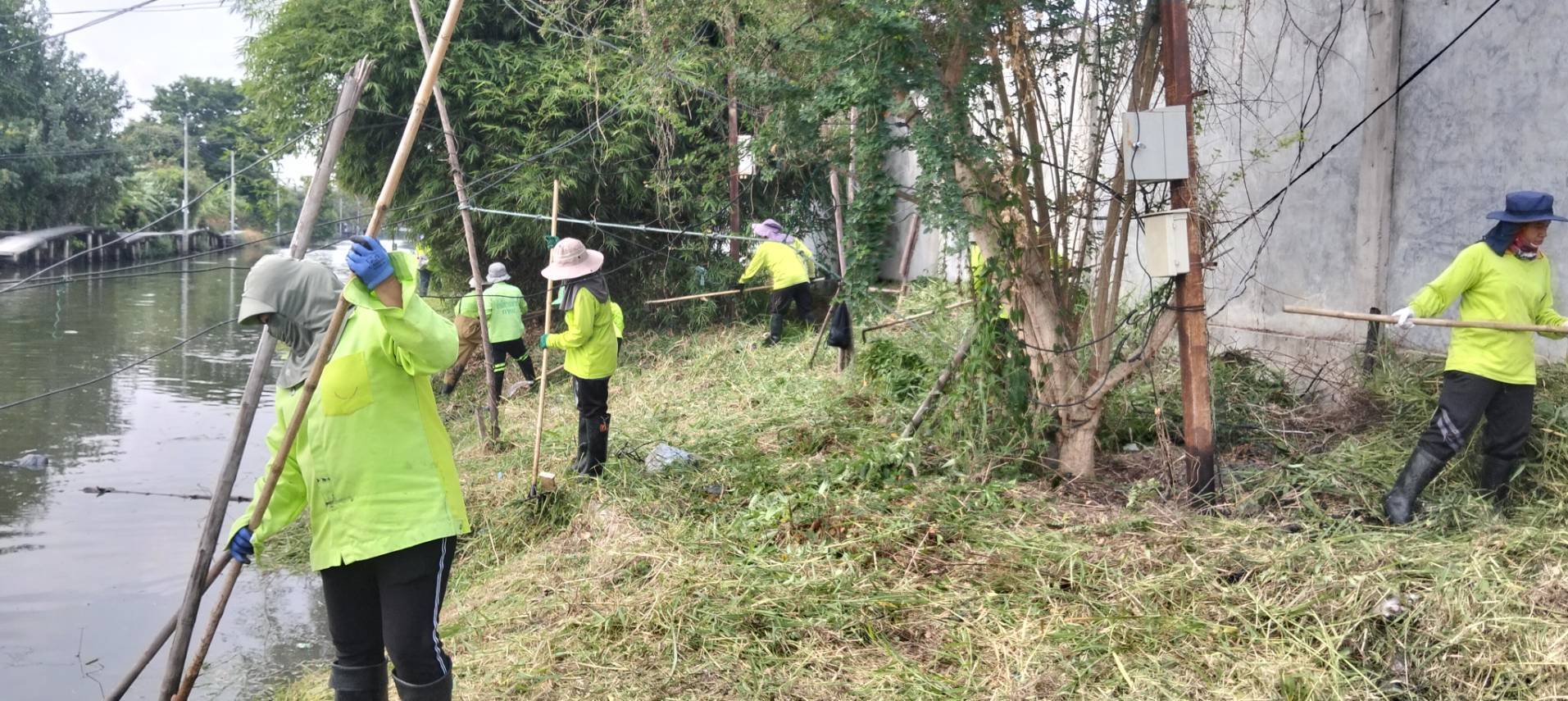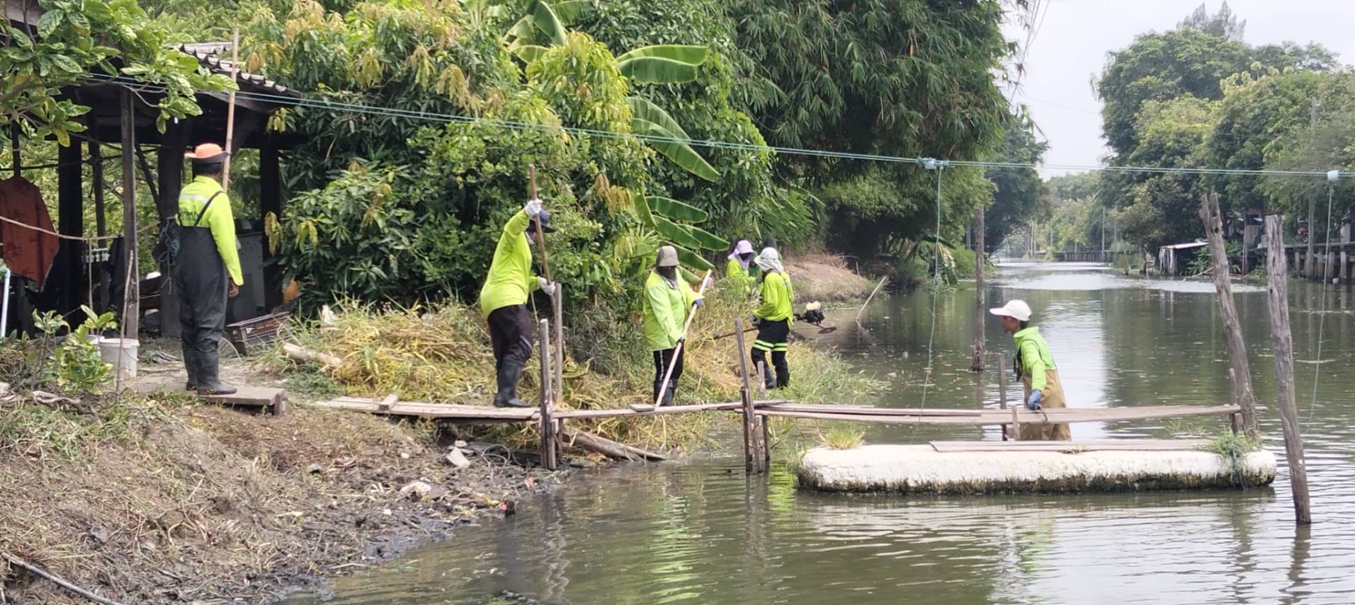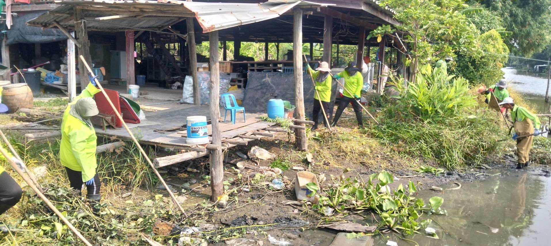 เจ้าหน้าที่ เก็บขยะวัชพืชคลองสองต้นนุ่น ช่วงชุมชนคลองสองเก่า พื้นที่เขตลาดกระบัง