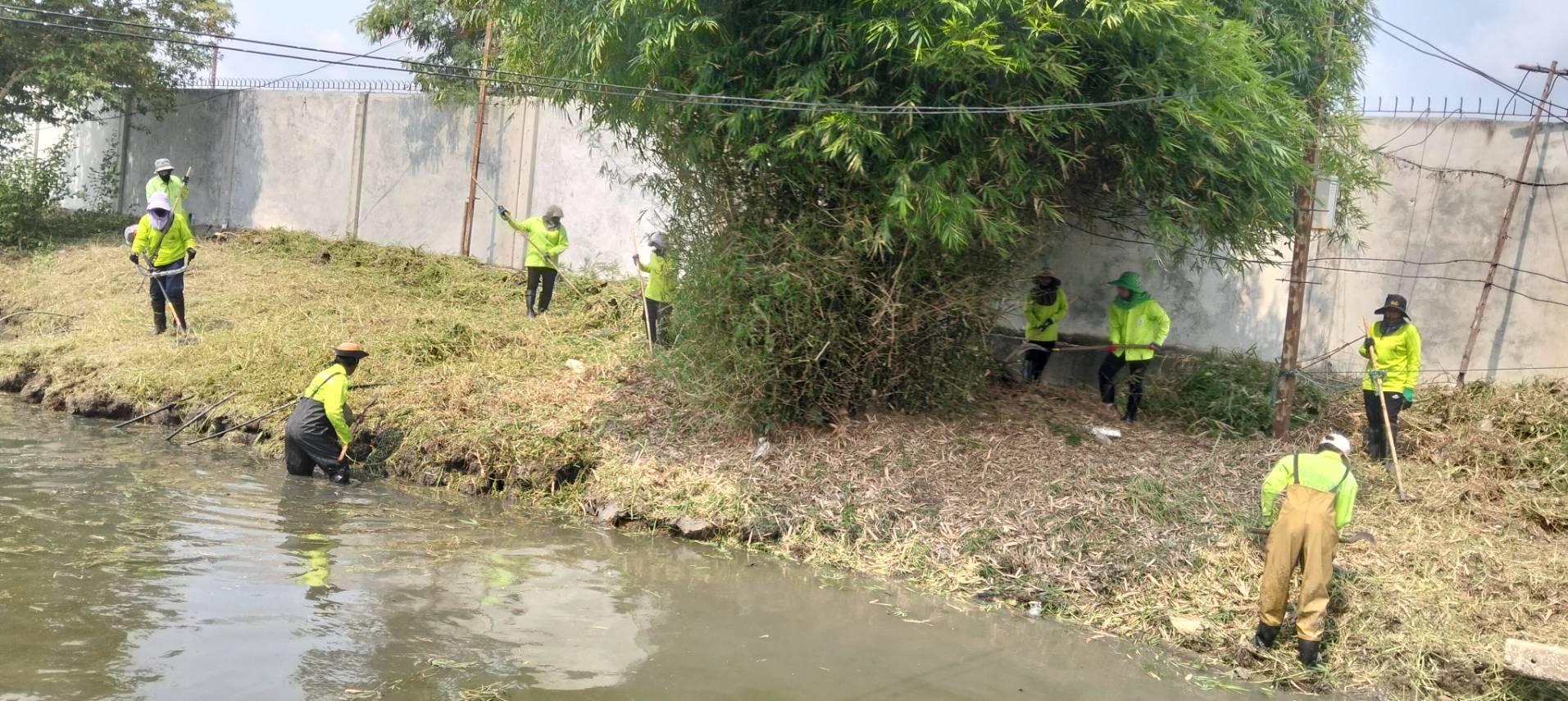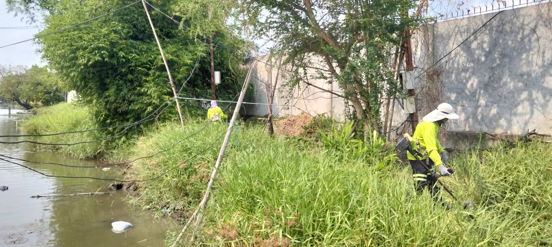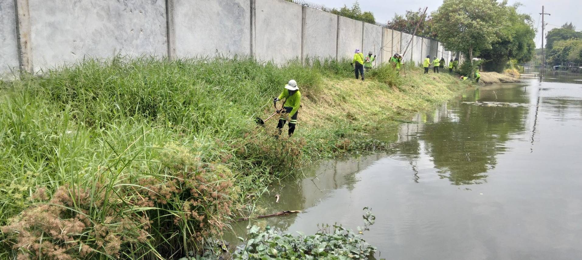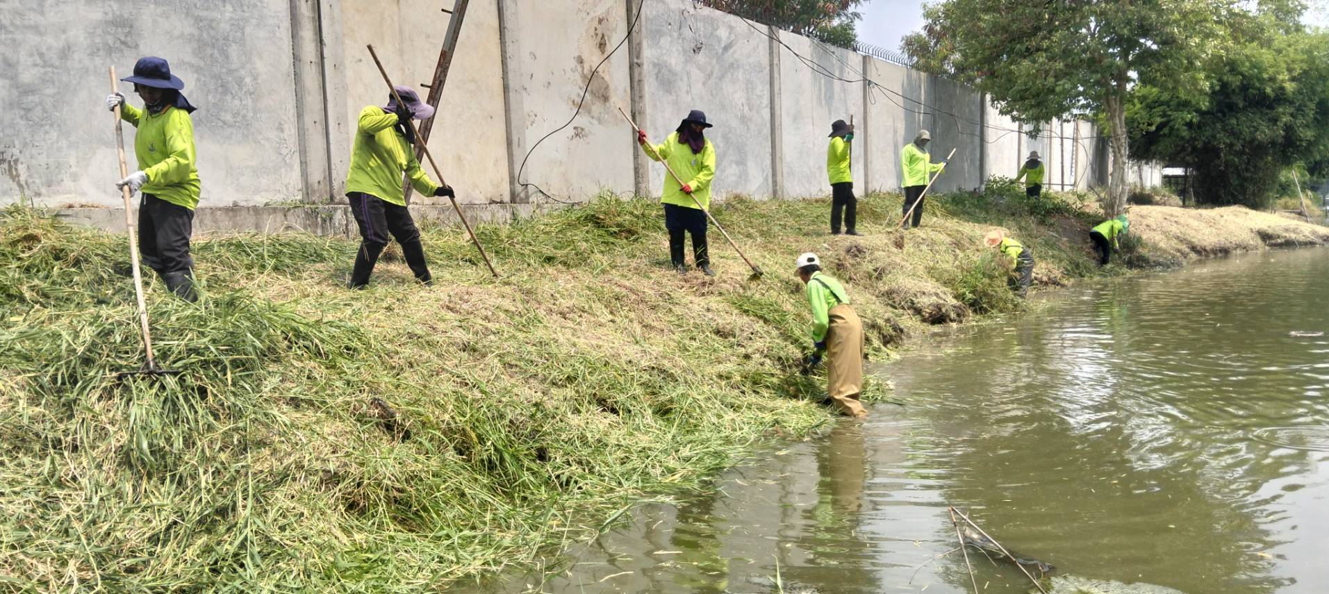 เจ้าหน้าที่ เก็บขยะวัชพืชคลองสองต้นนุ่น ช่วงชุมชนคลองสองเก่า พื้นที่เขตลาดกระบัง