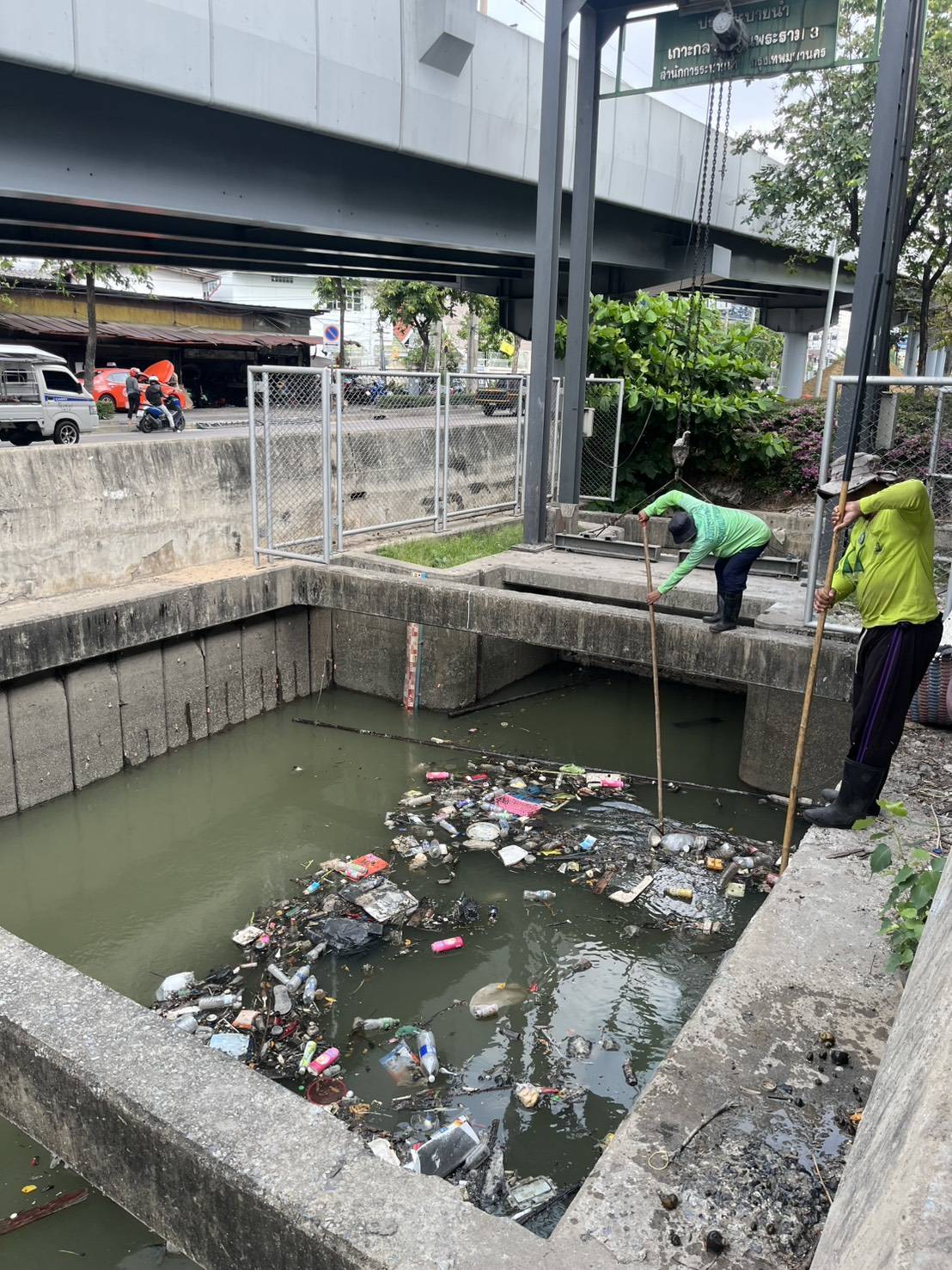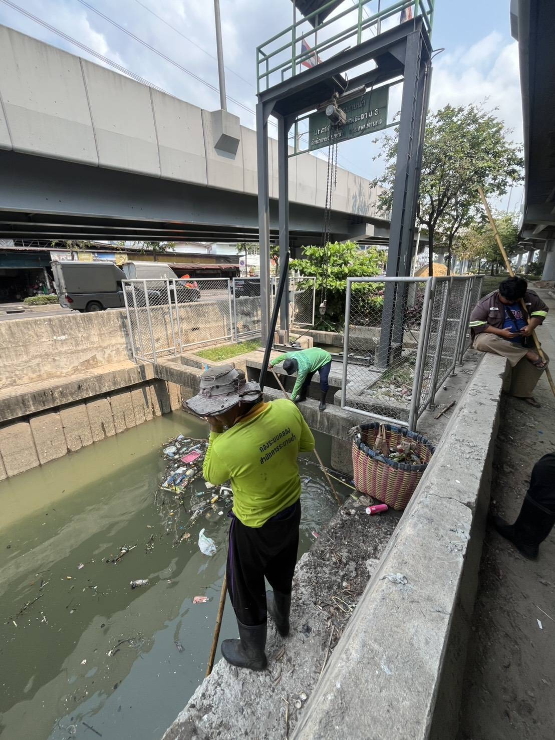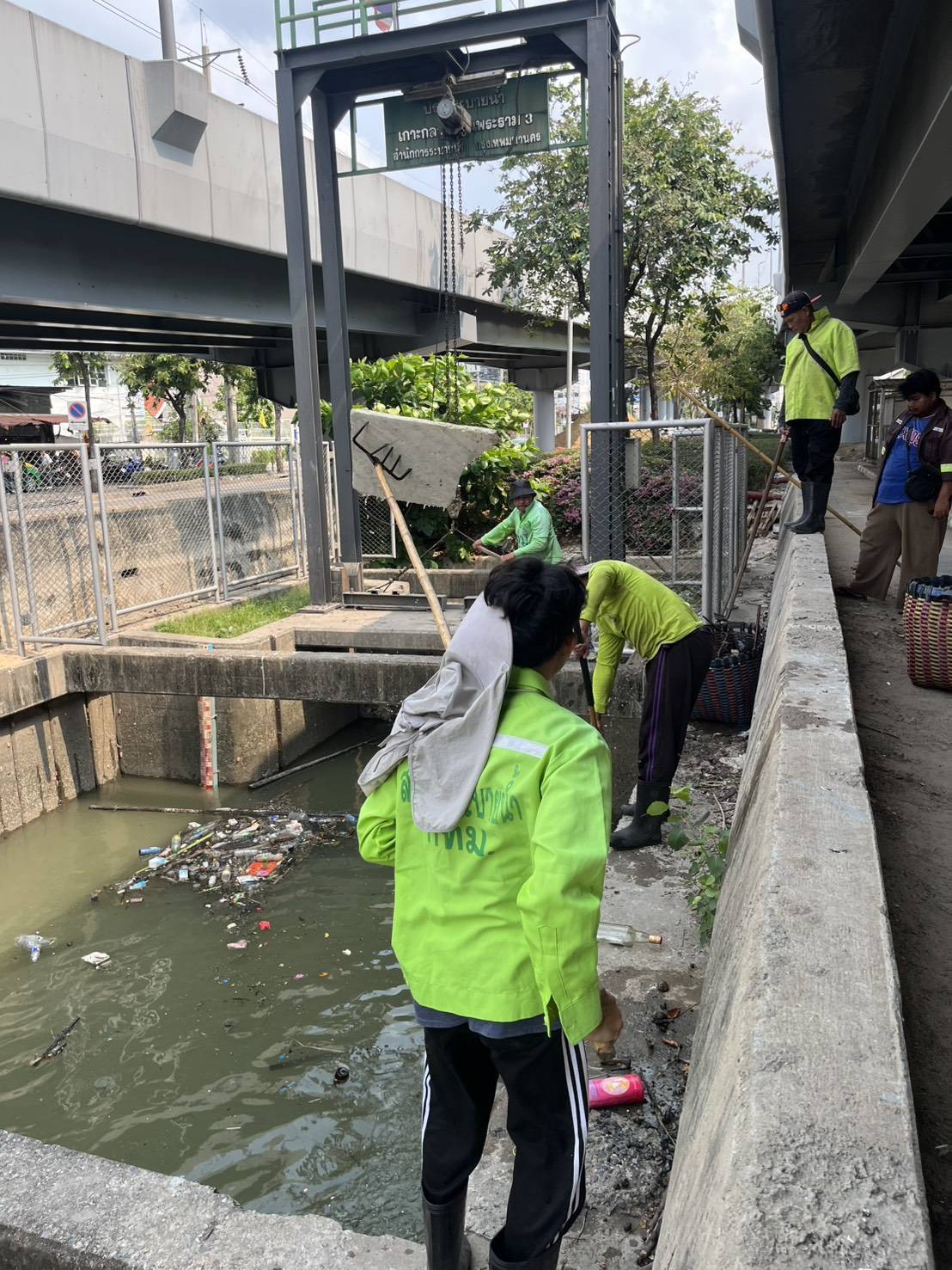 เจ้าหน้าที่ จัดเก็บขยะกำจัดวัชพืชคลองเกาะกลางถนน ช่วงประตูระบายน้ำ ถนนพระราม3 พื้นที่เขตยานนาวา