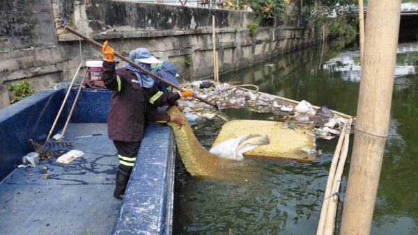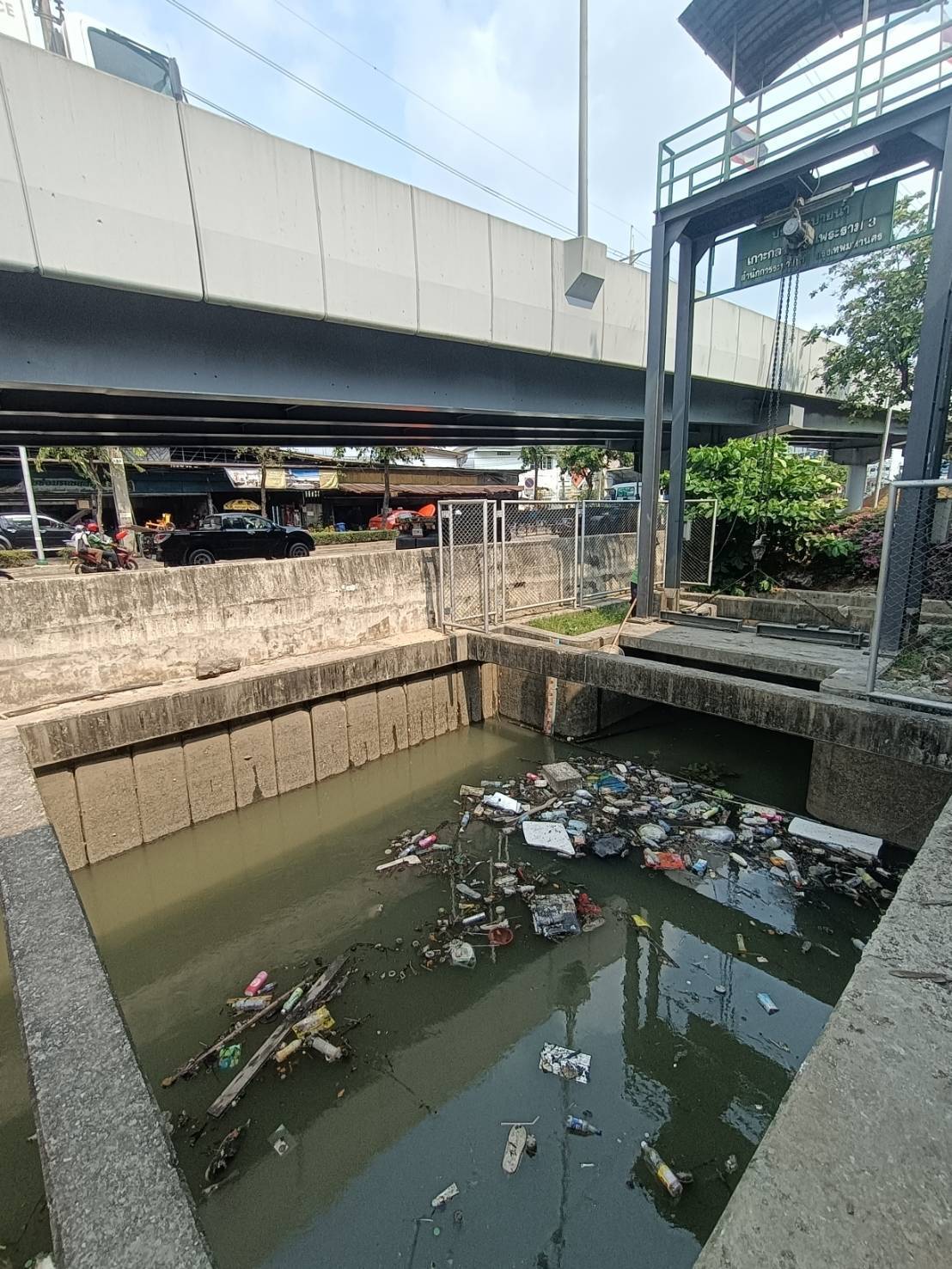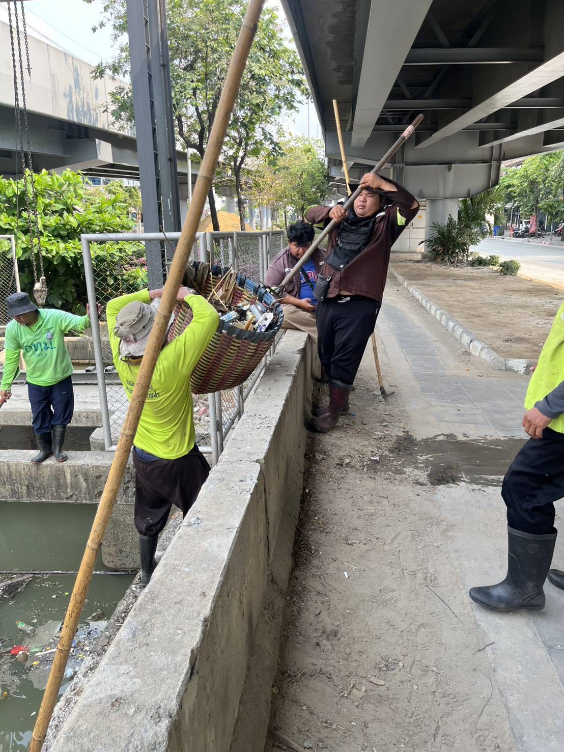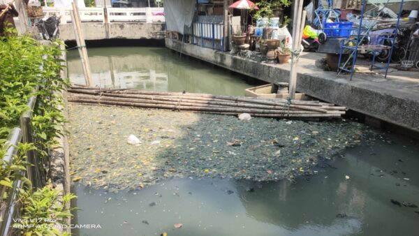 เจ้าหน้าที่ จัดเก็บขยะกำจัดวัชพืชคลองเกาะกลางถนน ช่วงประตูระบายน้ำ ถนนพระราม3 พื้นที่เขตยานนาวา