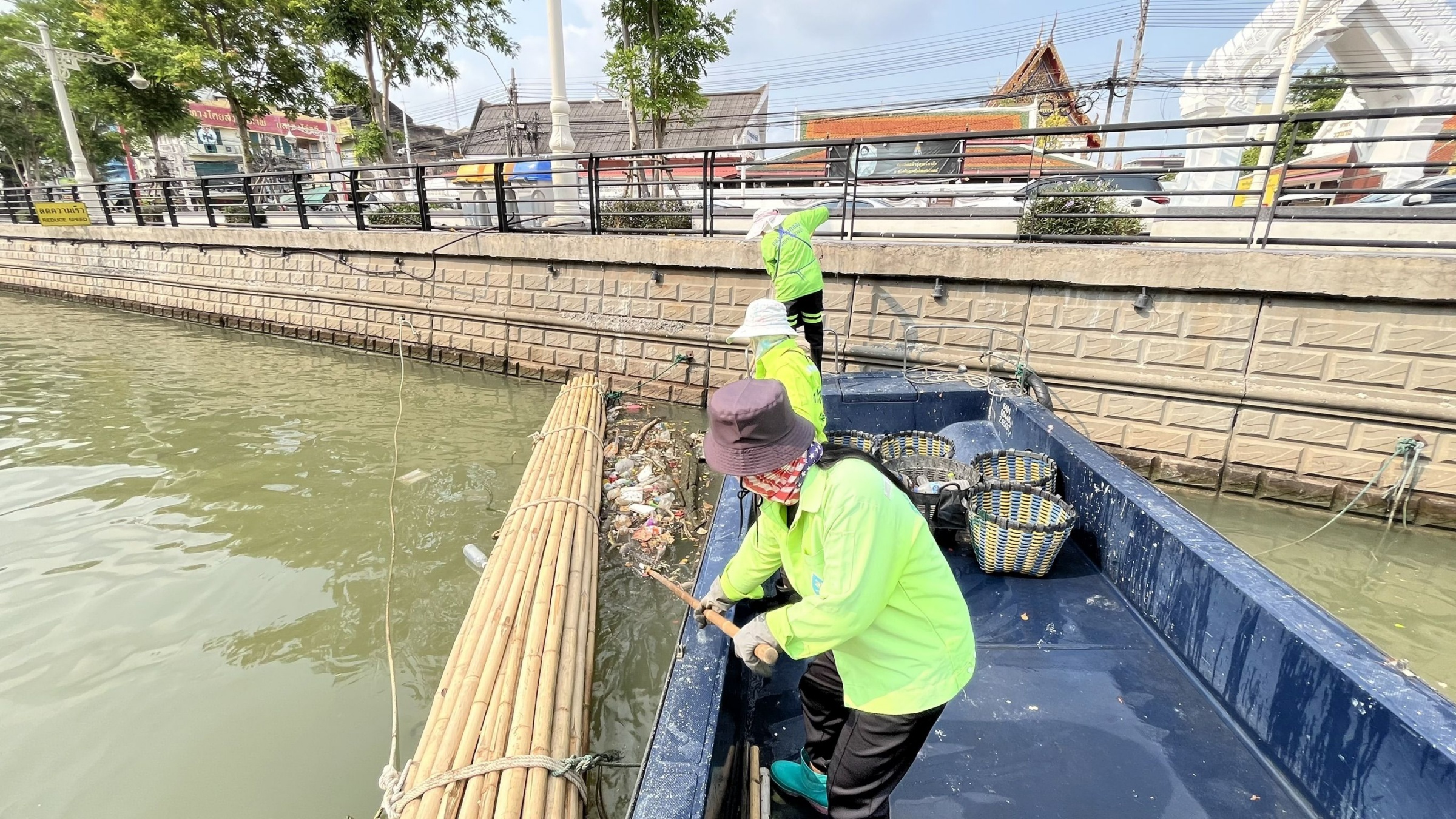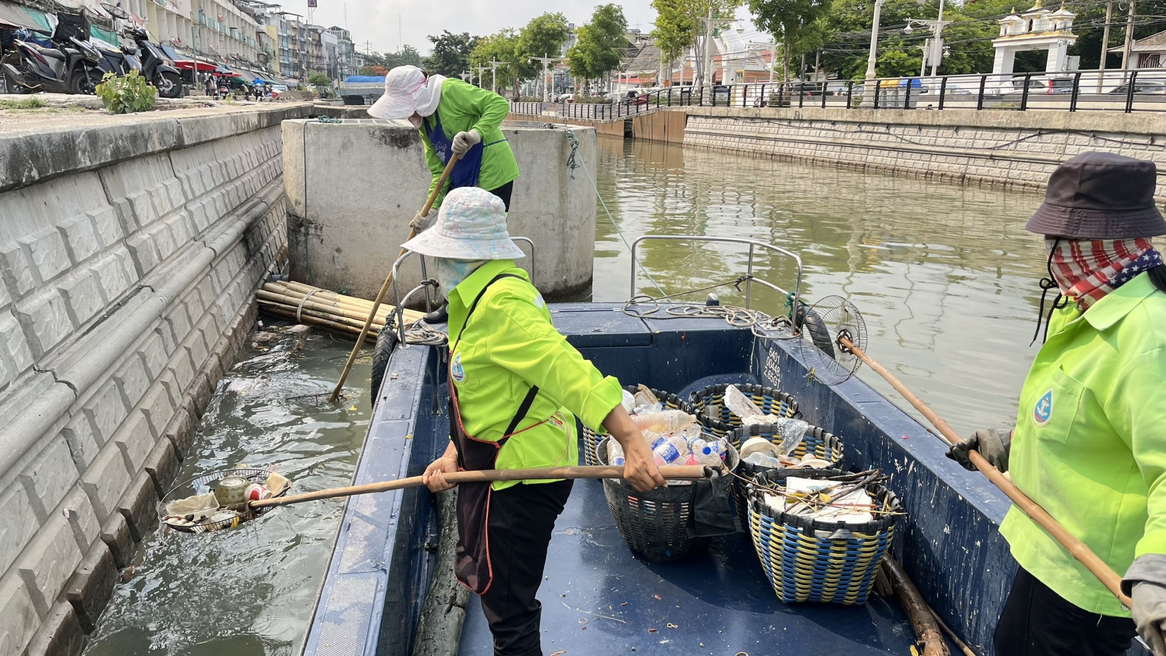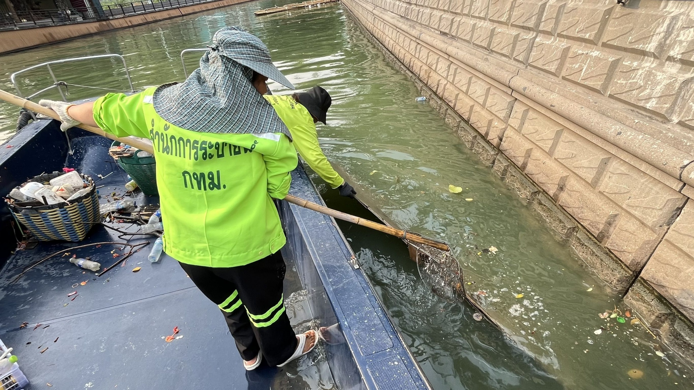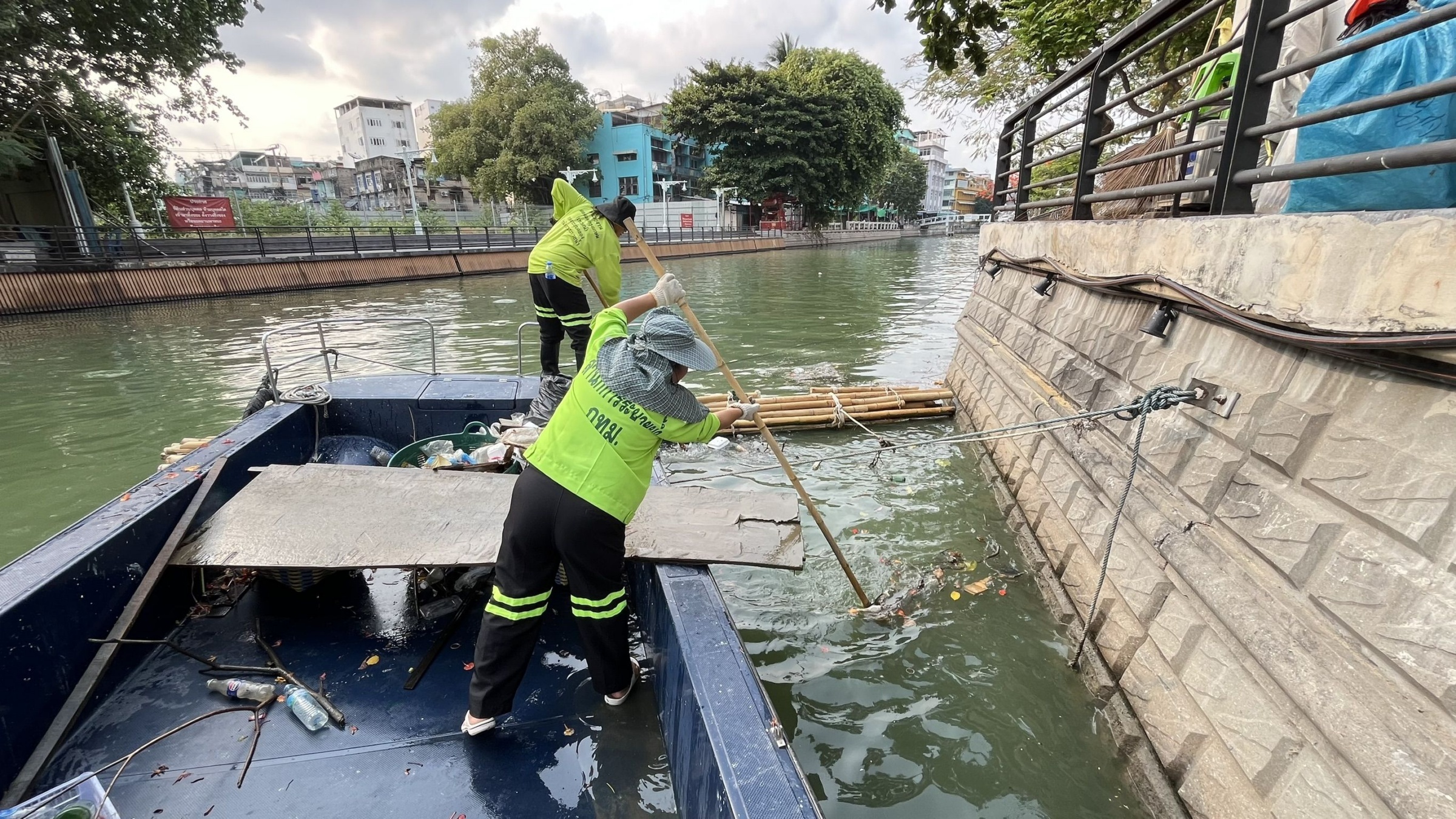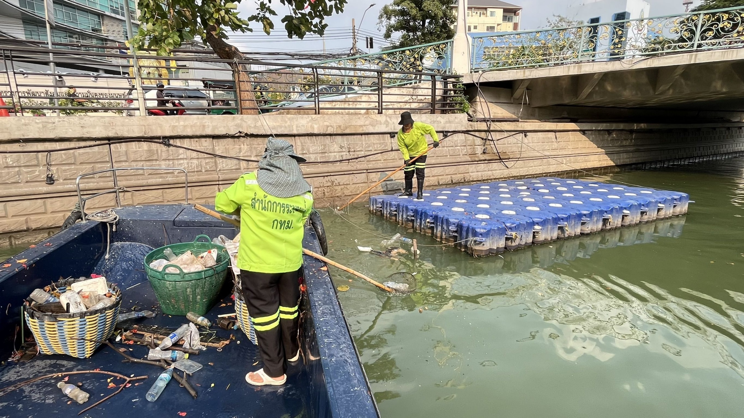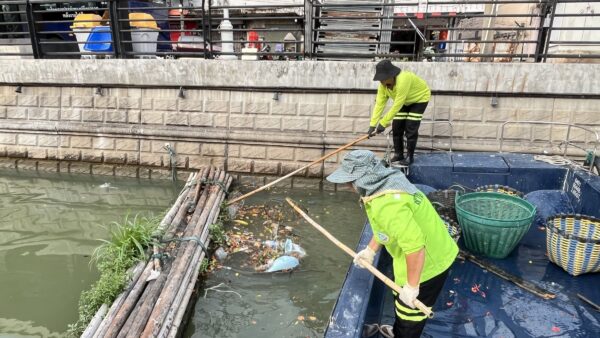 เจ้าหน้าที่ ตักเก็บขยะและวัชพืชคลองผดุงกรุงเกษม จาก ปตร. เทเวศร์ตลอดช่วงสะพานมัฆวานถึงสี่แยกมหานาค พื้นที่เขตดุสิต เขตพระนครเขตป้อมปราบศัตรูพ่าย