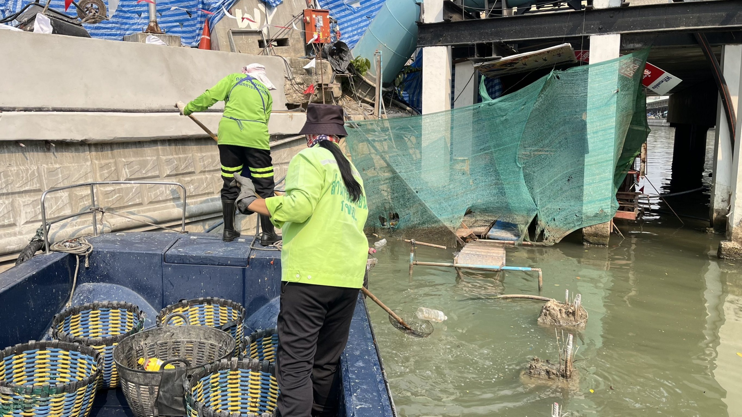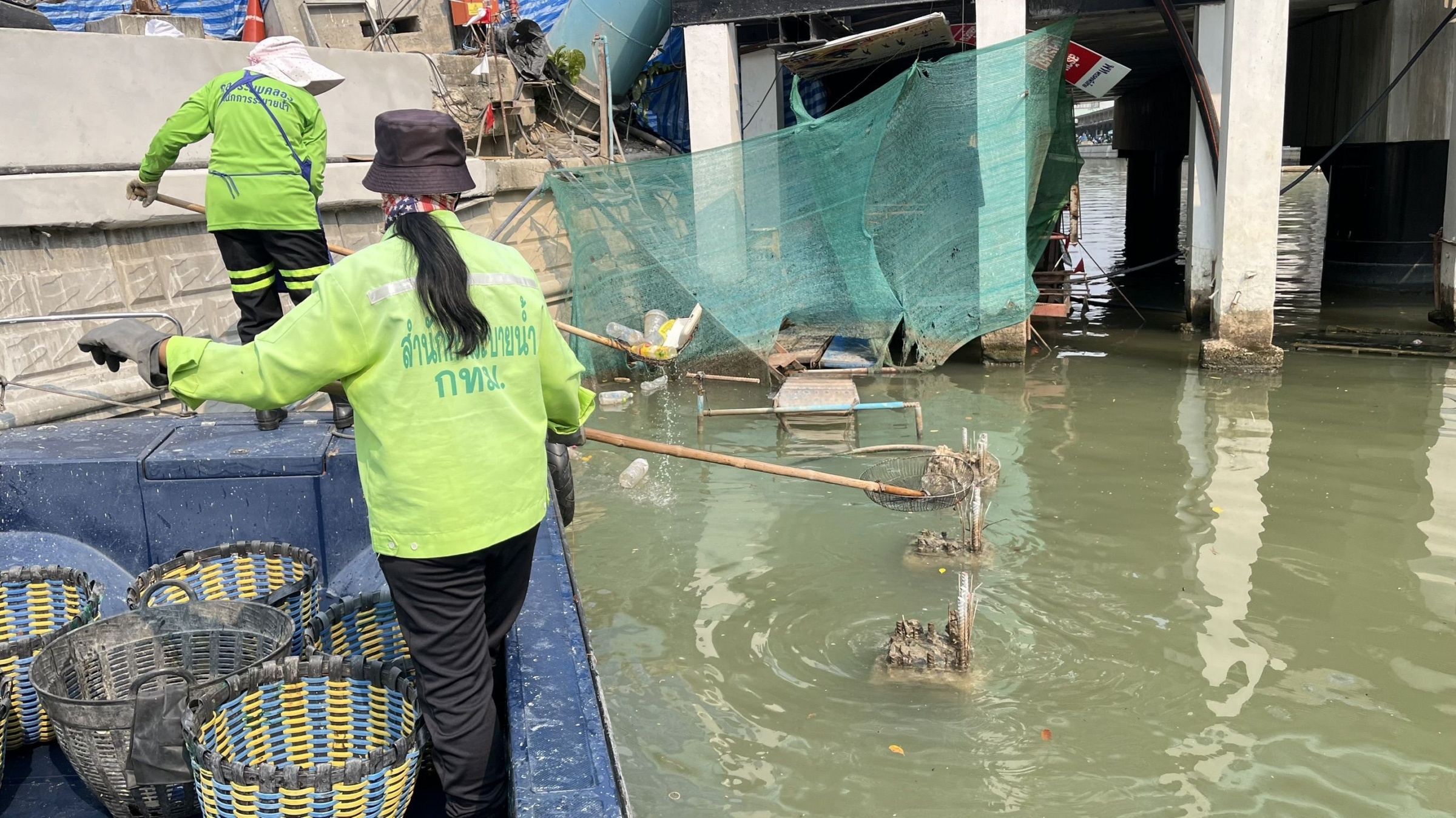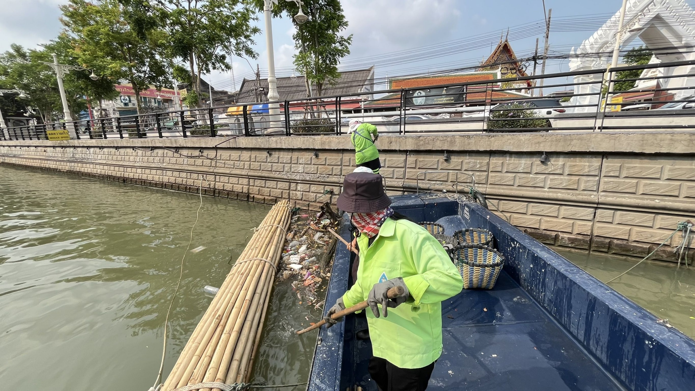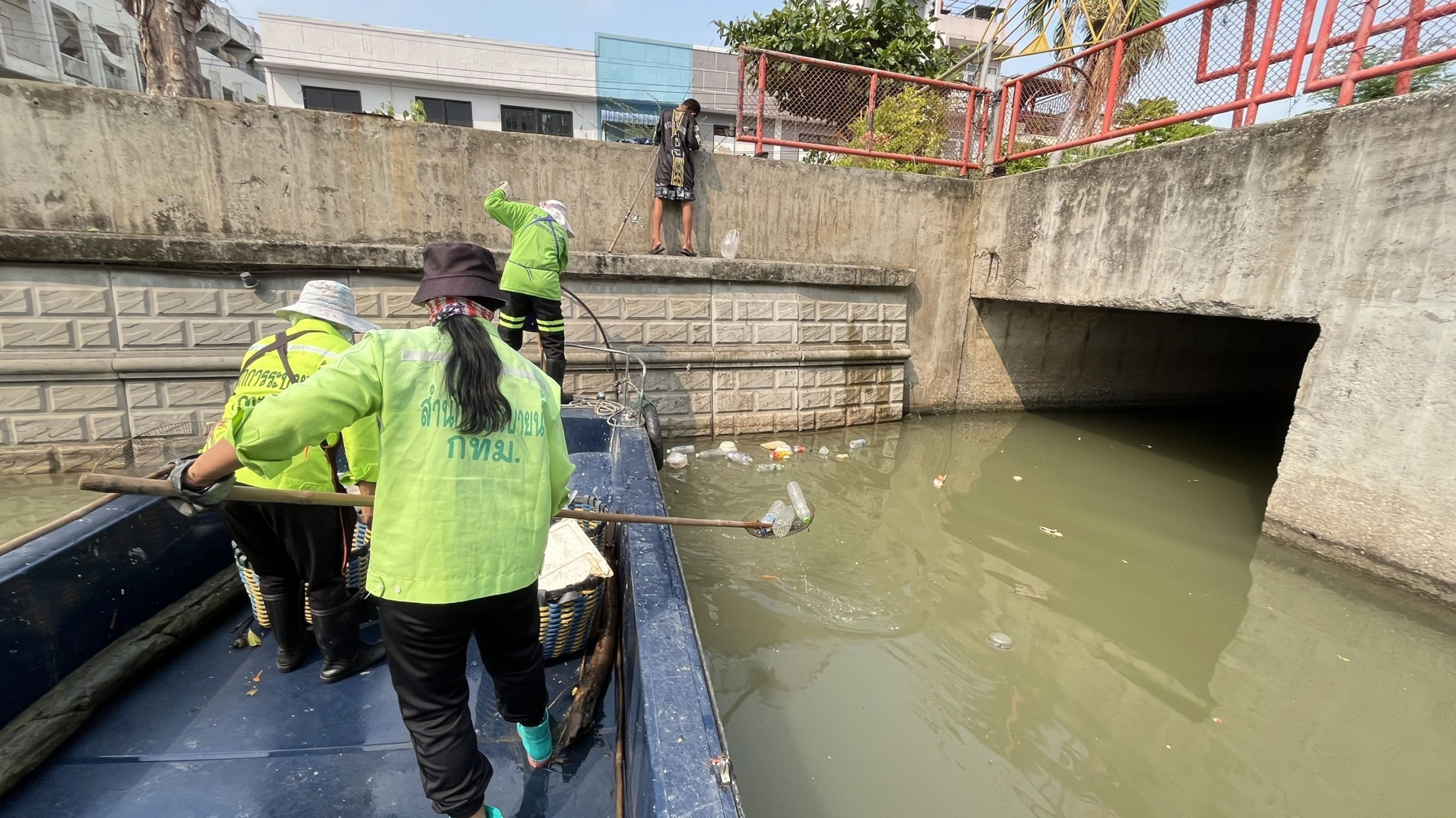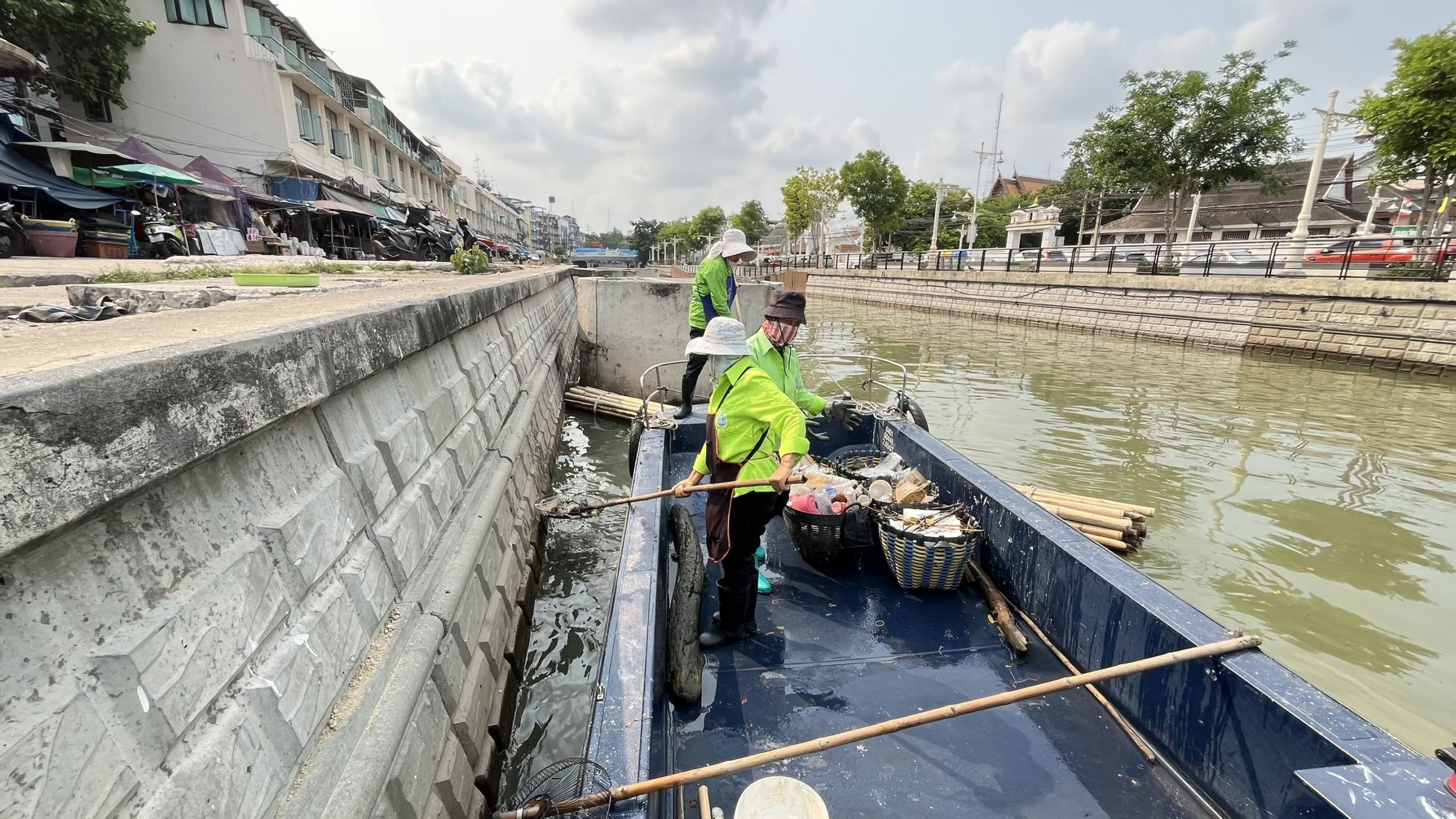 เจ้าหน้าที่ ตักเก็บขยะและวัชพืชคลองผดุงกรุงเกษม จาก ปตร. เทเวศร์ตลอดช่วงสะพานมัฆวานถึงสี่แยกมหานาค พื้นที่เขตดุสิต เขตพระนครเขตป้อมปราบศัตรูพ่าย