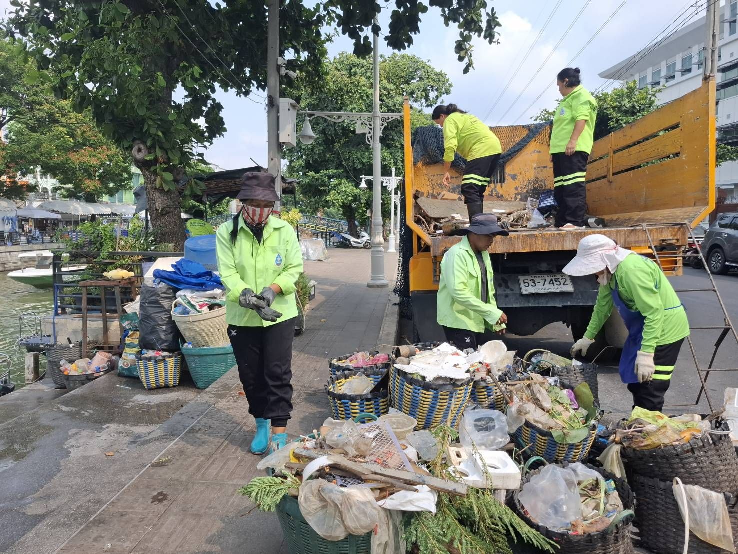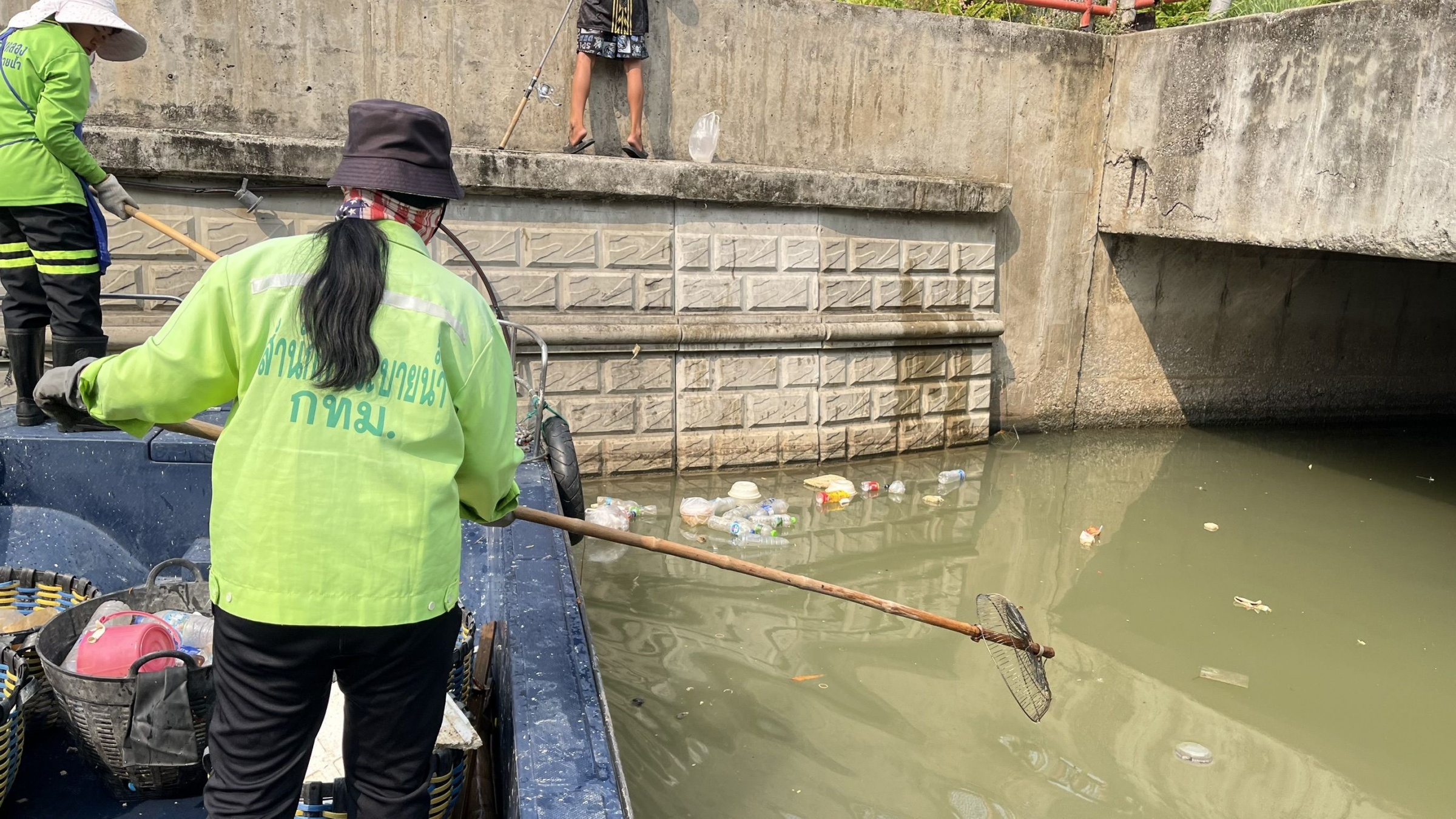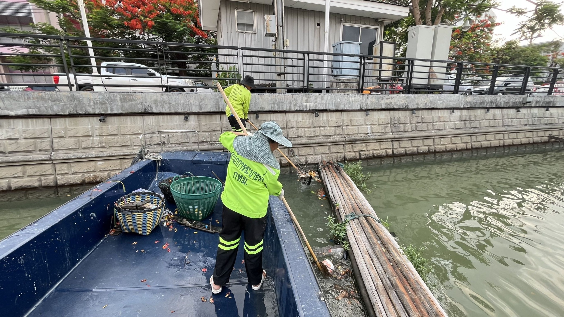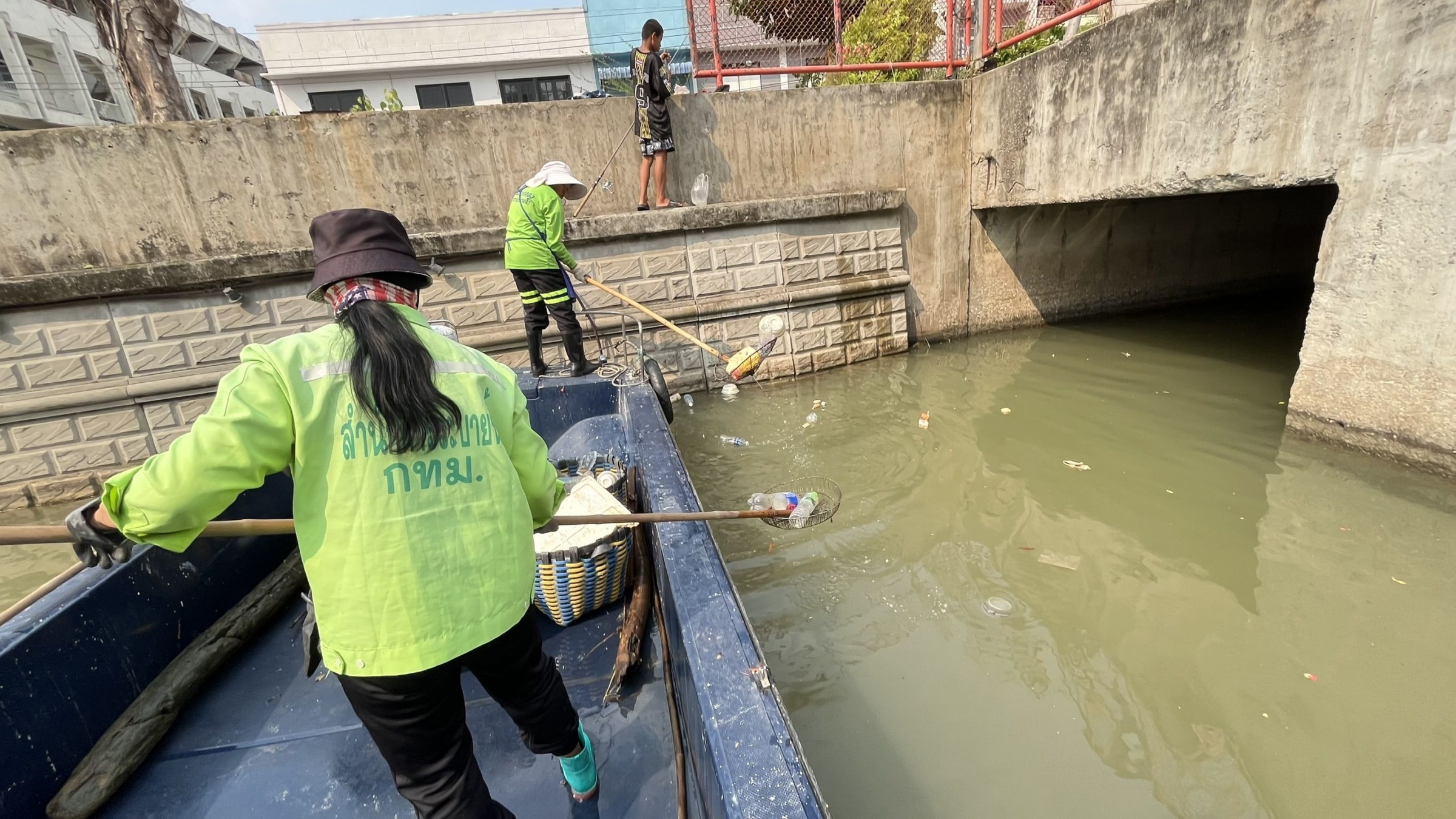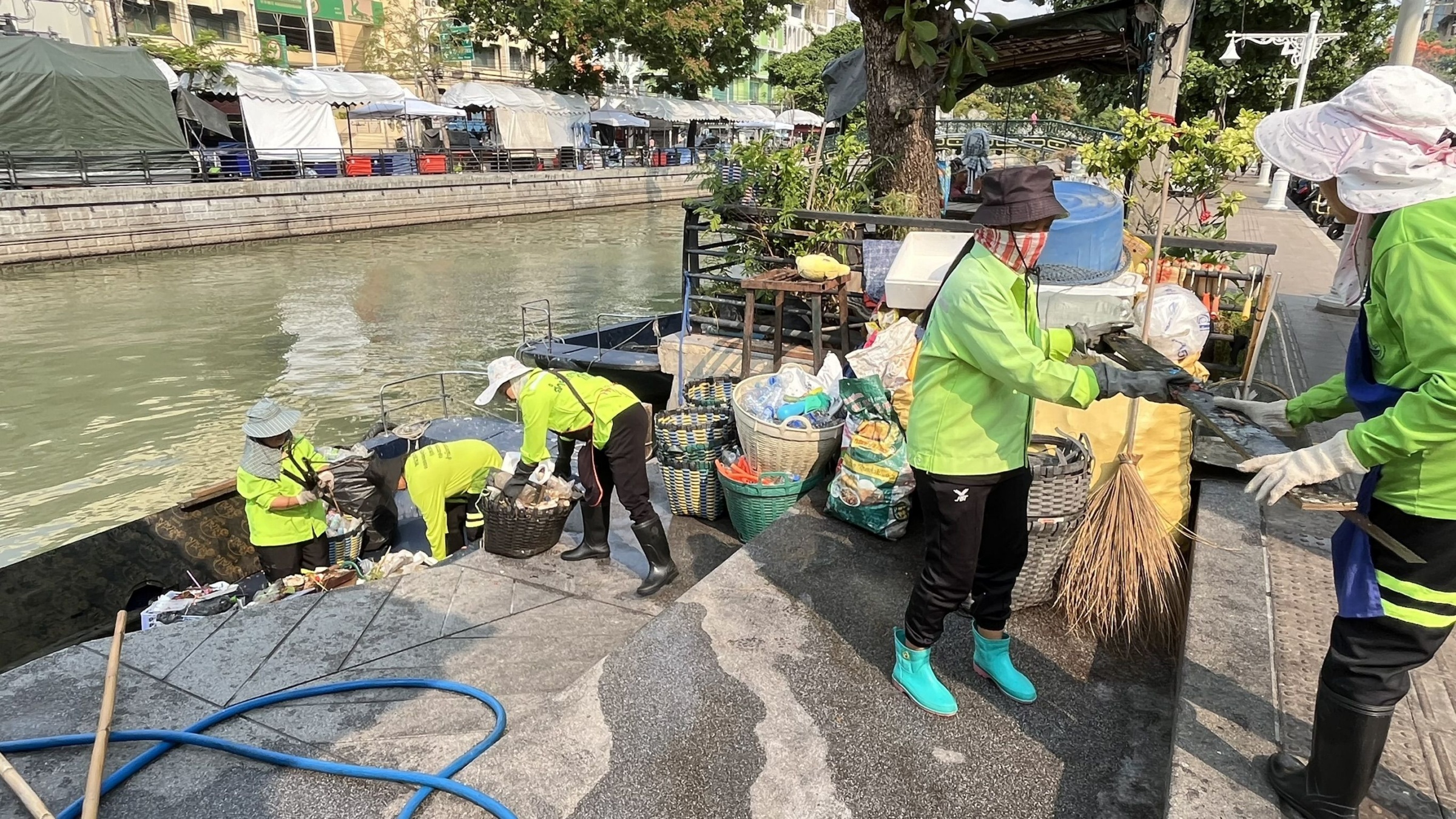 เจ้าหน้าที่ ตักเก็บขยะและวัชพืชคลองผดุงกรุงเกษม จาก ปตร. เทเวศร์ตลอดช่วงสะพานมัฆวานถึงสี่แยกมหานาค พื้นที่เขตดุสิต เขตพระนครเขตป้อมปราบศัตรูพ่าย