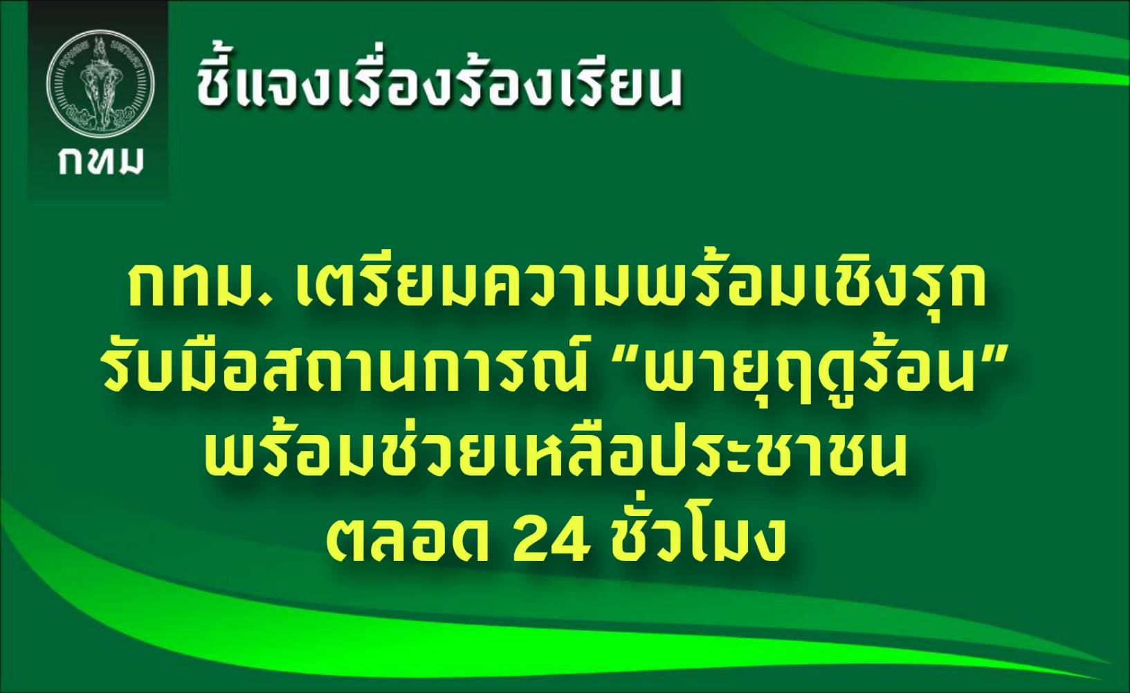 นายประพาส เหลืองศิรินภา ผู้อำนวยการสำนักการโยธา (สนย.) กทม. กล่าวถึงการเตรียมความพร้อมรองรับสถานการณ์พายุฤดูร้อน ที่อาจส่งผลกระทบต่อความปลอดภัยในชีวิตและทรัพย์สินของประชาชนว่า สนย. ได้ประสานความร่วมมือในการตรวจสอบและแนะนำให้เจ้าของอาคารตรวจสอบความมั่นคงแข็งแรงและความปลอดภัยของป้ายโฆษณาขนาดใหญ่ในพื้นที่กรุงเทพฯ รวมทั้งตรวจสอบความปลอดภัยของอาคารและสิ่งก่อสร้างต่าง ๆ เพื่อป้องกันอันตรายที่อาจเกิดขึ้นจากเหตุฝนฟ้าคะนองและลมกระโชกแรง โดยกรณีป้ายโฆษณาขนาดใหญ่ มีกฎหมายควบคุมให้ต้องดำเนินการควบคุมป้ายให้เกิดความมั่นคงแข็งแรงและความปลอดภัยในการใช้ป้าย คือ กฎกระทรวง ว่าด้วยการควบคุมป้ายหรือสิ่งที่สร้างขึ้นสำหรับติด หรือตั้งป้ายตามกฎหมายว่าด้วยการควบคุมอาคาร พ.ศ. 2558 ซึ่งได้กำหนดการรับน้ำหนัก ความต้านทาน และความคงทนให้เป็นไปตามมาตรฐานของกรมโยธาธิการและผังเมือง หรือมาตรฐานที่คณะกรรมการควบคุมอาคารรับรอง ทั้งนี้ ป้ายที่ได้ดำเนินการก่อสร้างแล้วเสร็จเกิน 1 ปี เจ้าของป้ายต้องจัดให้มีผู้ตรวจสอบ ตามมาตรา 32 ทวิ แห่งพระราชบัญญัติควบคุมอาคาร พ.ศ. 2522 ประกอบกฎกระทรวงกำหนดคุณสมบัติเฉพาะของผู้ตรวจสอบ หลักเกณฑ์การขอขึ้นทะเบียนและการเพิกถอนการขึ้นทะเบียนเป็นผู้ตรวจสอบและหลักเกณฑ์การตรวจสอบอาคาร พ.ศ. 2548 ขณะเดียวกัน สนย. ได้ร่วมกับสำนักงานเขตดำเนินการกำชับเจ้าของป้ายขนาดใหญ่ ประกอบด้วย (1) แจ้งเจ้าของป้ายตรวจสอบการใช้งานและความมั่นคงแข็งแรงของป้าย (2) ป้ายถูกกฎหมายแต่มีสภาพเก่า ชำรุด อันอาจก่อให้เกิดภยันตราย ต้องมีคำสั่งให้เจ้าของป้ายดำเนินการแก้ไข หรือให้รื้อถอน (3) ดำเนินคดีกับเจ้าของป้ายที่ฝ่าฝืนกฎหมายอย่างเคร่งครัด และเร่งรัดการรื้อถอน (4) ประชาสัมพันธ์ให้ประชาชนทราบในขณะเกิดพายุฝนฟ้าคะนอง ให้อยู่ห่างจากป้ายโฆษณาที่อาจล้ม หรือหักโค่นได้ (5) จัดเตรียมเครื่องมือกล เพื่อป้องกันและบรรเทาสาธารณภัยที่เกิดจากป้าย