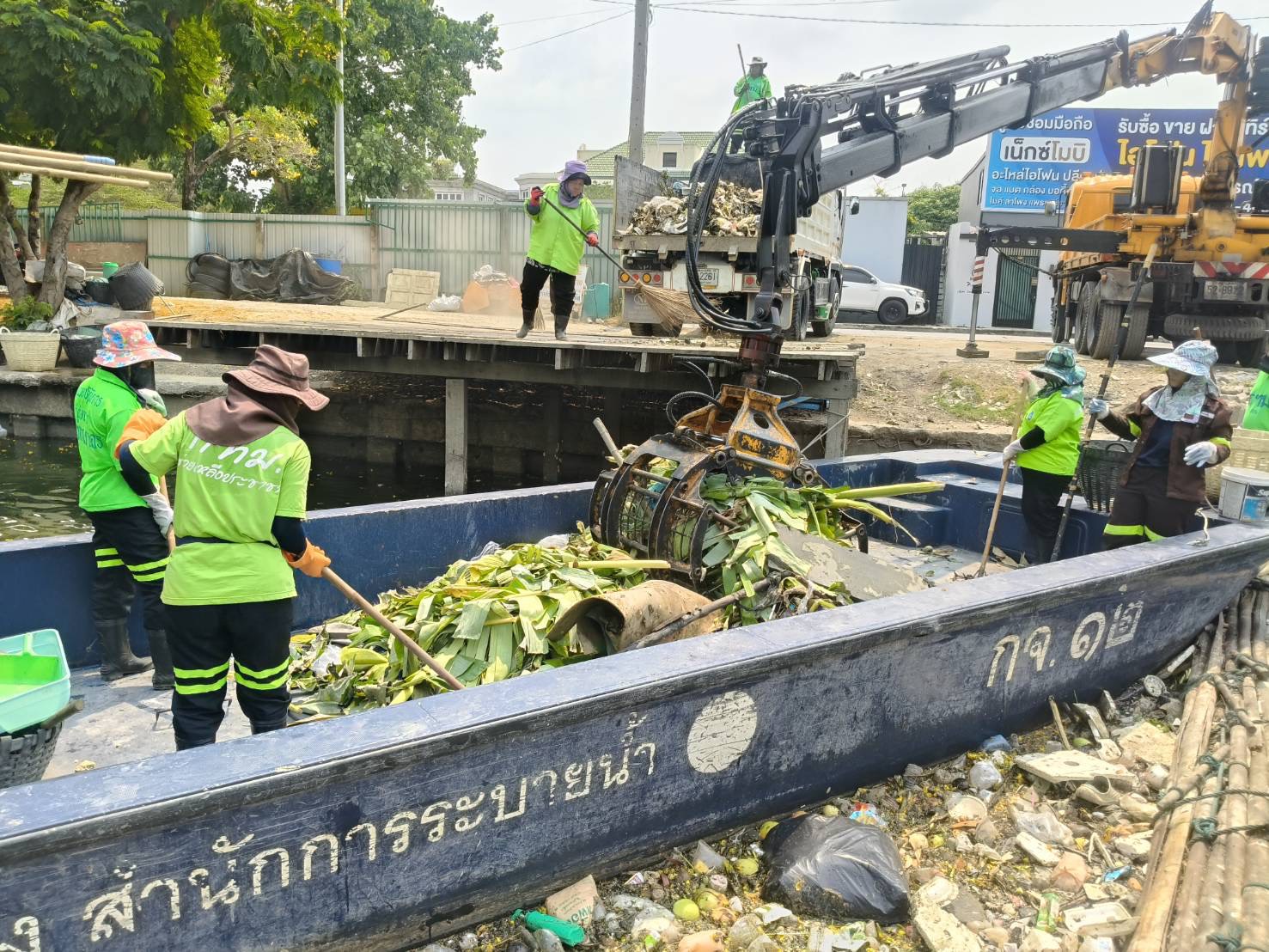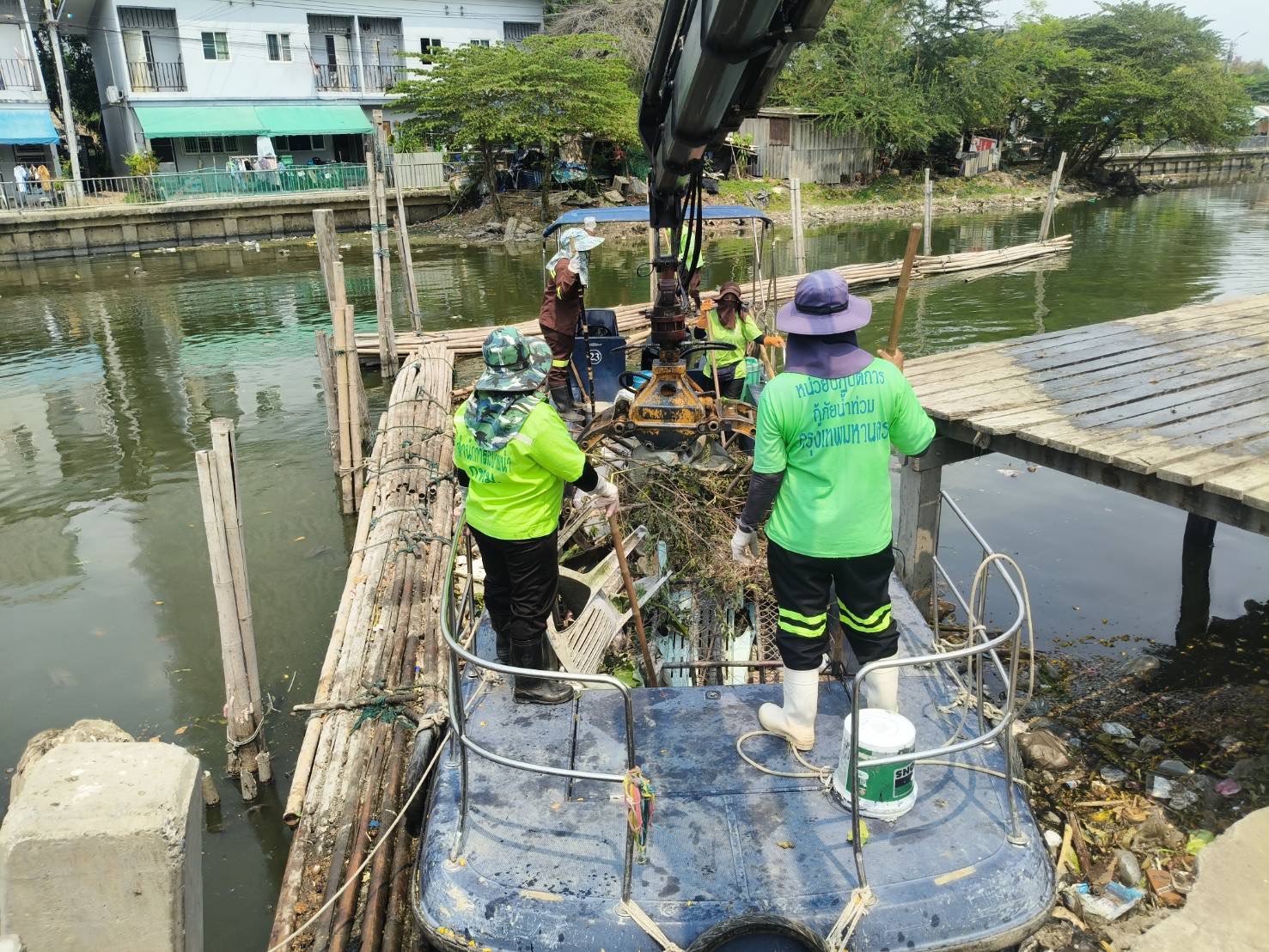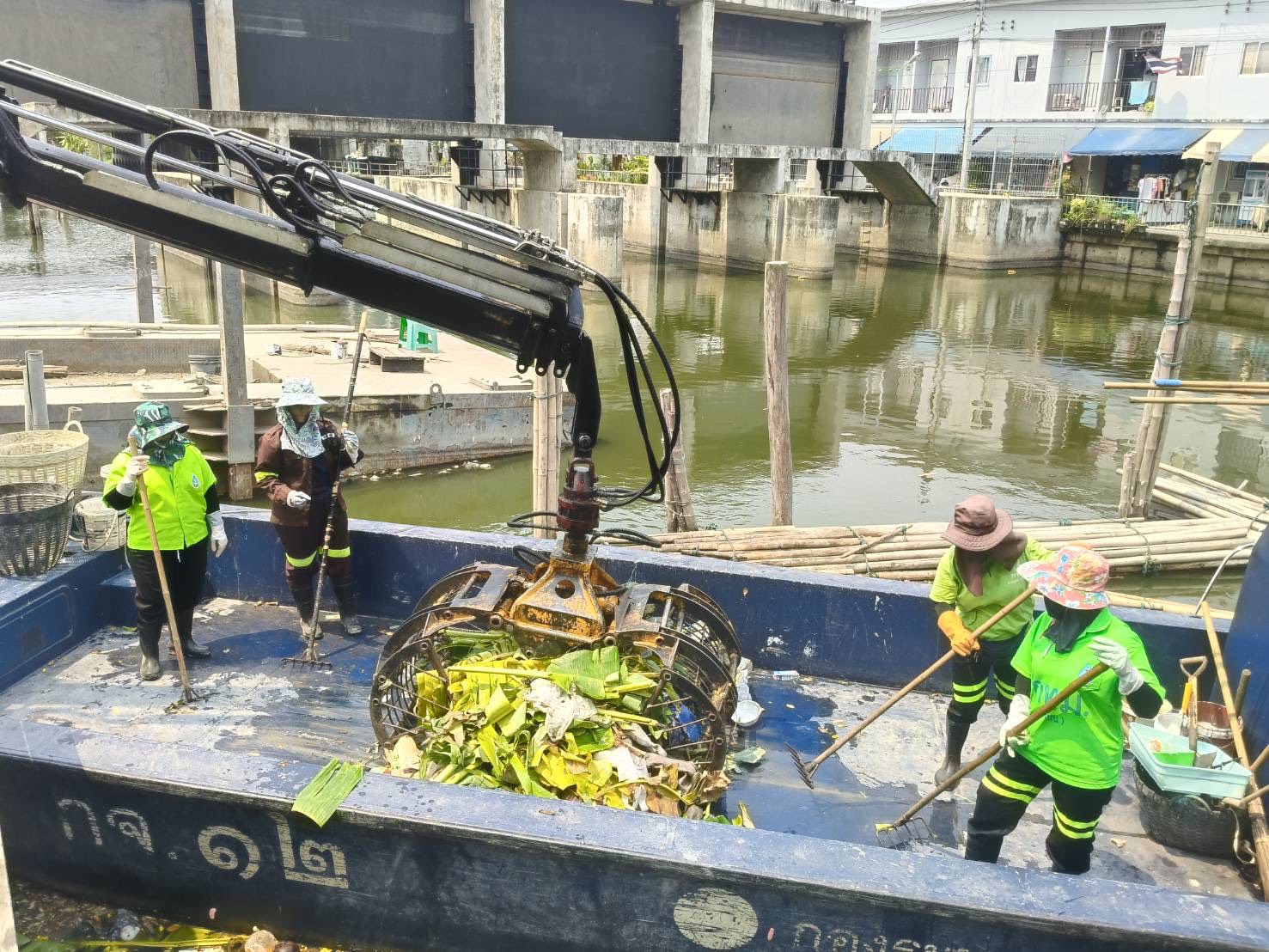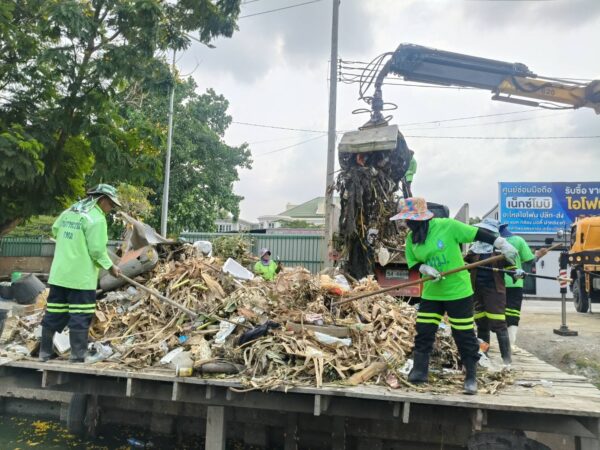 เจ้าหน้าที่ งับขยะและวัชพืช คลองลาดพร้าว พื้นที่เขตลาดพร้าว