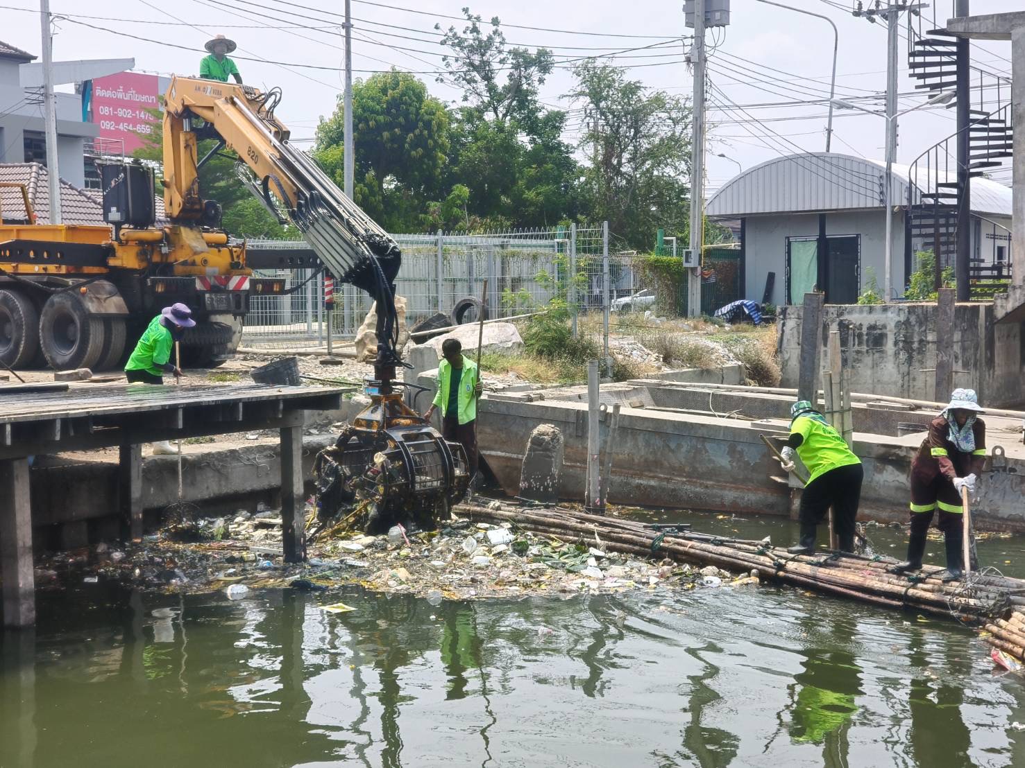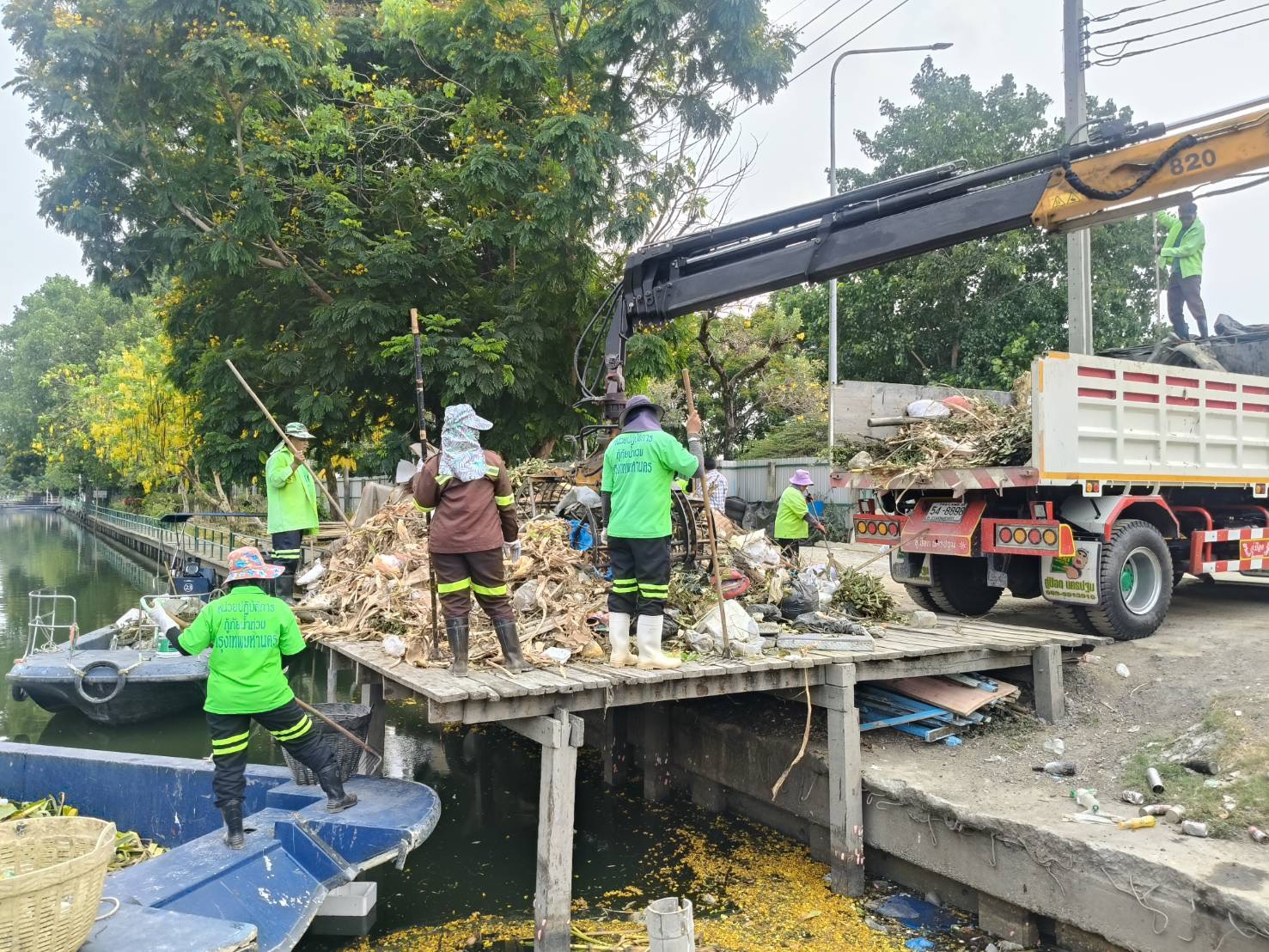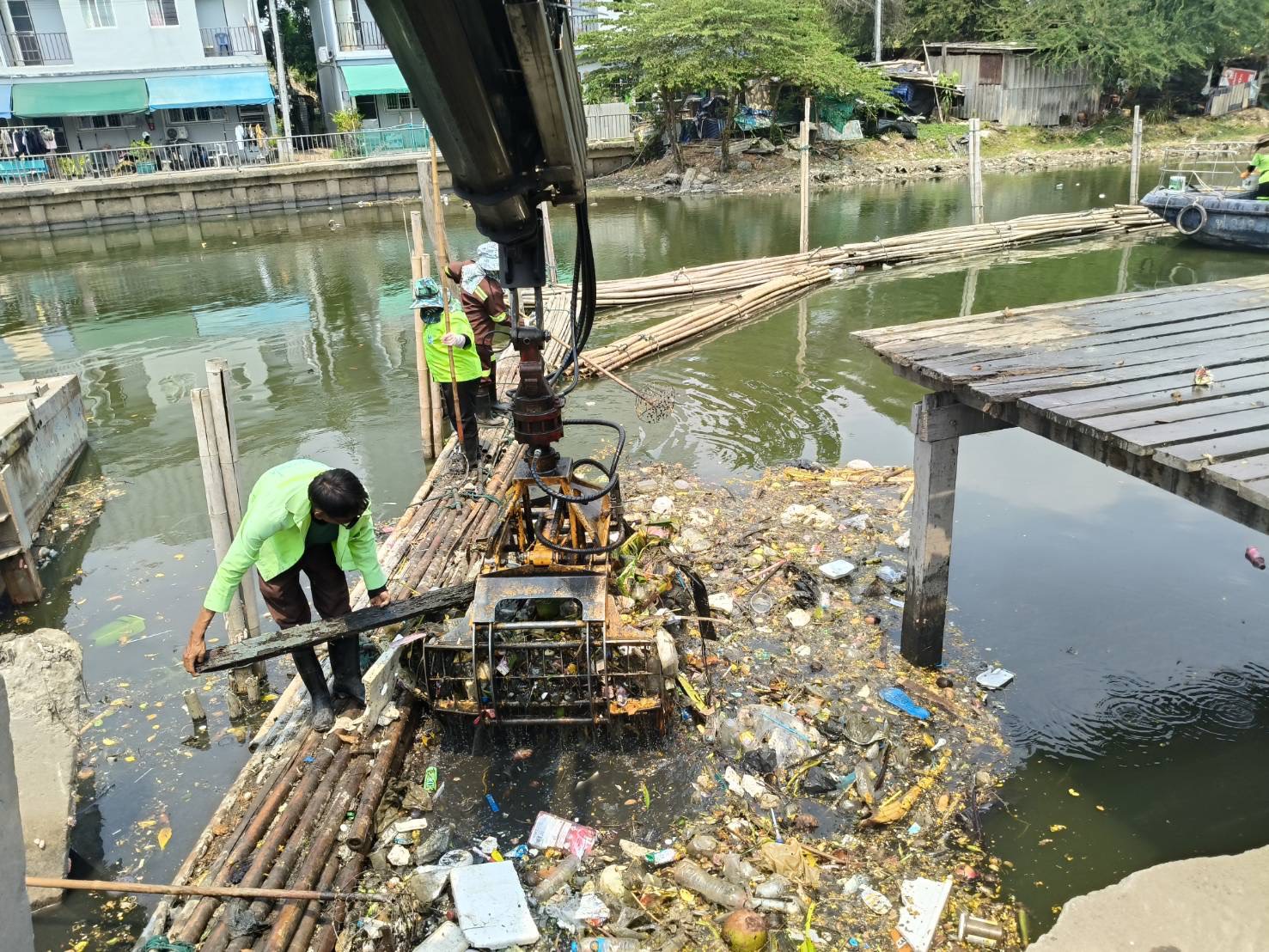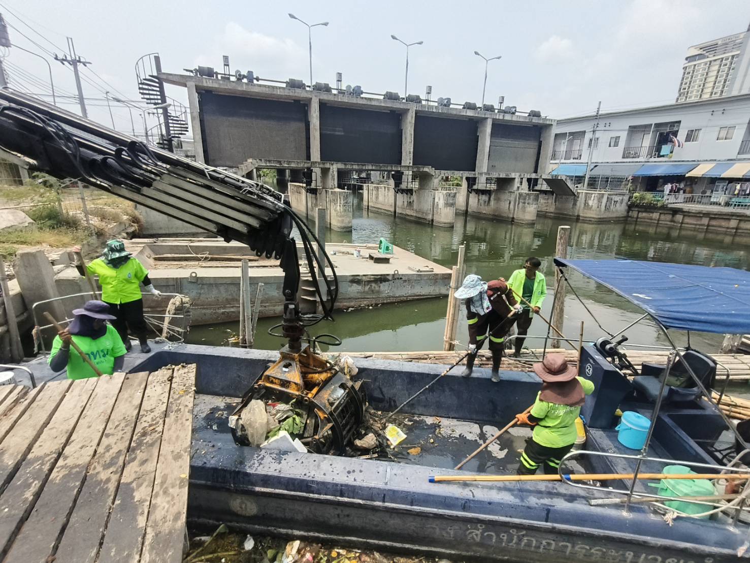 เจ้าหน้าที่ งับขยะและวัชพืช คลองลาดพร้าว พื้นที่เขตลาดพร้าว
