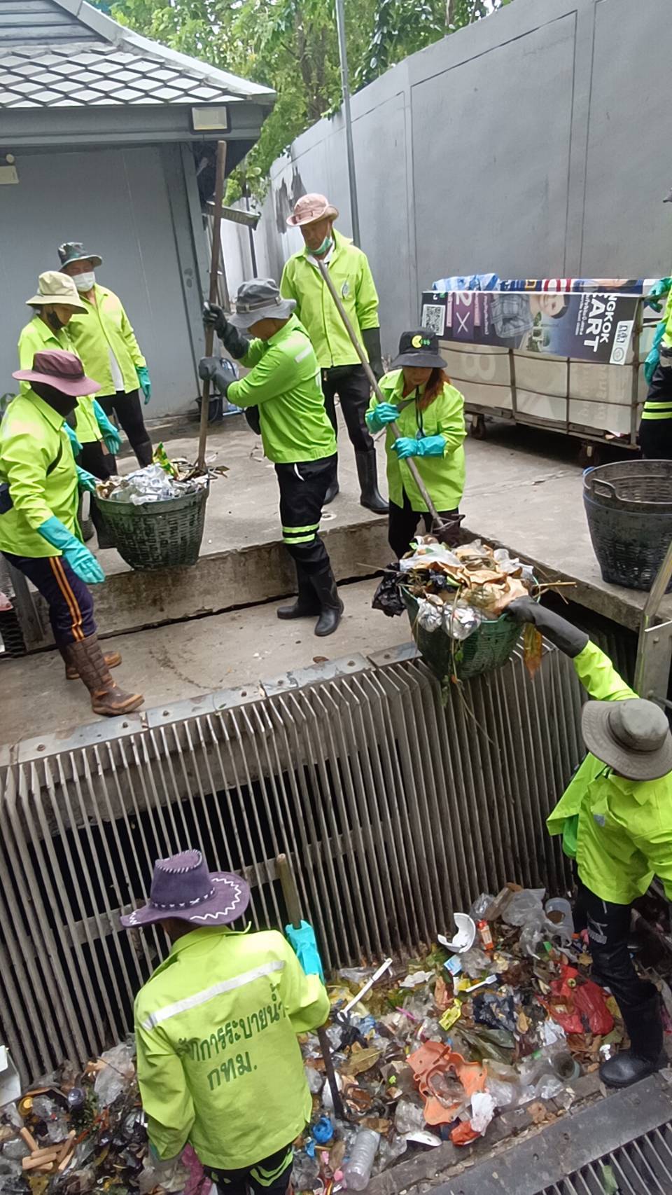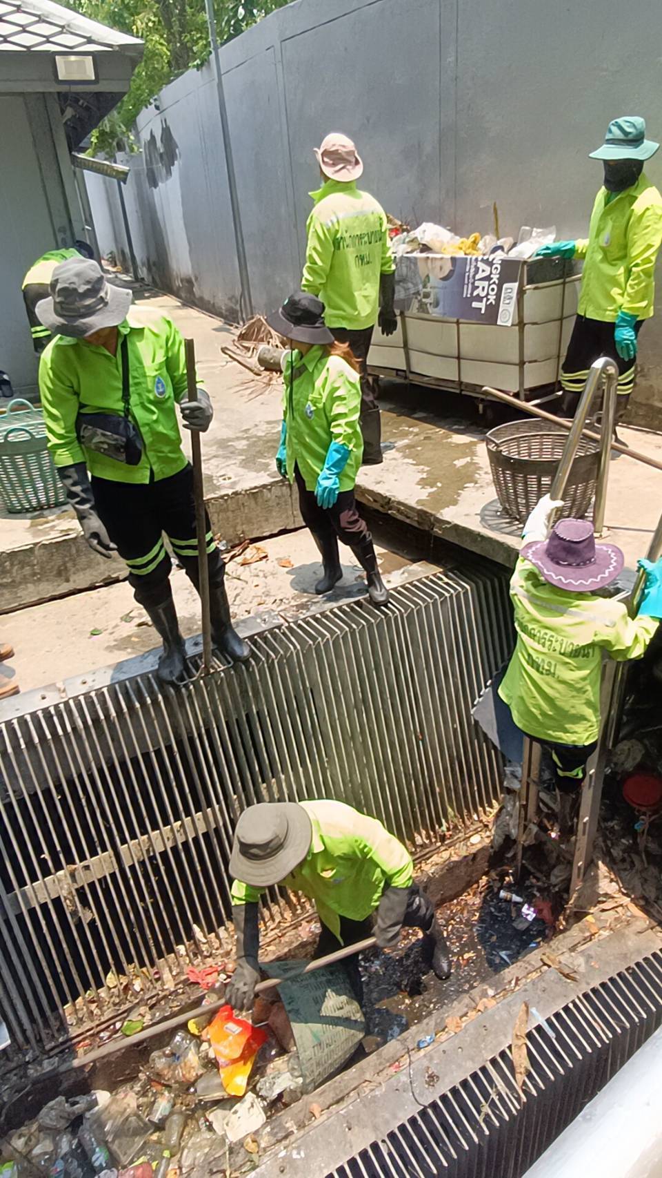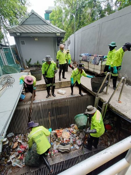 เจ้าหน้าที่ จัดเก็บขยะวัชพืชคลองกรวย ช่วงสถานีสูบน้ำ พื้นที่เขตสาทร