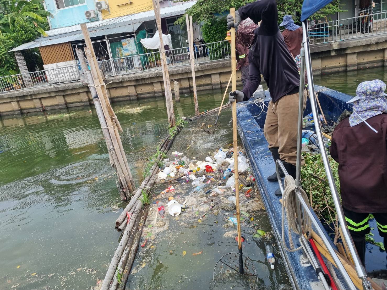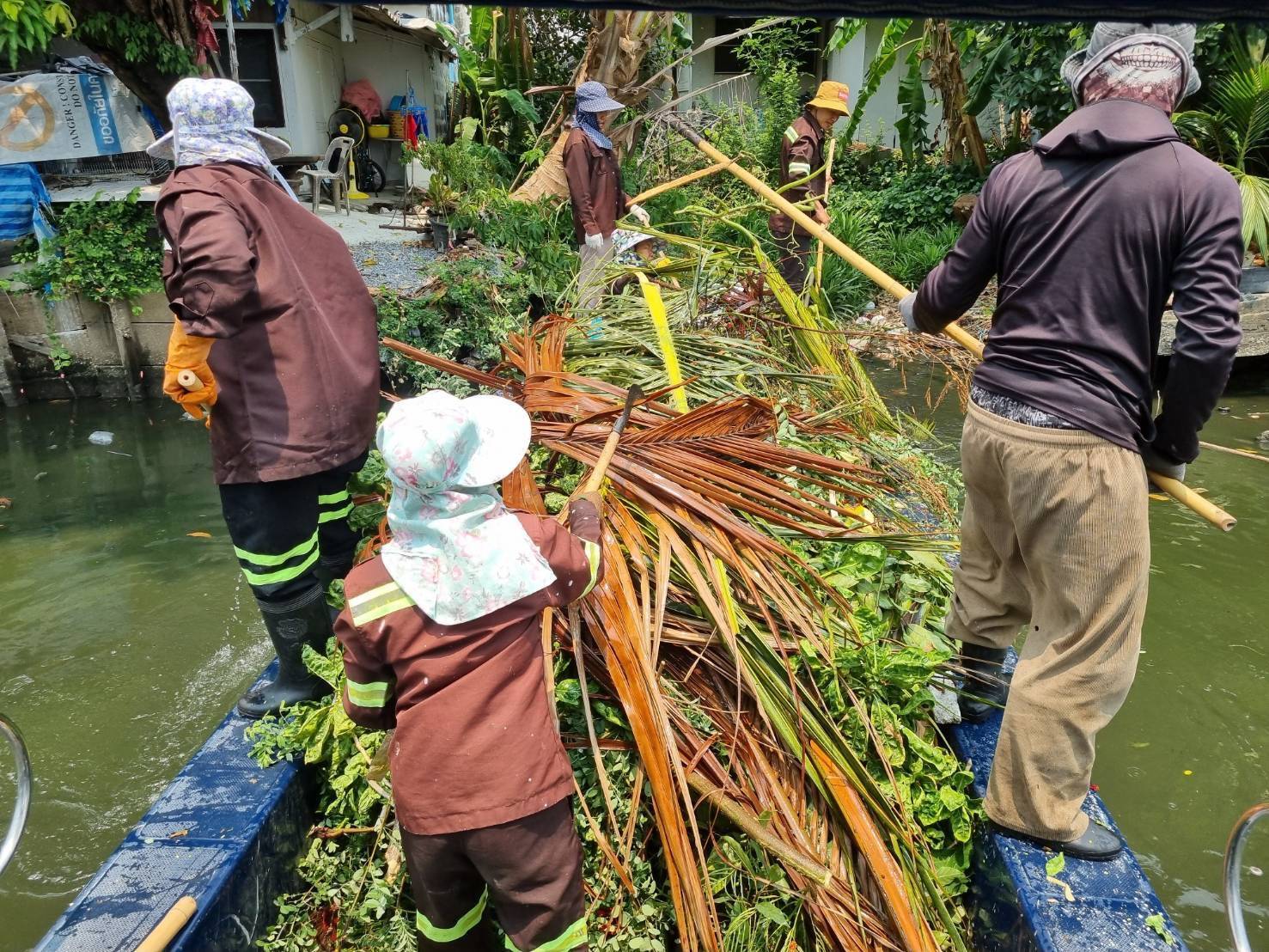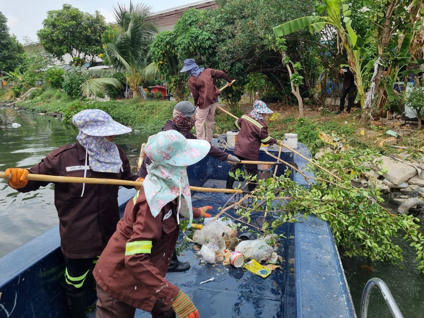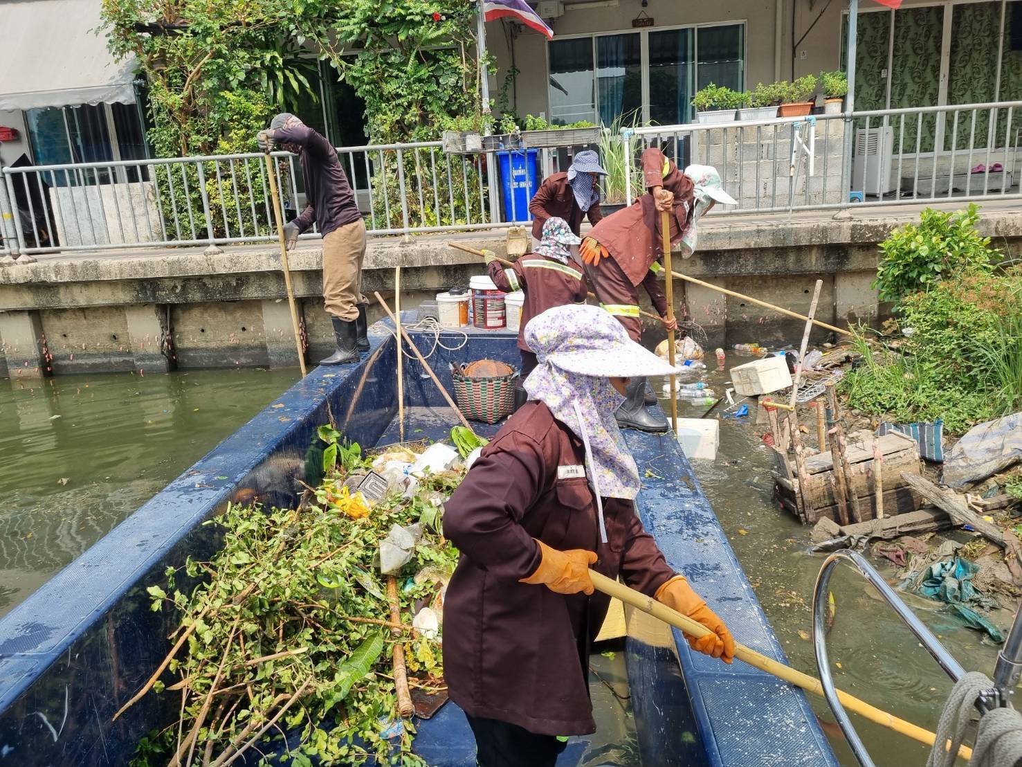 เจ้าหน้าที่ เก็บขยะและวัชพืชคลองลาดพร้าว พื้นที่เขตจตุจักร เขตลาดพร้าว
